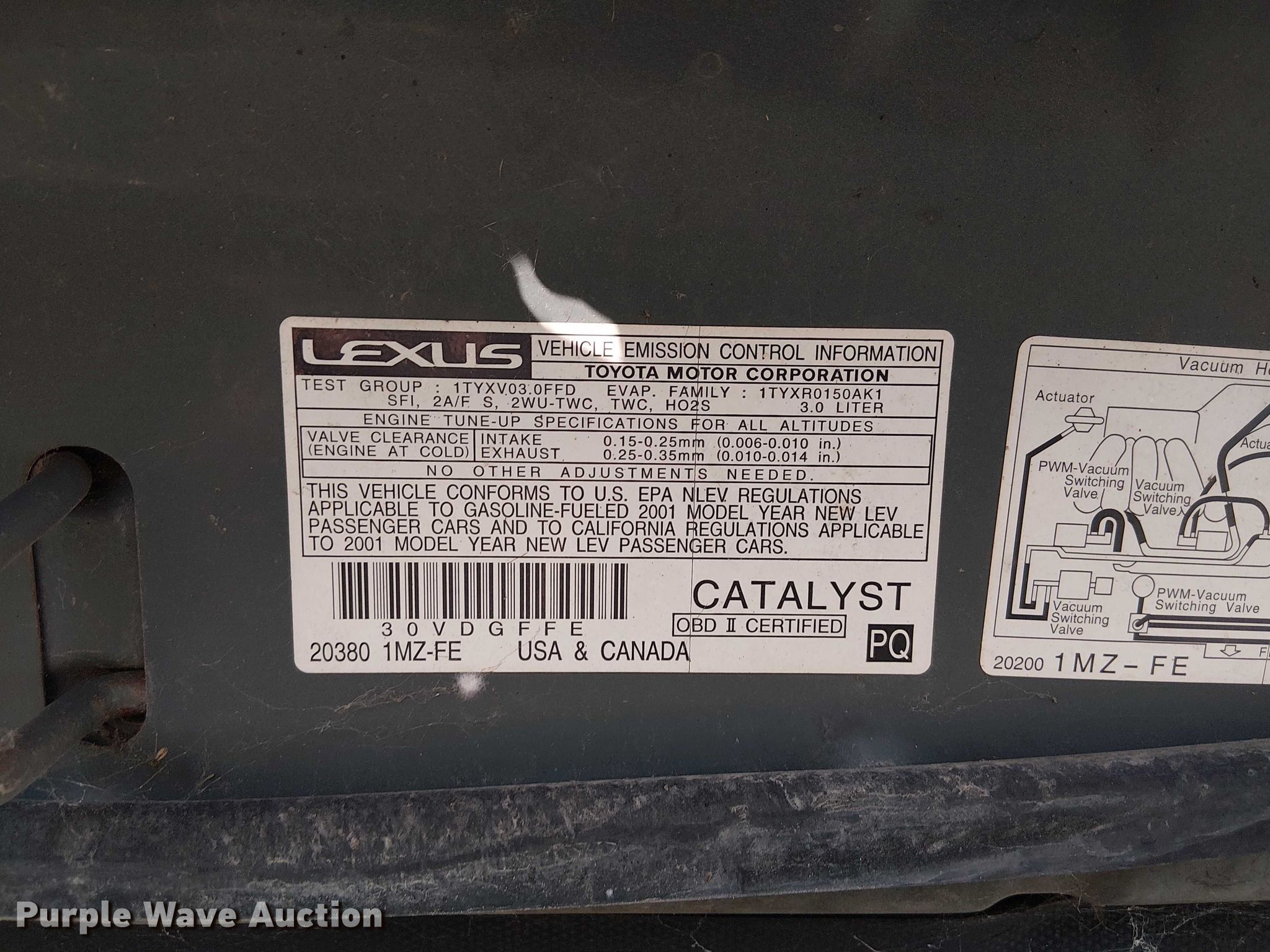 Purple Wave is selling a used Passenger Vehicle in Missouri. This item is a 2001 Lexus RX300 SUV with the following: Miles: 158,469 on odometer, VIN: JTJHF10U510206388