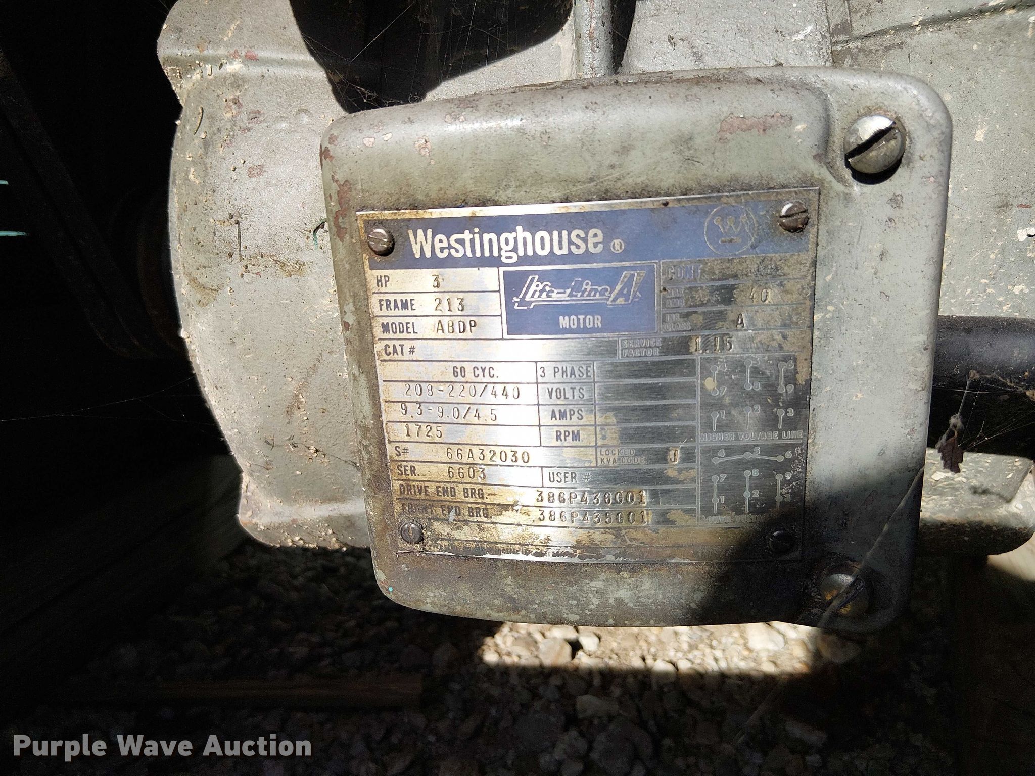 South Bend CL155E lathe. Electric Motor. Westinghouse Life-Line A Serial: 66A32030, HP: 3, Volts: 208-220/440, Phase: Three. Features Bed length: 8', Chuck: Six jaw. Tonganoxie, KS 66086