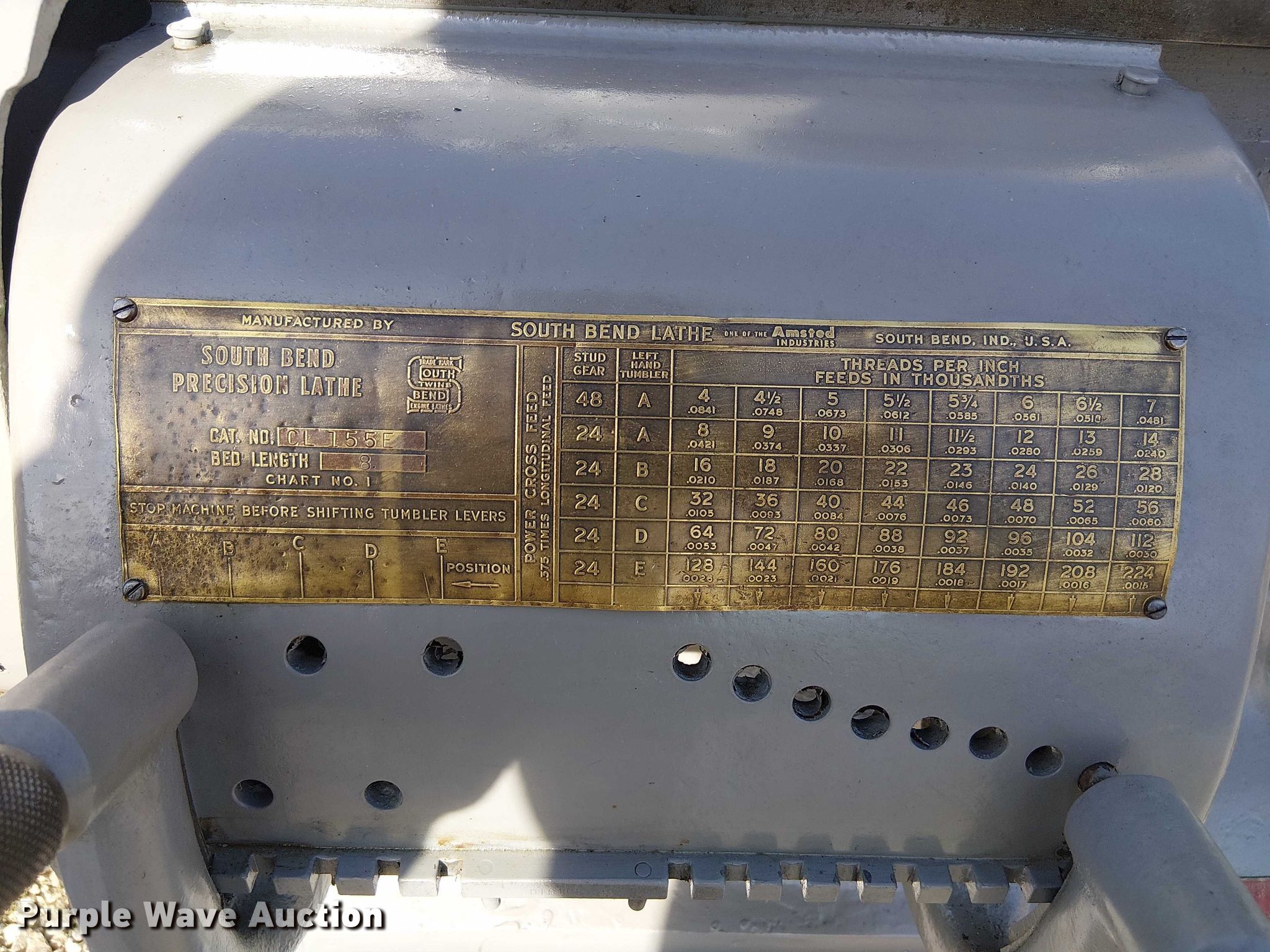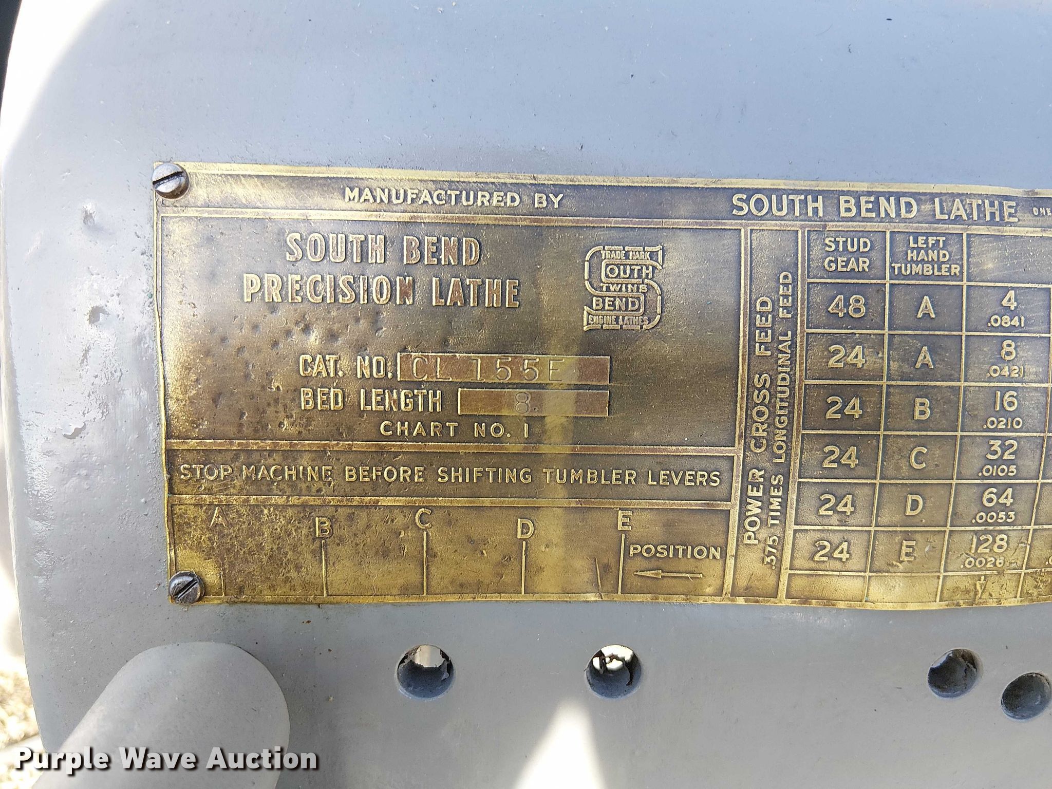 Purple Wave is selling a used Lathes, Manual in Kansas. This item is a South Bend CL155E lathe with the following: Westinghouse Life-Line A, Serial: 66A32030, HP: 3, Volts: 208-220/440, Phase: Three
