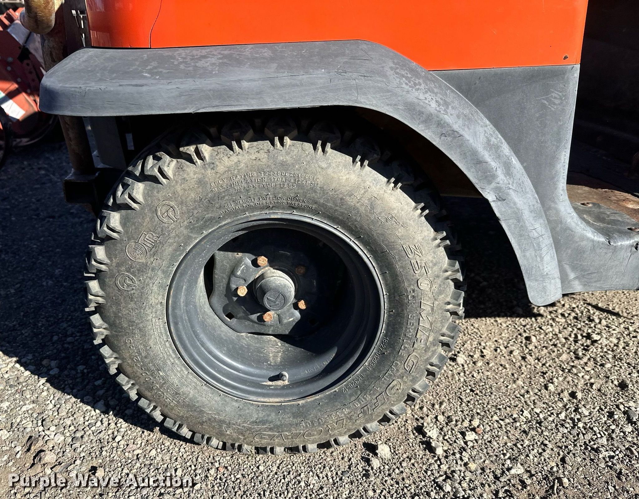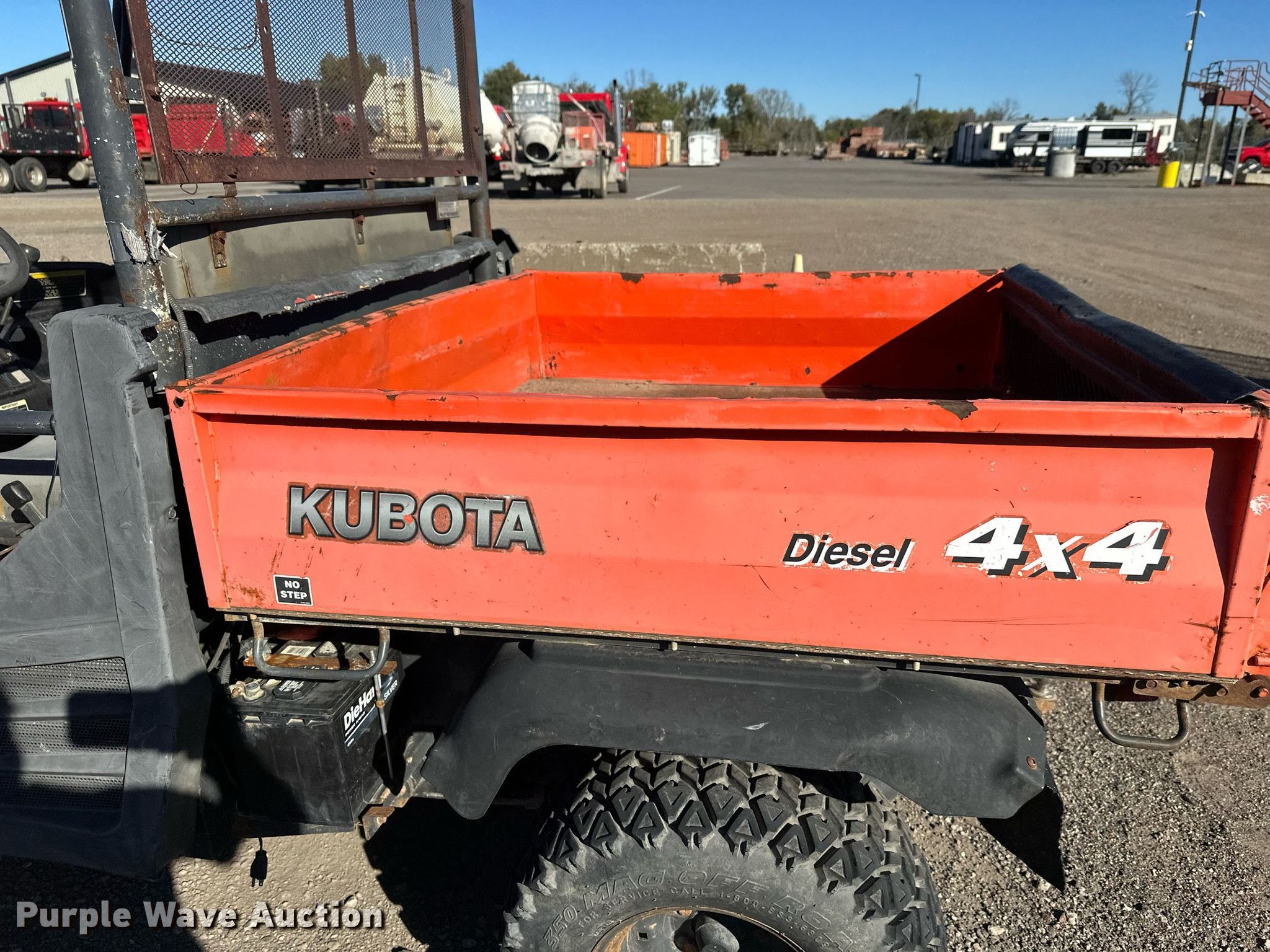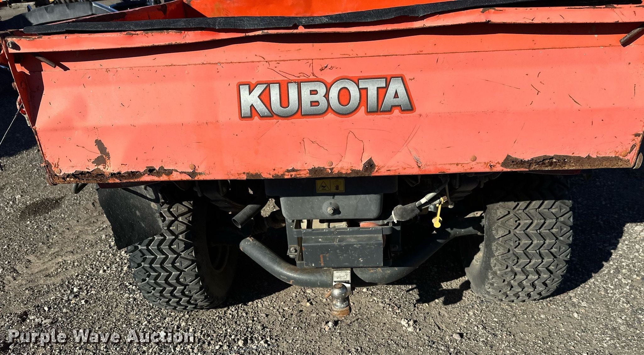 2001 Kubota RTV900 utility vehicle. Hours: 2,625 on meter, VIN: KRTV900A41026716, Serial: 26716. Engine Kubota D902, Cylinders: 3, Fuel type: Diesel. Transmission Hydrostatic, Speed: 2. Chassis Four wheel drive/ All wheel drive. Features Grille guard, Dump bed 48" L x 54" W, Dump bed type: Electric/ Hydraulic. Tires Size: 25x10.00-12. Notes Driveshaft removed , Non-operational unit. Park Construction Co. Blaine, MN 55449