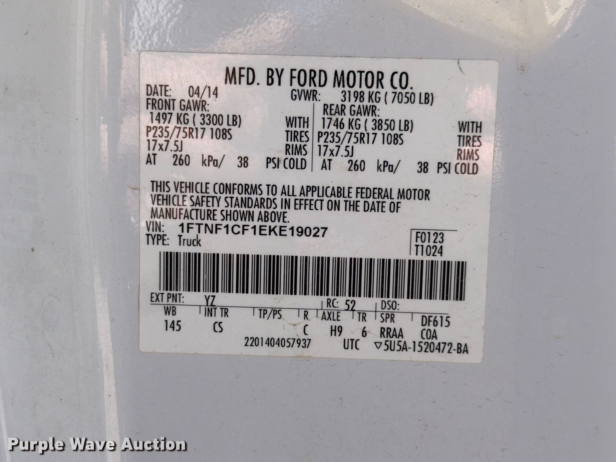 - VIN: 1FTNF1CF1EKE19027
