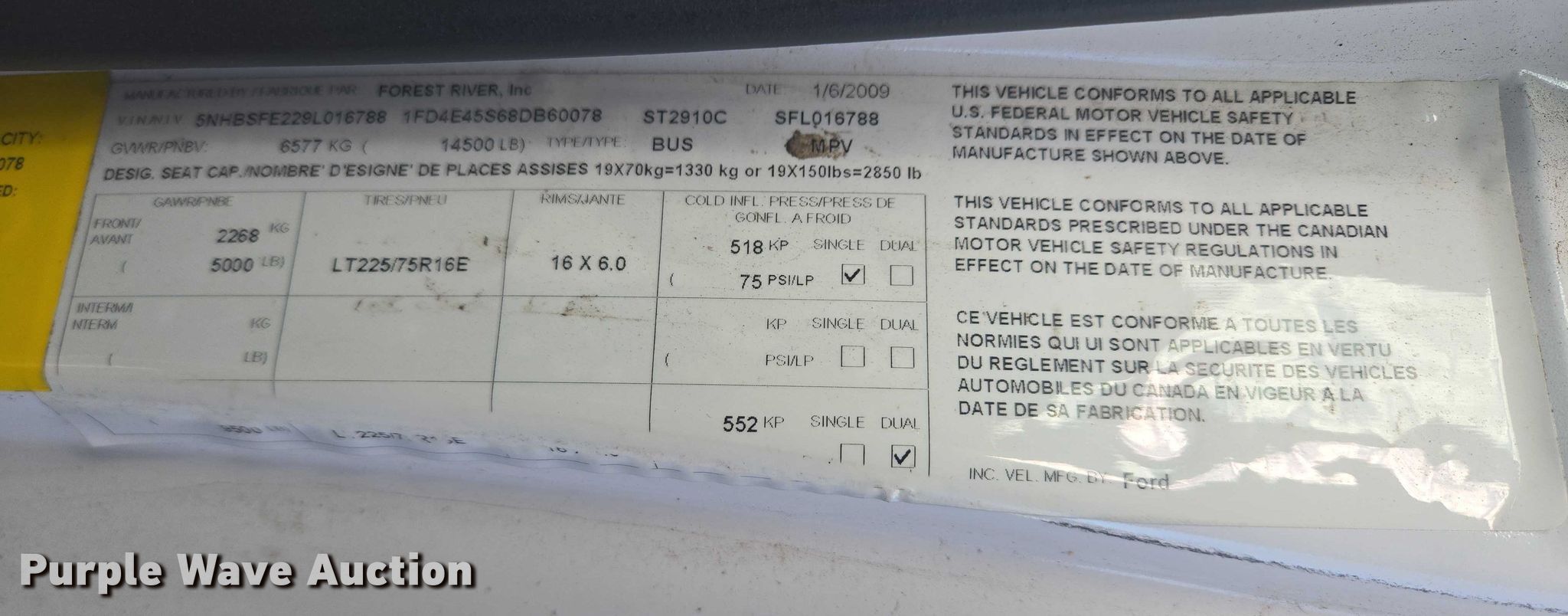 2008 Ford Starcraft shuttle bus. Miles: 241,804 on odometer, VIN: 1FD4E45S68DB60078. Engine Displacement: 6.8L, Cylinders: 10, Fuel type: Gas. Transmission Automatic. Chassis Axles: Single, Suspension: Spring, Brakes: Hydraulic. Interior AC, Heat, Cruise control, Backup camera, On-board restroom, Passengers: 14. Tires Size: 225/75R16. Notes Unknown operating condition of wheelchair lift, Non-operational backup camera, Dash warning indicator: Check engine. South Dakota title. Seller is a South Dakota licensed motor vehicle dealer. The buyer may be required to pay sales tax and/or registration fees to the dealer prior to taking possession. Buyers may be required to provide identification to the licensed dealer to comply with state laws. Title will be assigned and distributed by the dealer. Please contact the seller for distribution questions. Pleasureland RV. Sioux Falls, SD 57107