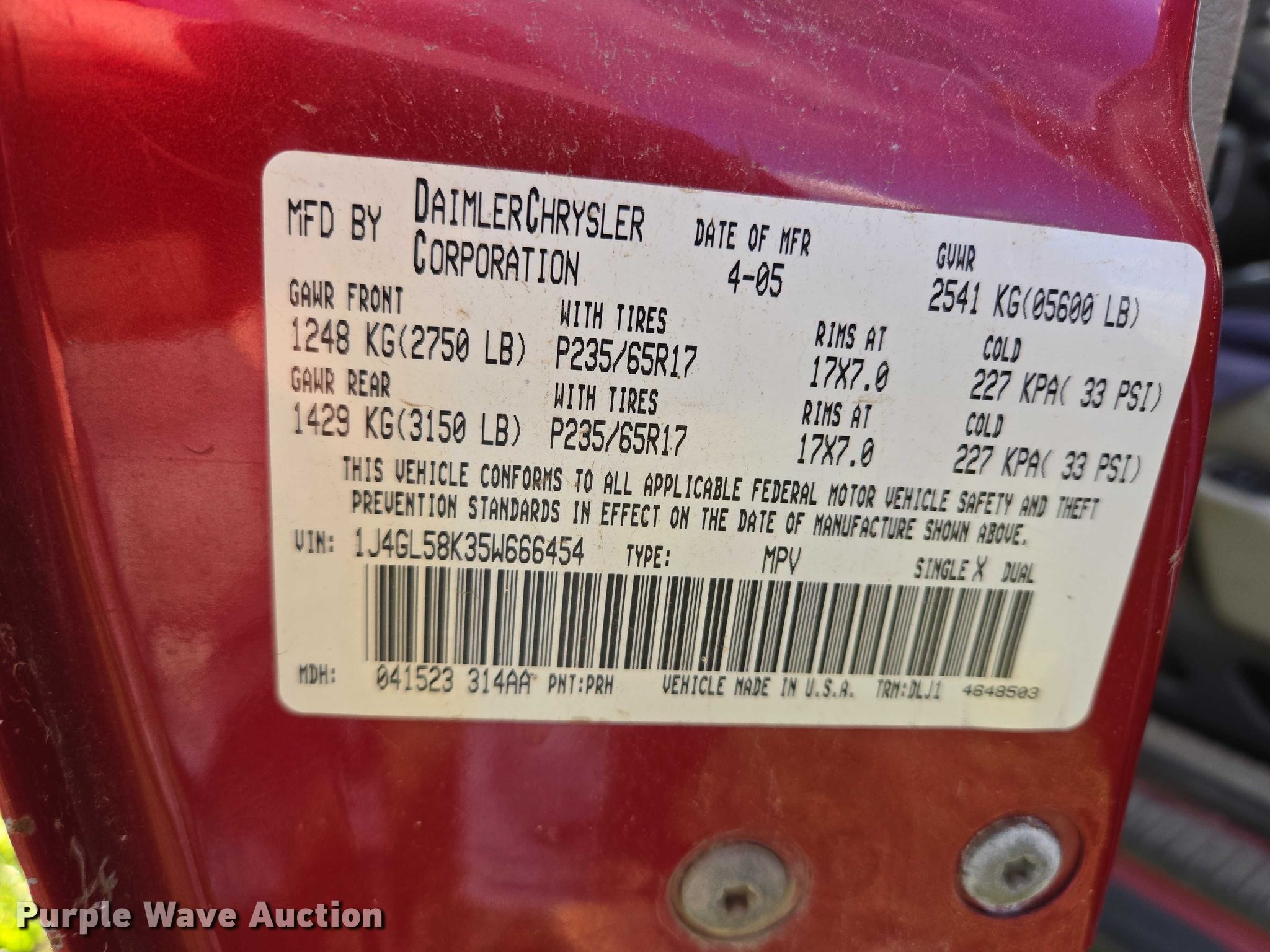- VIN: 1J4GL58K35W666454