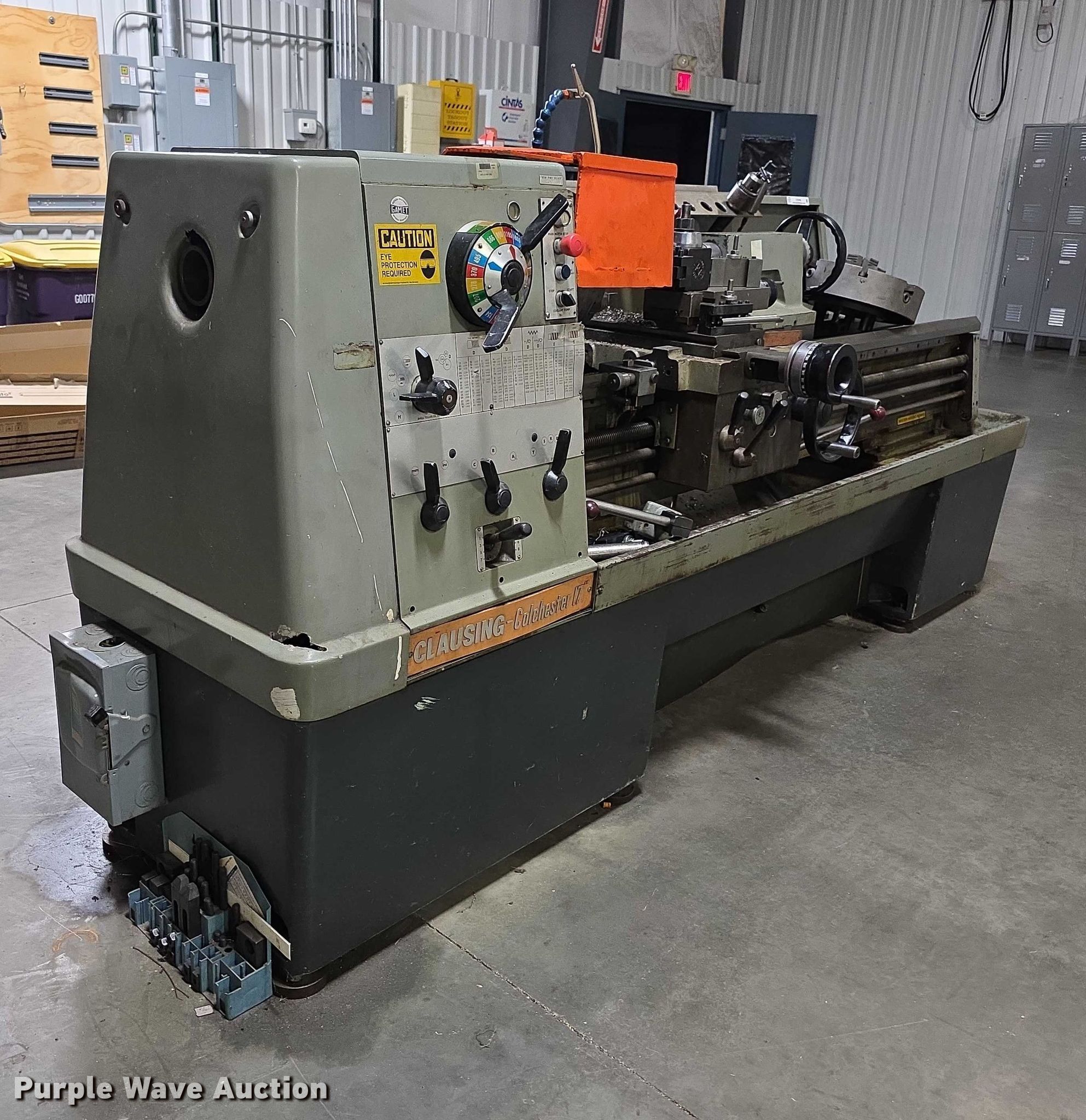 Purple Wave is selling a used Lathes, Manual in Kansas. This item is a Clausing Colchester metal lathe with the following: Volts: 230, Phase: Three, Amps: 40.4