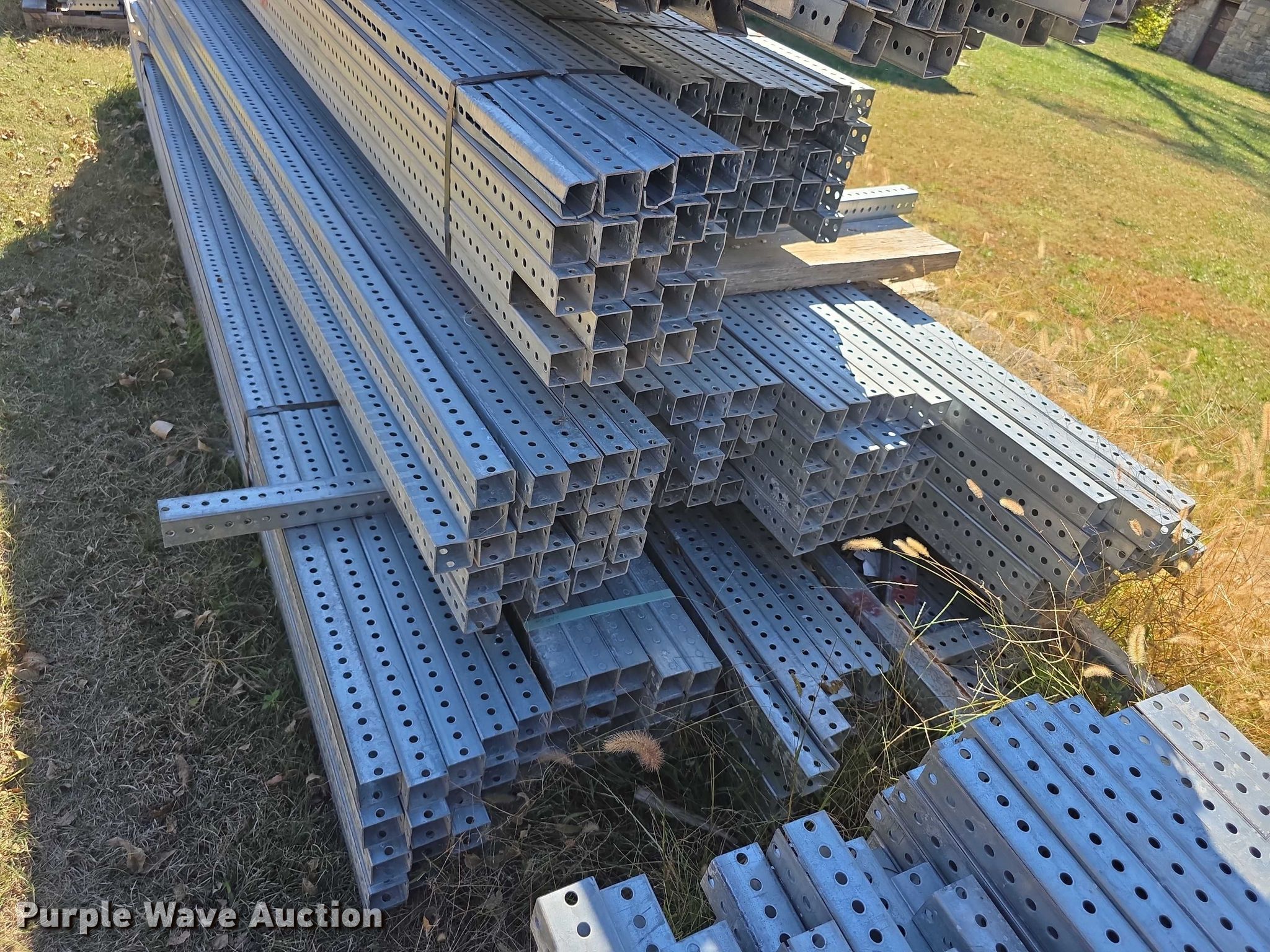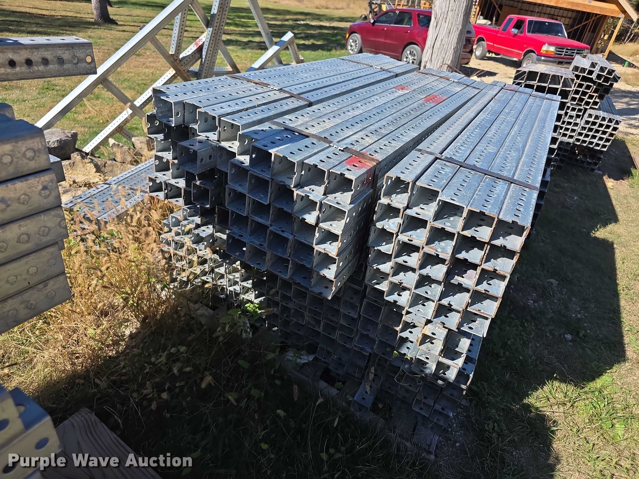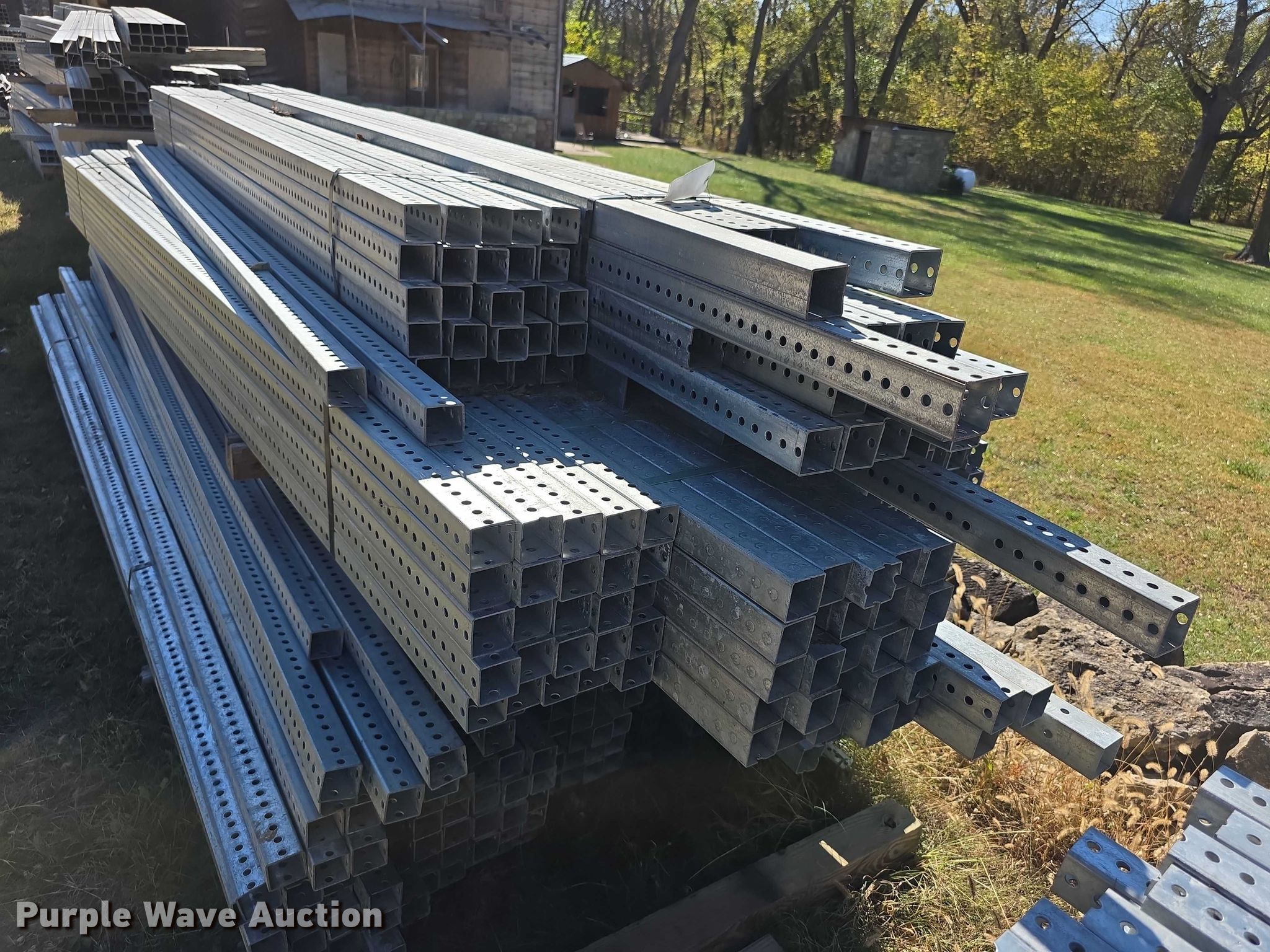 Purple Wave is selling a used Building Materials in Kansas. This item is a Approximately 2,125 pieces of perforated tubing with the following: (82) 2 1/4" x 2 1/4", Lengths: 9' to 12', (2,043) 2" x 2", Lengths: 3' to 12', Total weight: Approx. 37,000 lbs