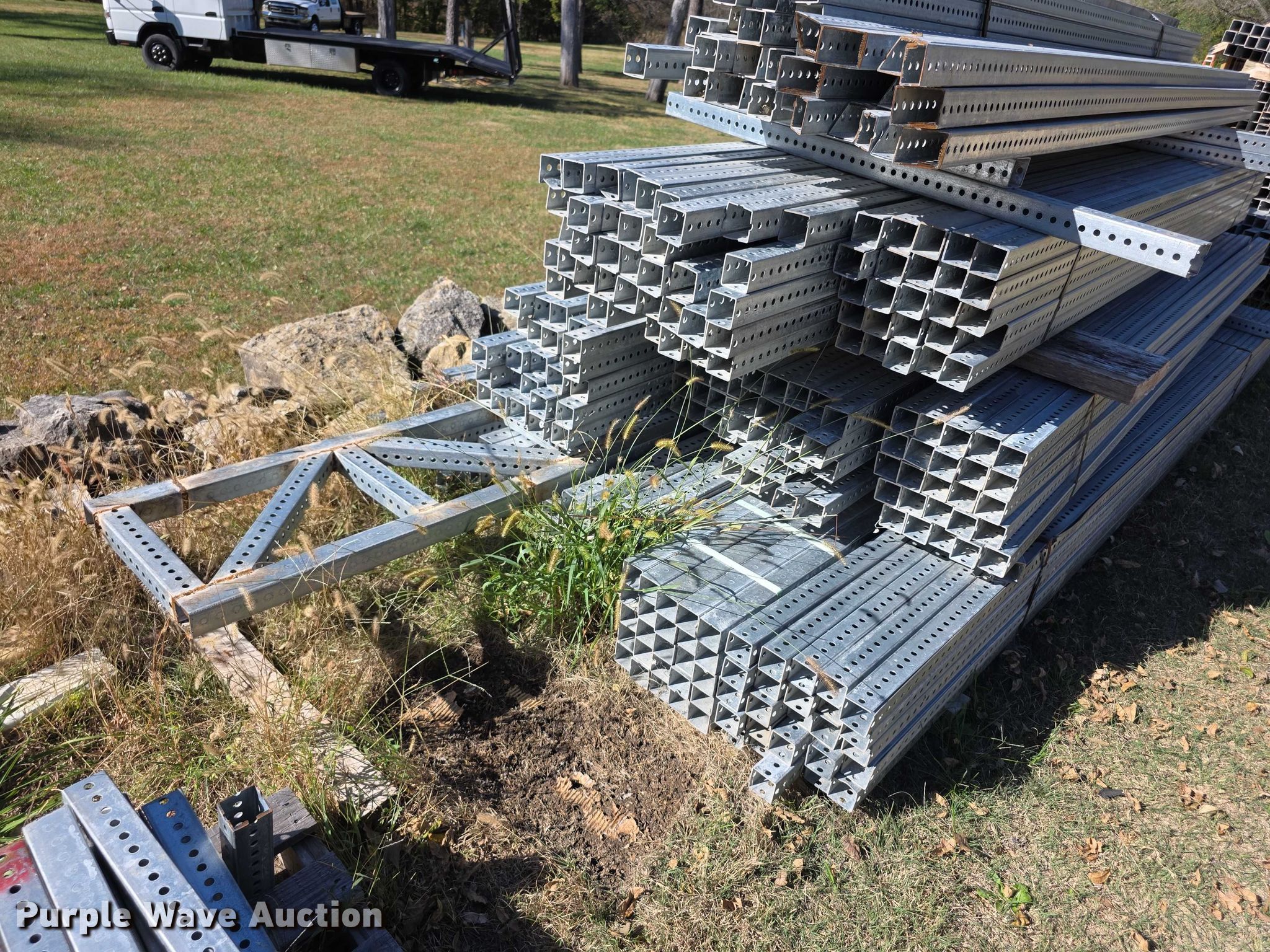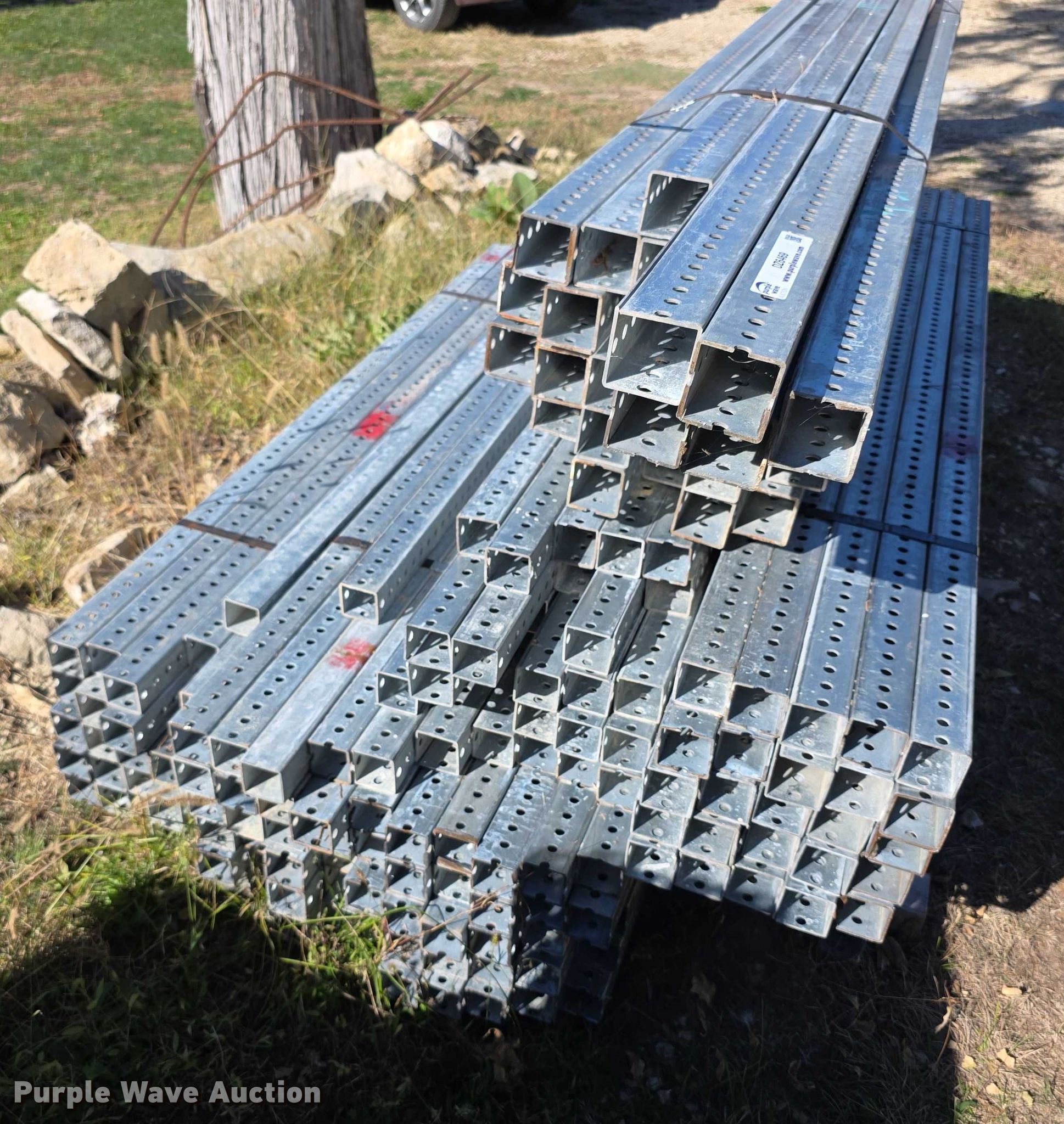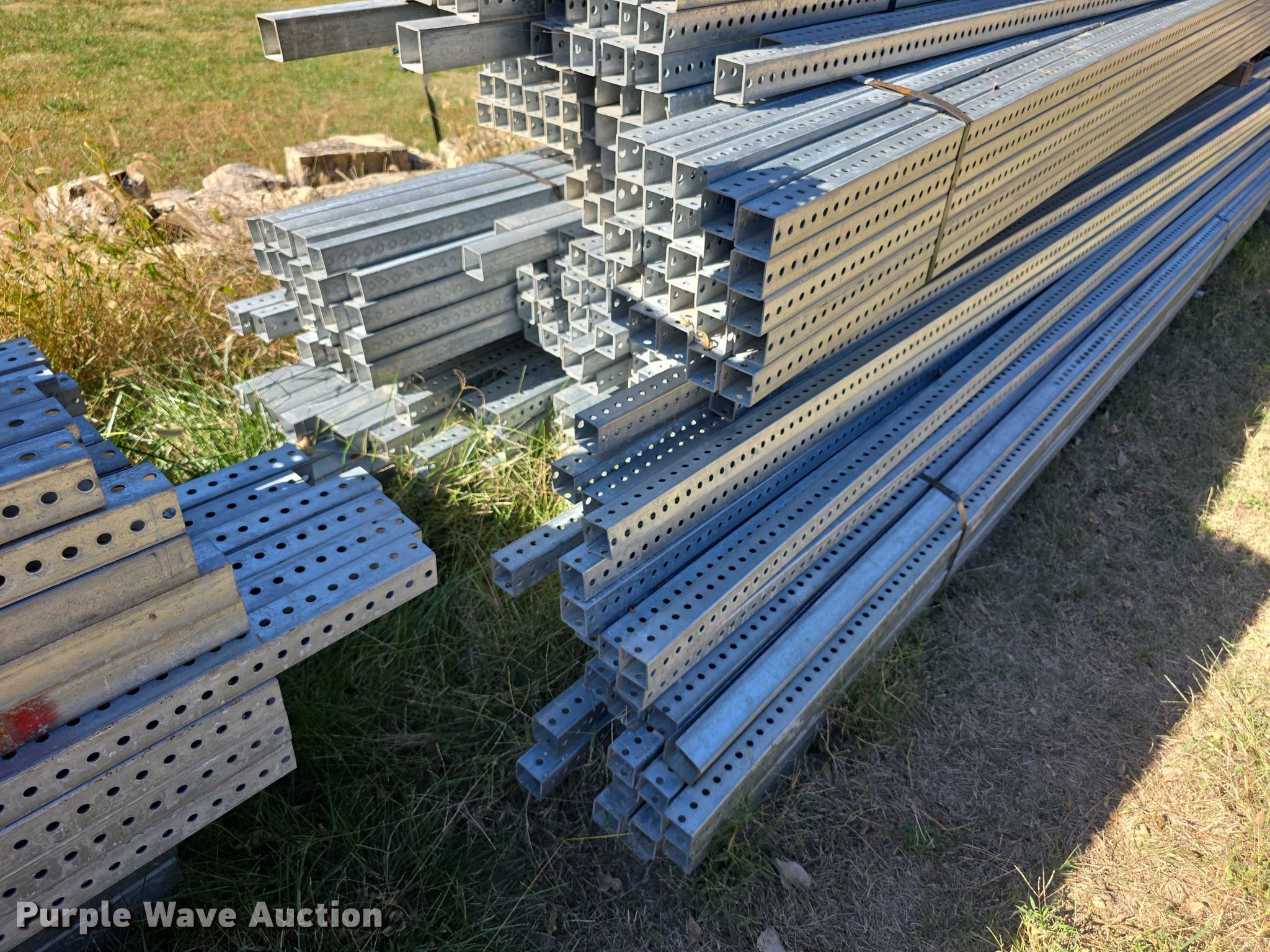 Purple Wave is selling a used Building Materials in Kansas. This item is a Approximately 2,125 pieces of perforated tubing with the following: (82) 2 1/4" x 2 1/4", Lengths: 9' to 12', (2,043) 2" x 2", Lengths: 3' to 12', Total weight: Approx. 37,000 lbs
