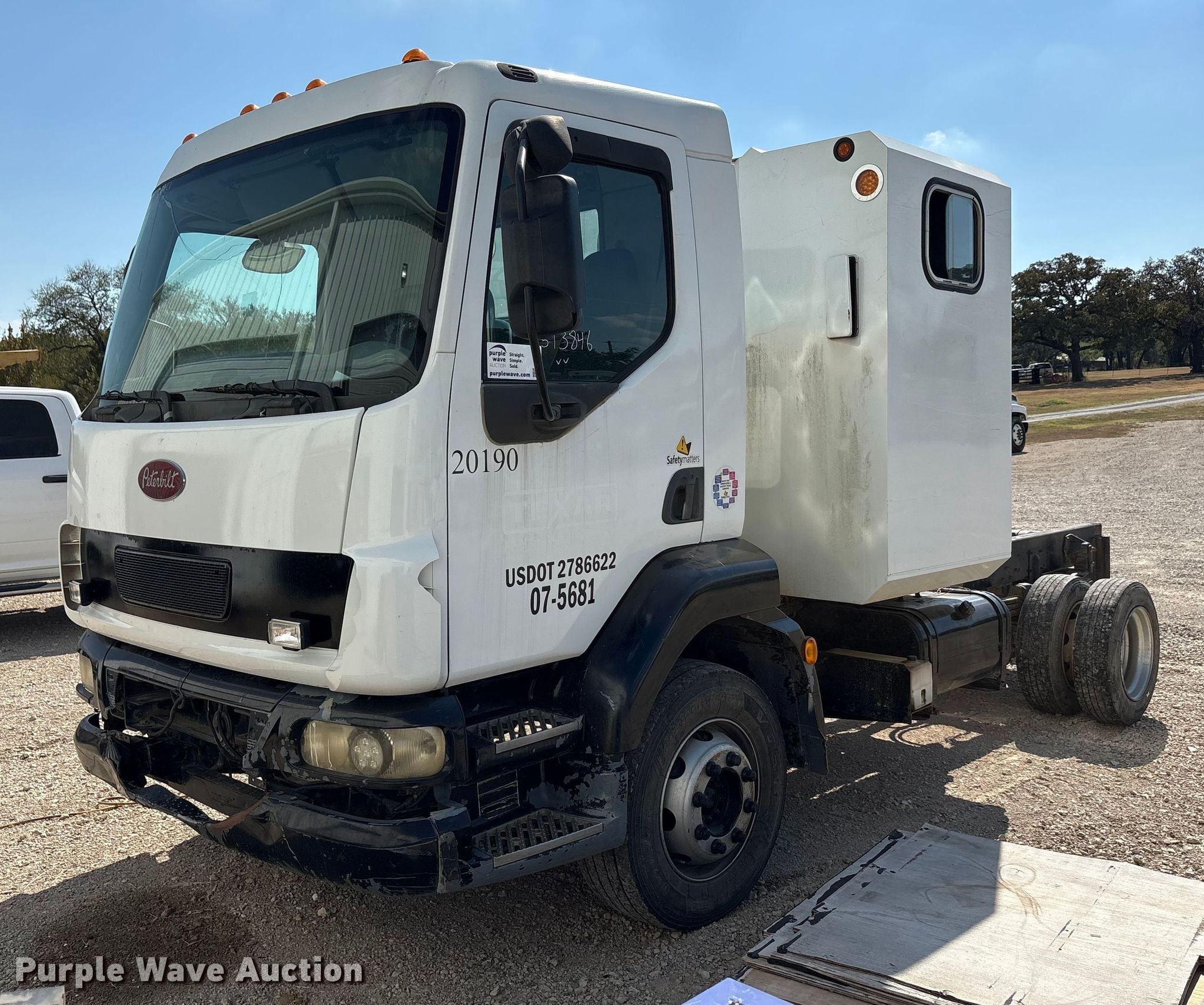 Purple Wave is selling a used Truck Chassis in Texas. This item is a 2007 Peterbuilt 200 truck cab and chassis with the following: Kilometers: 201,190 on odometer, VIN: SBVPHY6XX7L325681