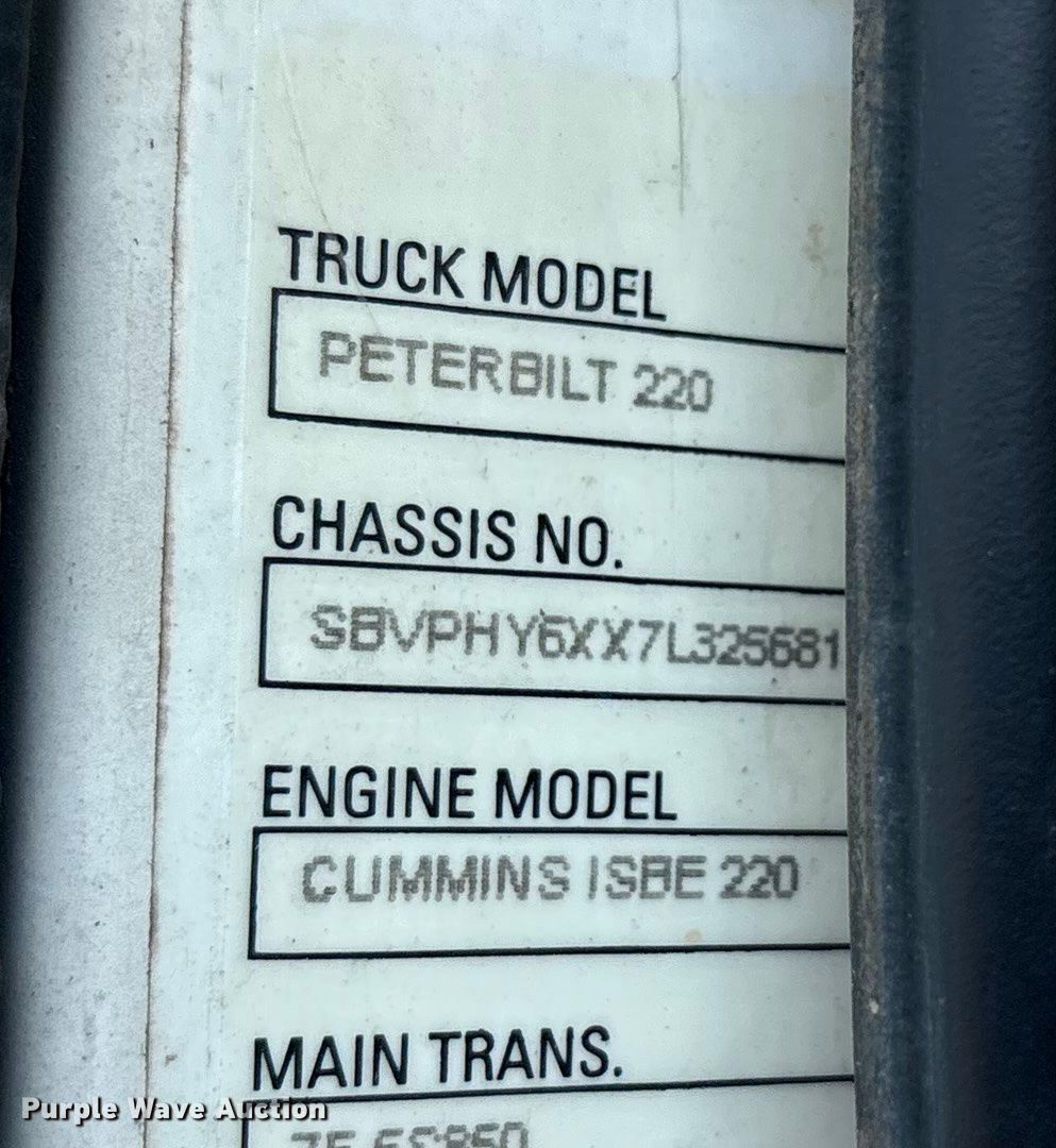 Take a look at this used 2007 Peterbuilt 200 truck cab and chassis being sold on November 19th, 2025 in the Wednesday November 19 Vehicles and Equipment Auction made by Peterbuilt. Take a look at all of the item information below or take a look at similar auctions for Trucks.