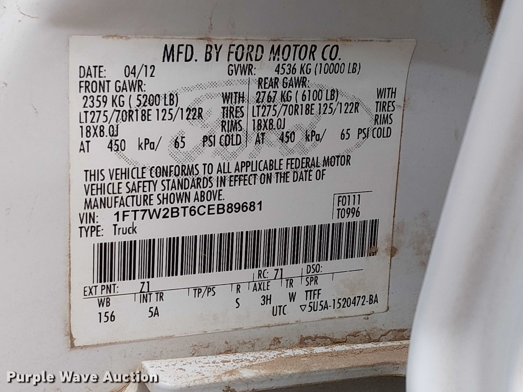 Purple Wave is selling a used 3/4 or 1 Ton Pickup or Van in Arizona. This item is a 2012 Ford F250 Super Duty Crew Cab pickup truck with the following: Miles: 309,008 on odometer, Hours: 16,499 on meter, VIN: 1FT7W2BT6CEB89681