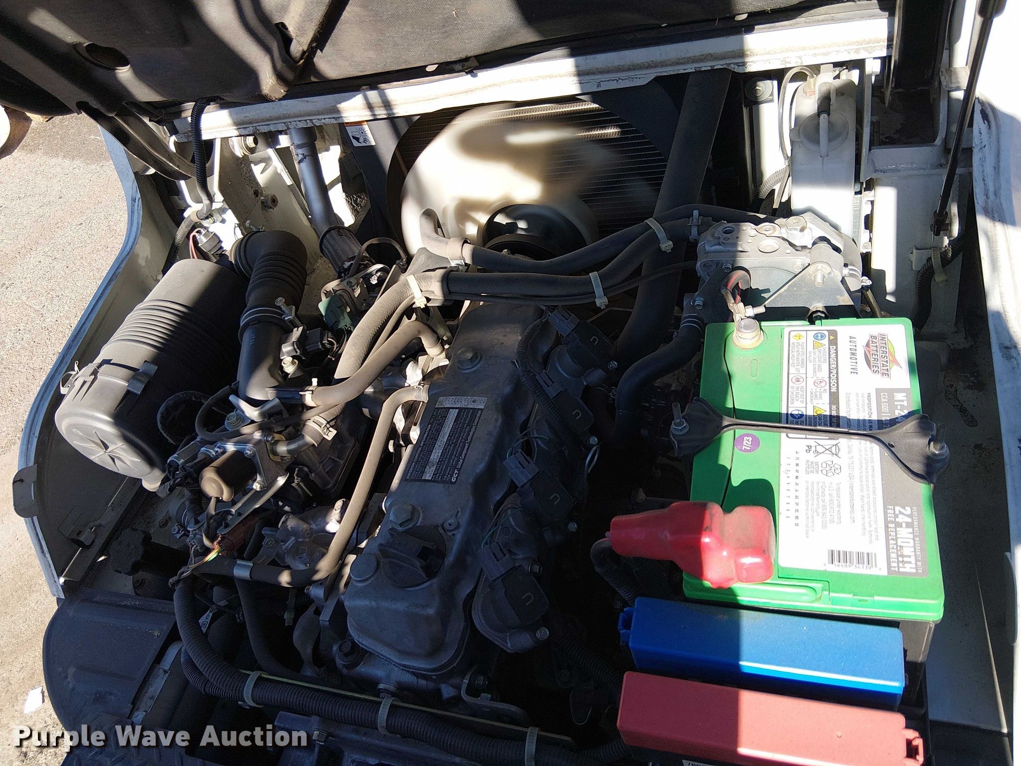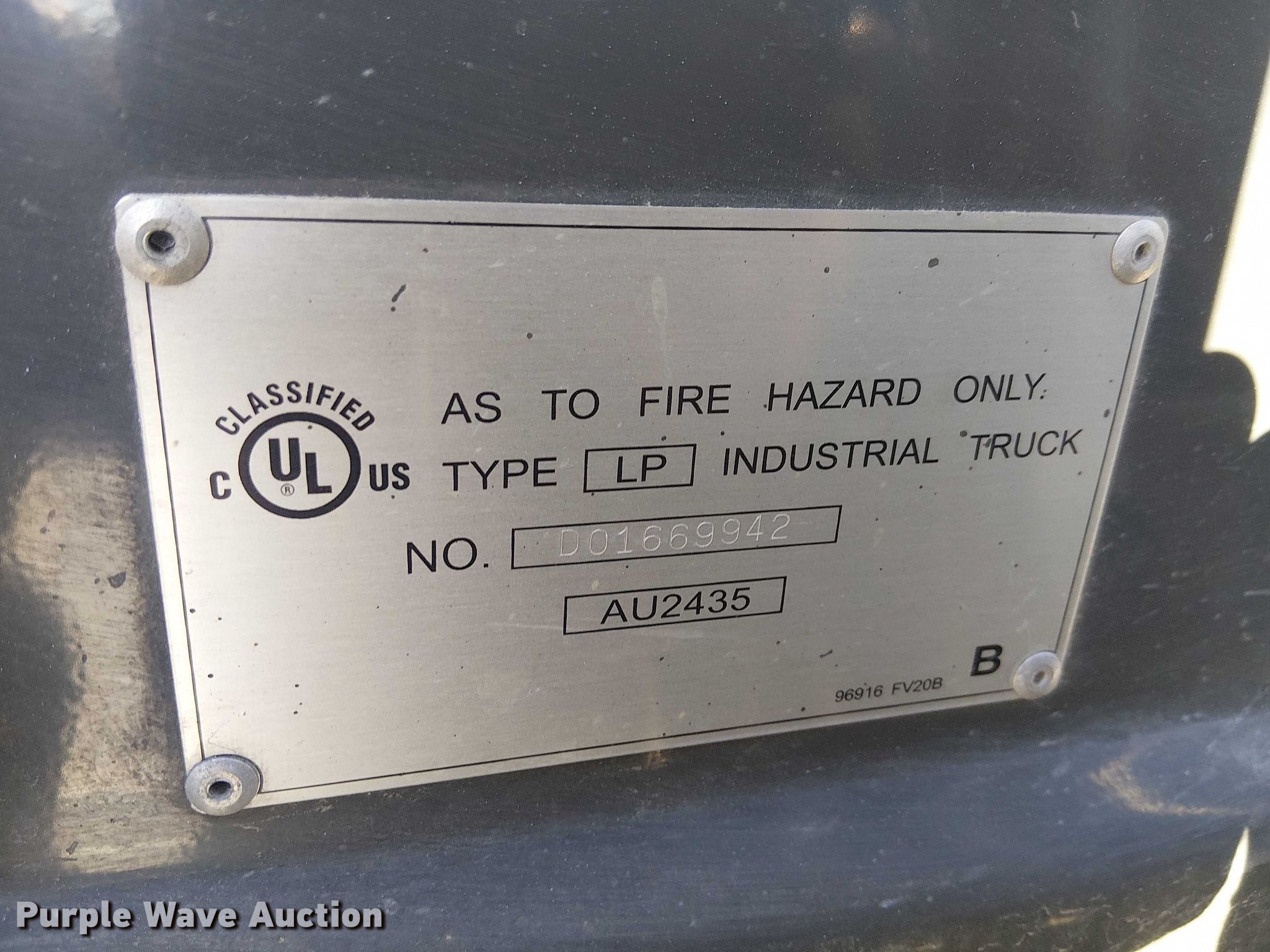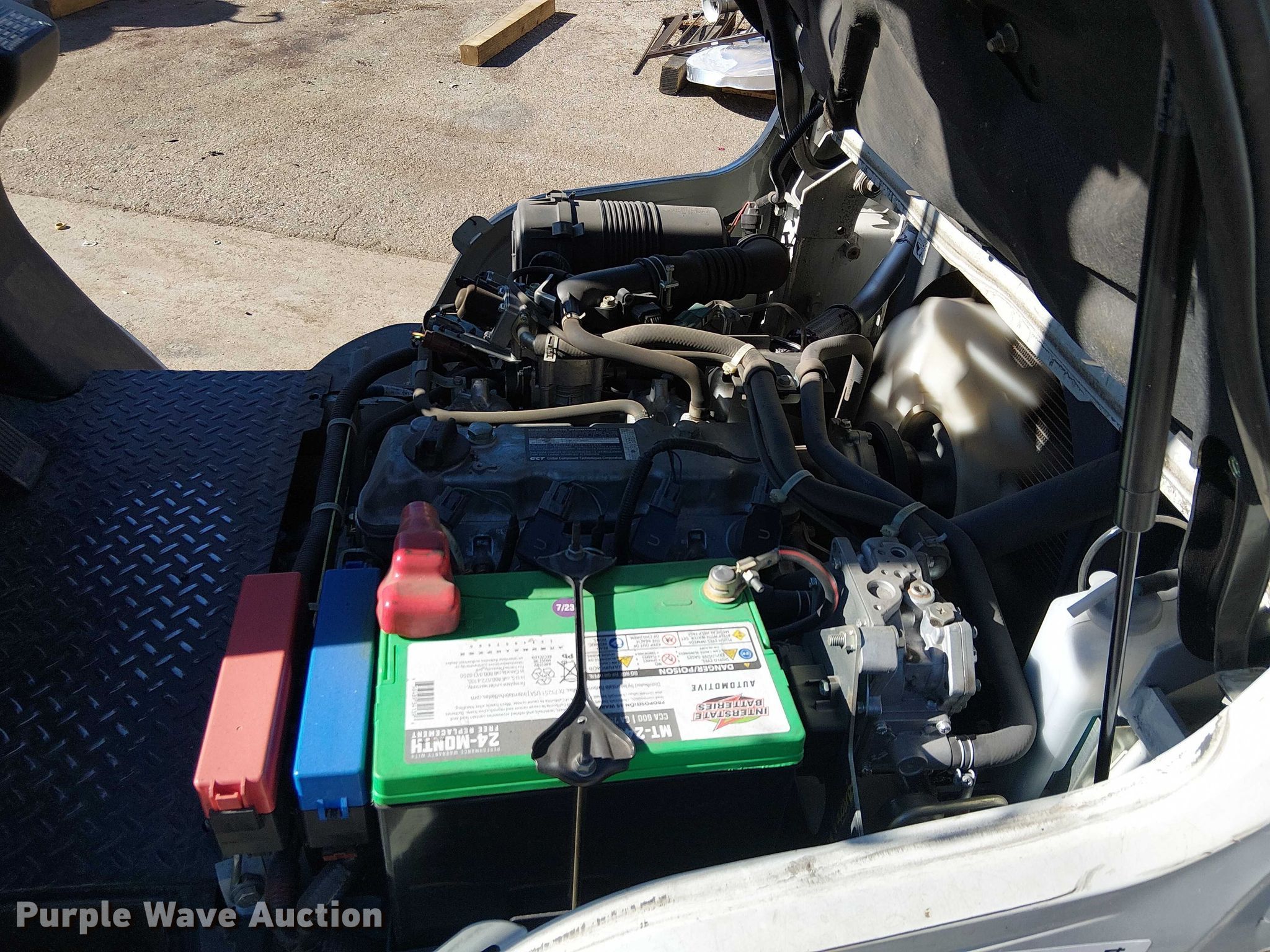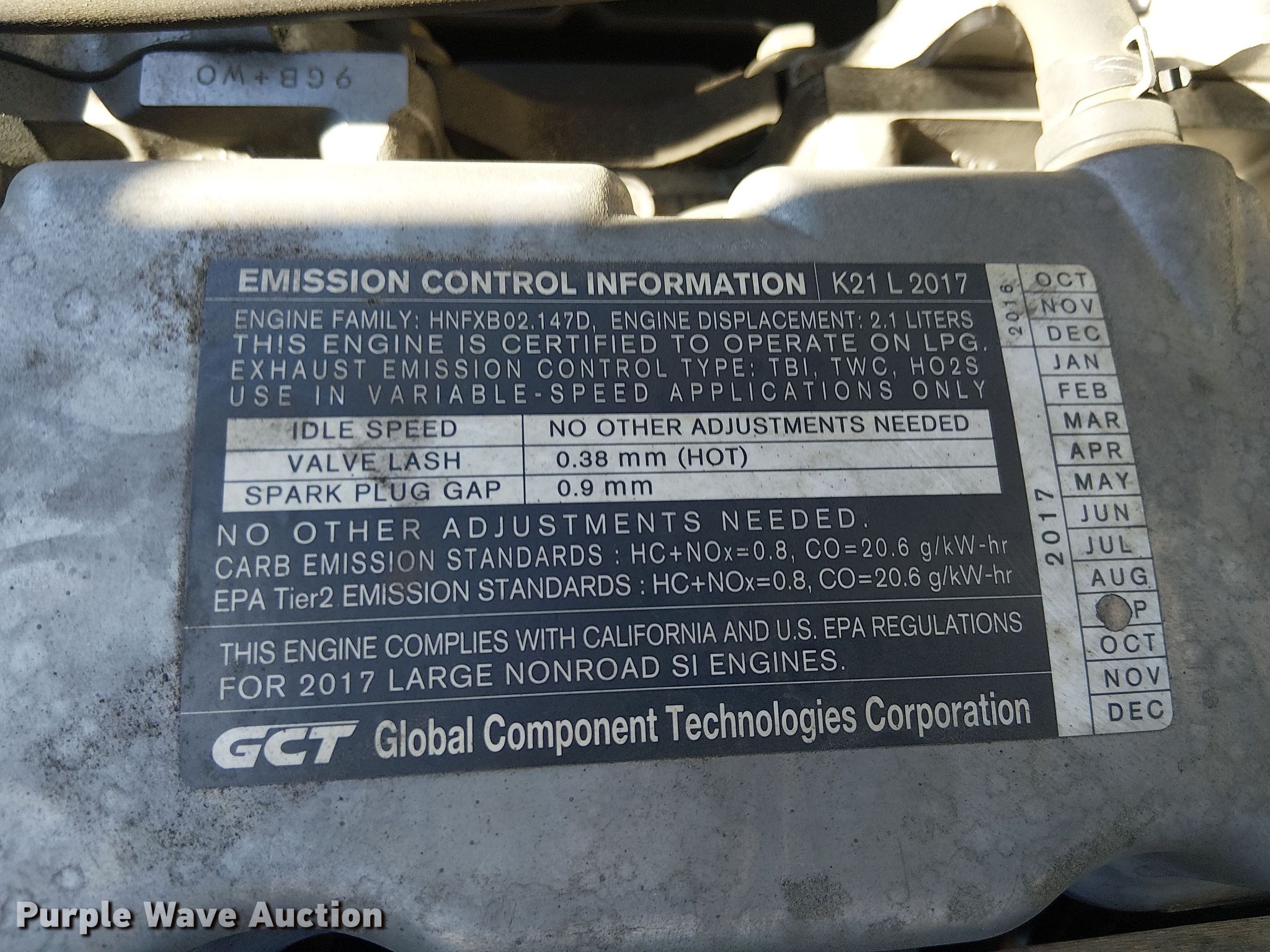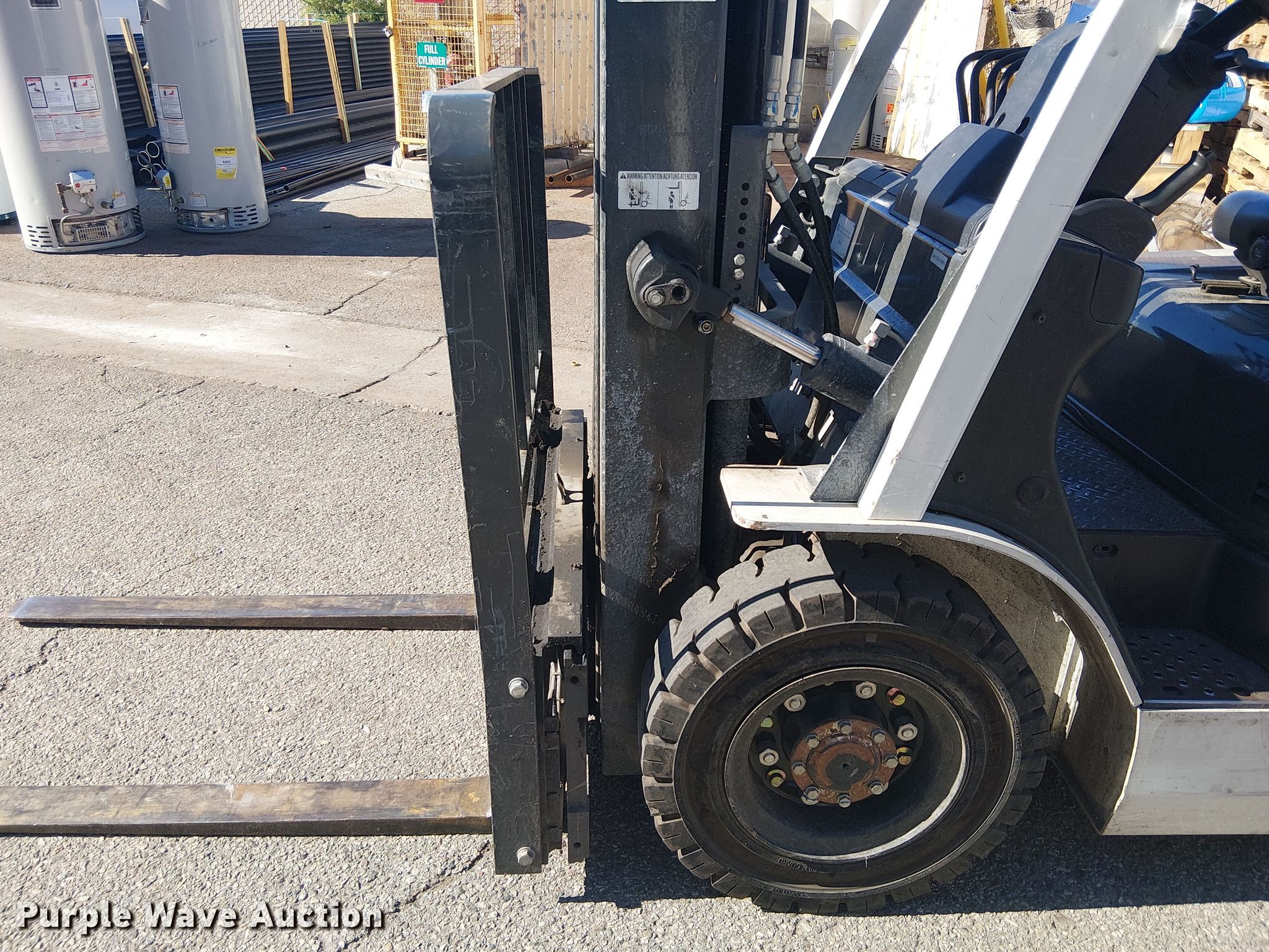2017 UniCarriers PF50 forklift. Hours: 1,448 on meter, Miles or hours may vary, unit still in use, Serial: P1F2-9H23087, Unit #: SFS2596. Engine GCT K21L, Displacement: 2.1L, Cylinders: 4, Fuel type: LPG LP bottle: Not included. Transmission Automatic. Operators station OROPS, Canopy. Features Maximum lift capacity: 3,325 lbs, Maximum lift height: 203", Collapsed mast height: 89", Mast stages: 3, Side shift, Mast tilt, Fork positioner, Fork length: 48". Tires Front: 6.00-9, Rear: 7.00-12, Solid. Notes Warning indicator: Master warning. Ferguson. San Juan Capistrano, CA 92675
