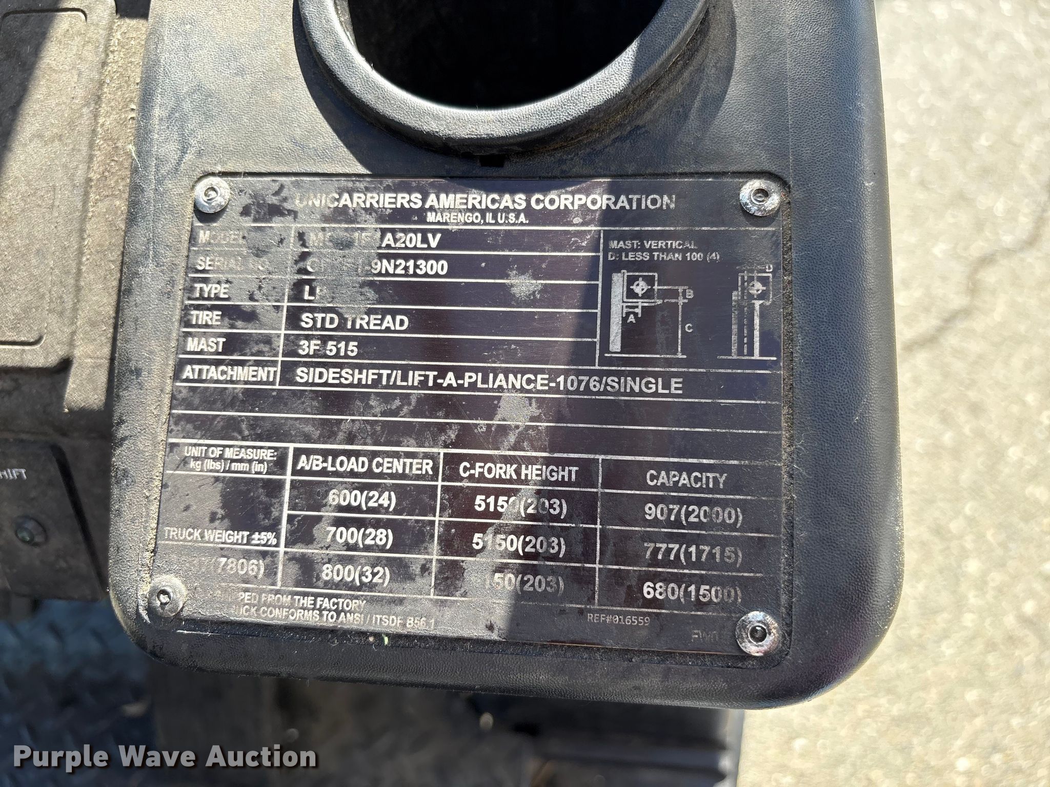 2017 UniCarriers CFS40 forklift. Hours: 2,328 on meter, Serial: CP1F1-9N21300, Unit #: SFS2588. Engine GCT K21L, Displacement: 2.1L, Cylinders: 4, Fuel type: LPG LP bottle: Not included. Transmission Automatic. Operators station OROPS. Features Maximum lift capacity: 2,000 lbs, Maximum lift height: 203", Collapsed mast height: 86", Mast stages: 3, Side shift, Mast tilt, Fork length: 46", Basiloid material handler. Tires Front: 18x6x12 1/8, Rear: 14x5x10, Solid. Ferguson. Sacramento, CA 95838