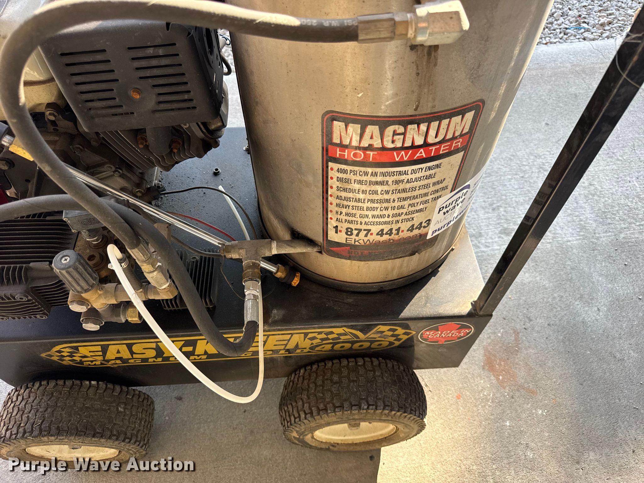 Easy kleen Magnum gold 4000 hot pressure washer. Engine. Fuel type: Gas, HP: 15. Features Hot water pressure washer, Diesel burner, PSI: 4,000. Tires Size: 13.00x5.00-6. Hannibal Crane Service, Inc.. Hannibal, MO 63401