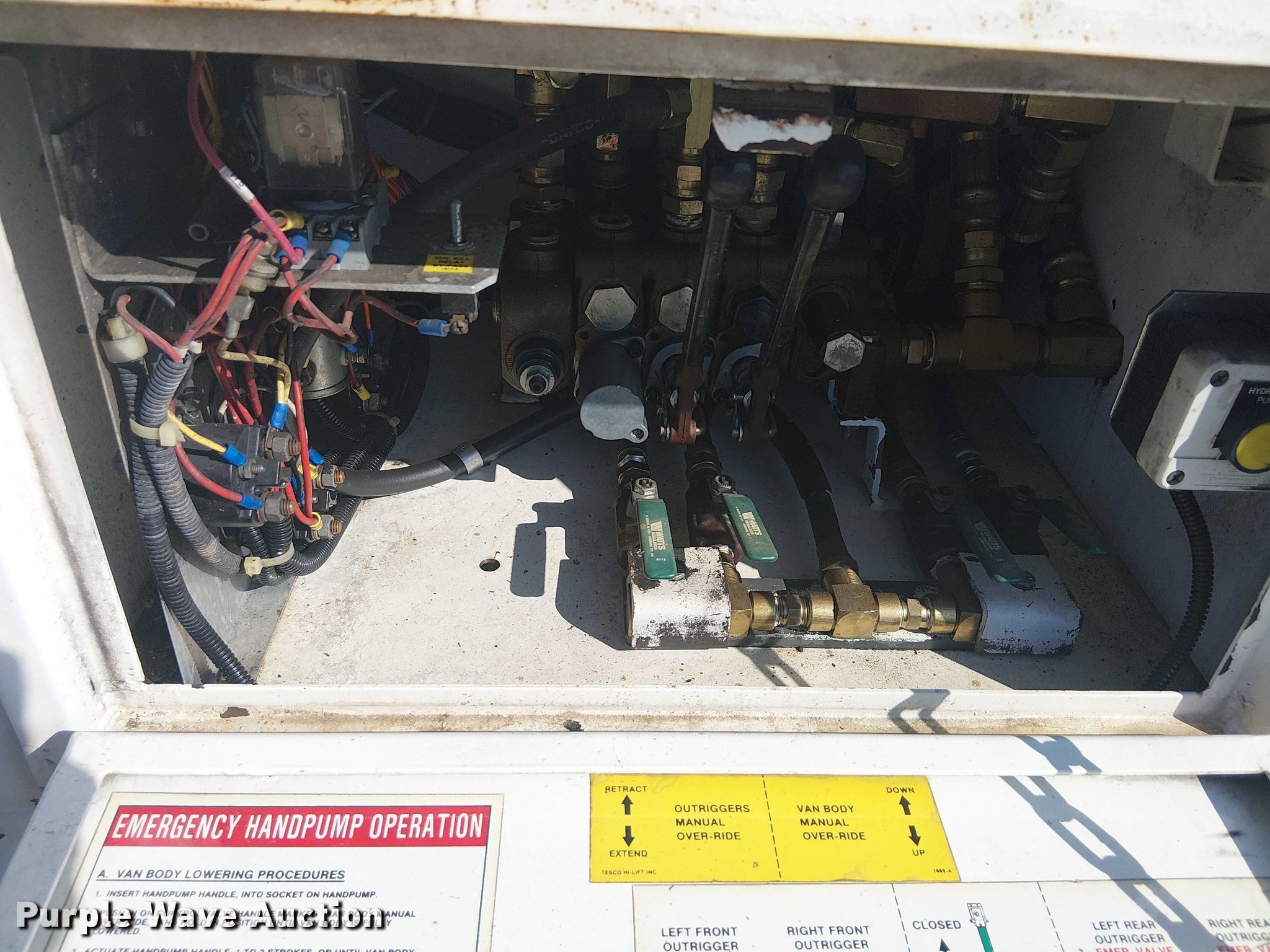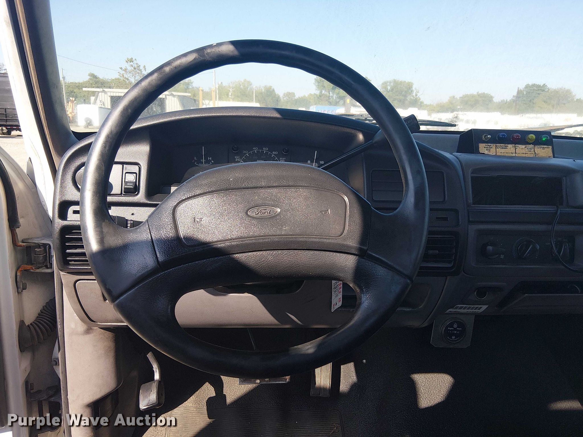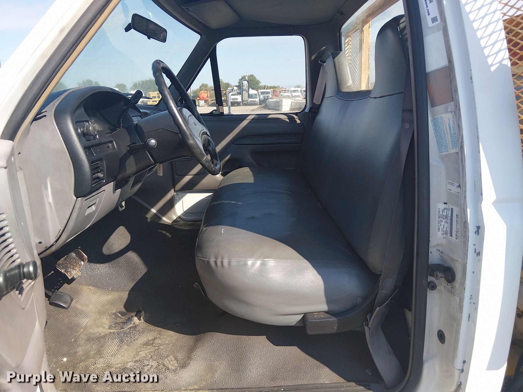 Purple Wave is selling a used Flat Bed Truck in Oklahoma. This item is a 1997 Ford F Super Duty scissor lift truck with the following: Miles: 38,704 on odometer, VIN: 3FELF47G1VMA53811