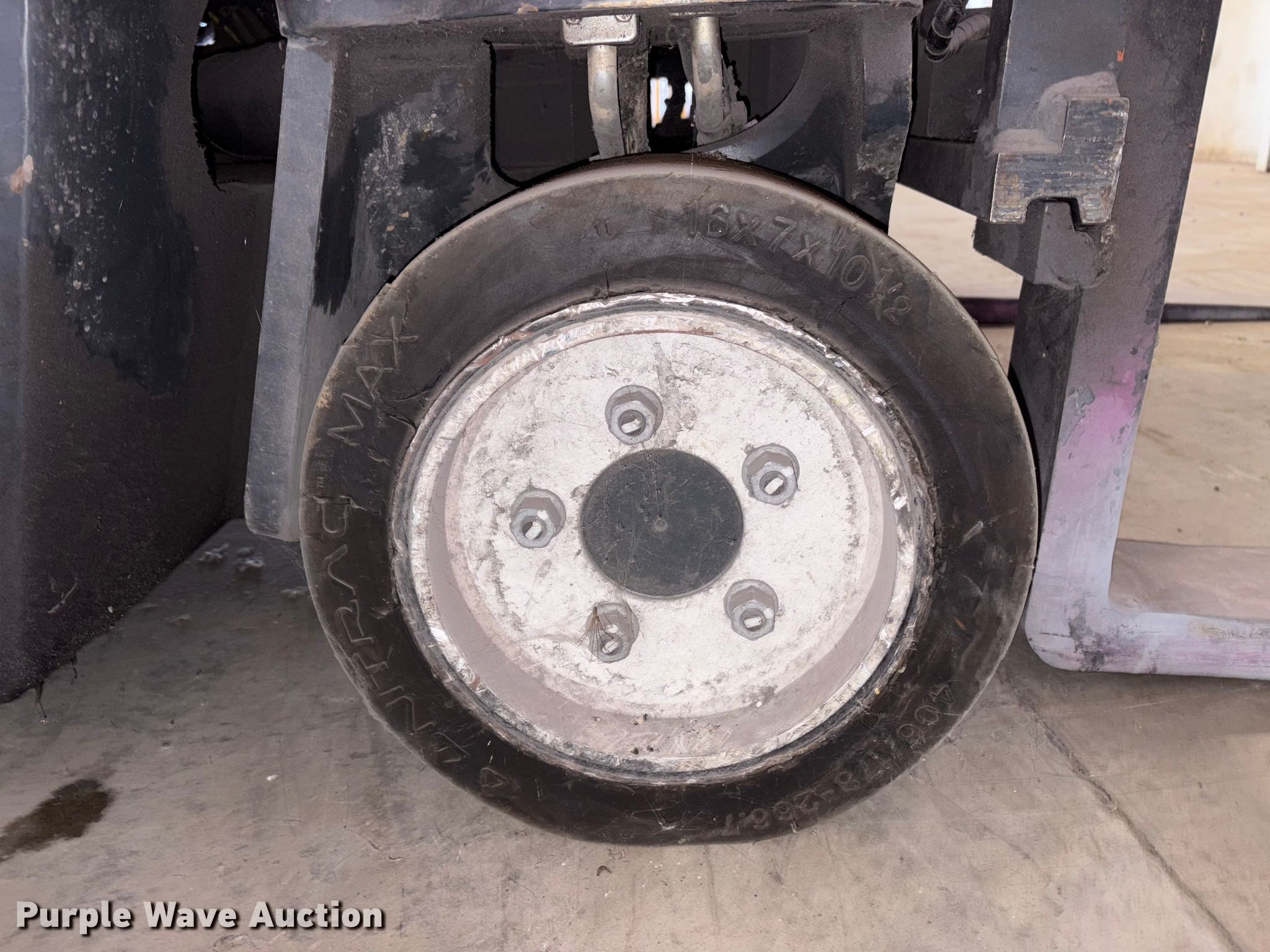 2012 CombiLift CB6000 forklift. Hours: 1,474 on meter, Serial: 19894, Unit #: SFS2593. Engine Cylinders: 4, Fuel type: LPG LP bottle: Not included. Transmission Automatic. Operators station OROPS. Features Maximum lift capacity: 6,000 lbs, Collapsed mast height: 87", Mast stages: 3, Side shift, Mast tilt, Fork positioner, Fork length: 42". Tires Solid. Notes Dead battery, Fuel leak, Unknown operating condition. Ferguson. Clarksville, TN 37040