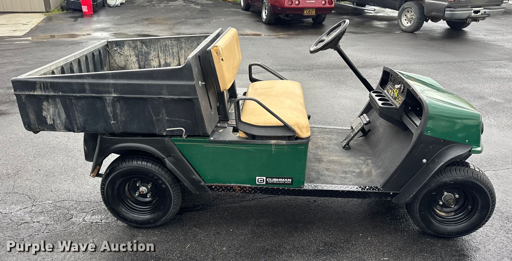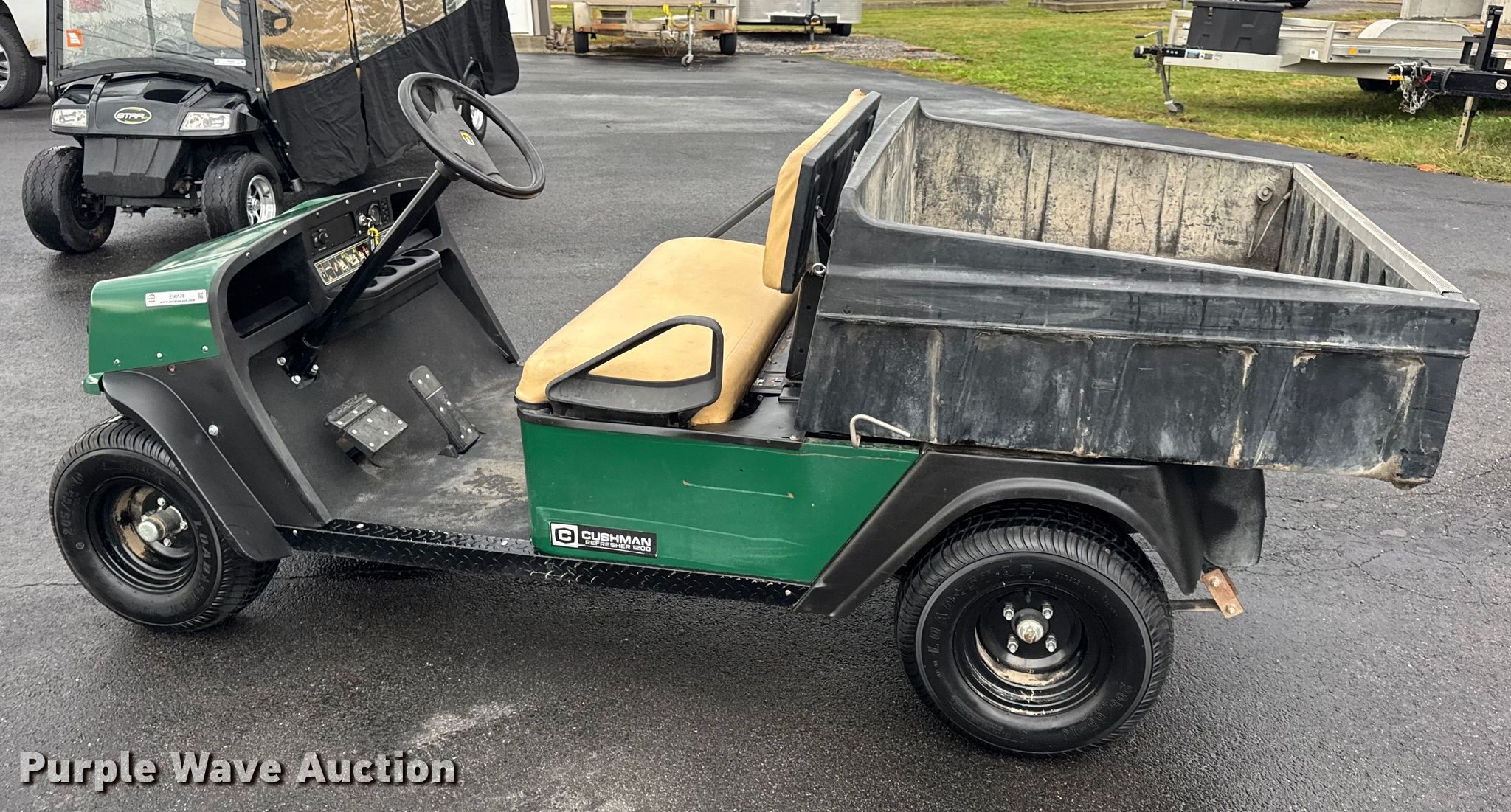 This 2012 Cushman Refresher 1200 utility vehicle will sell to the highest bidder regardless of price.