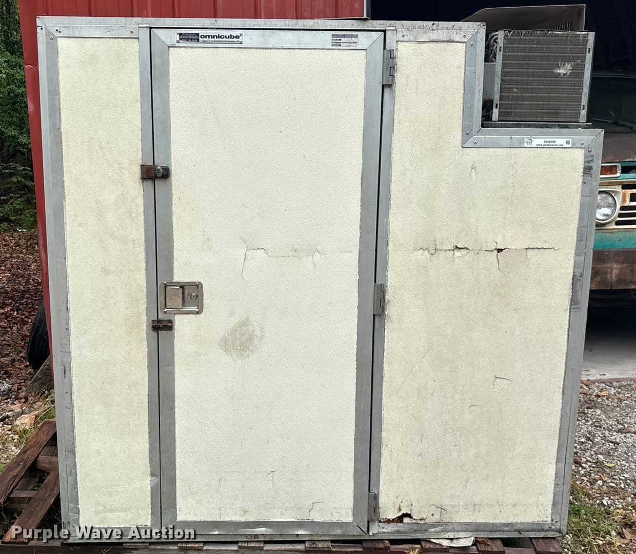 Equipment Innovators Omnicube refrigerator. Overall dimensions: 69" x 35" x 68", Serial: 2B0-6111. Notes Side damage, cracks, Floor damage, holes. Complete Auto Sales LLC. Diamond, MO 64840