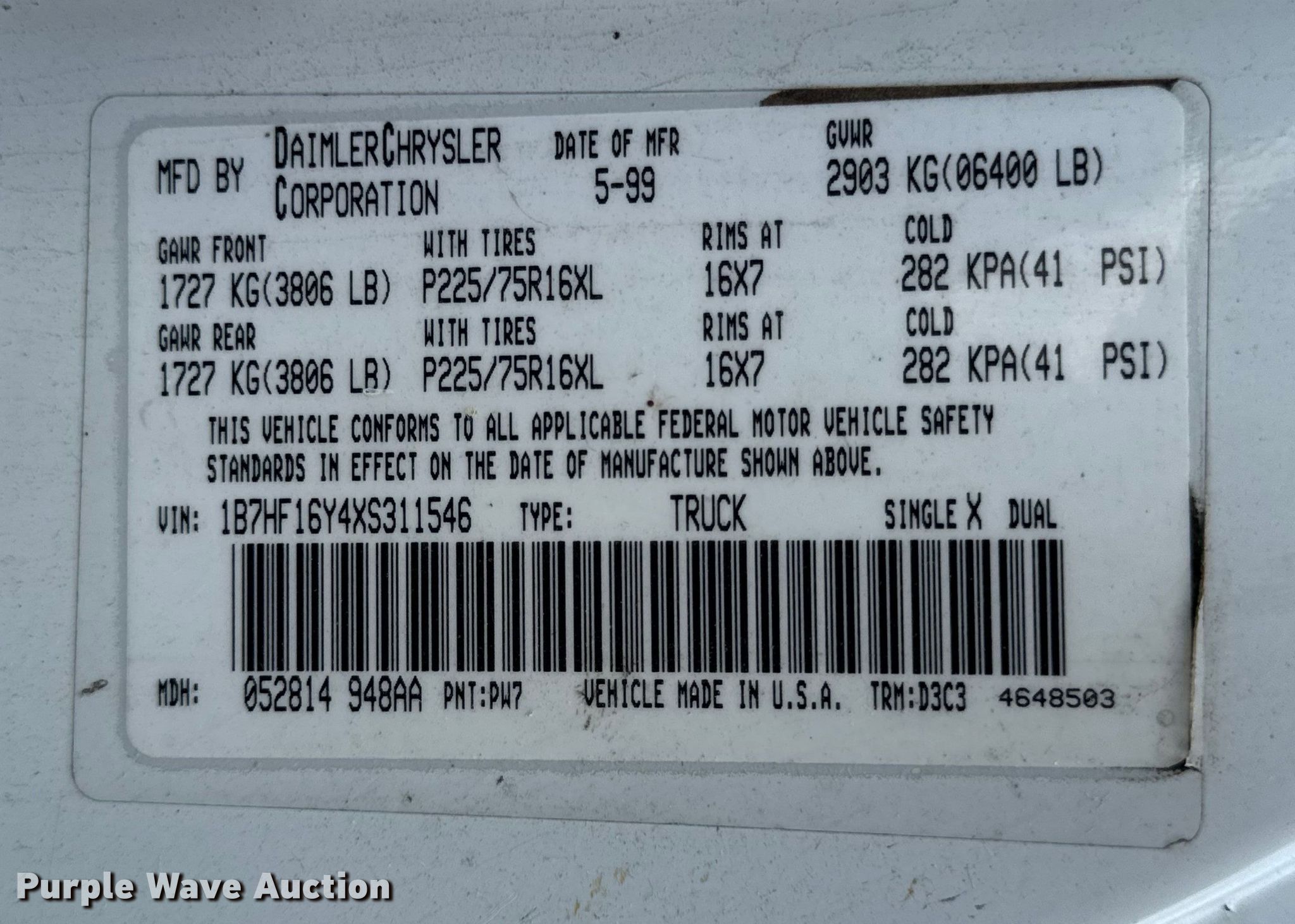 Take a look at this used 1999 Dodge Ram 1500 pickup truck being sold on November 19th, 2025 in the Wednesday November 19 Vehicles and Equipment Auction made by Dodge. Take a look at all of the item information below or take a look at similar auctions for Pickups and Vans.