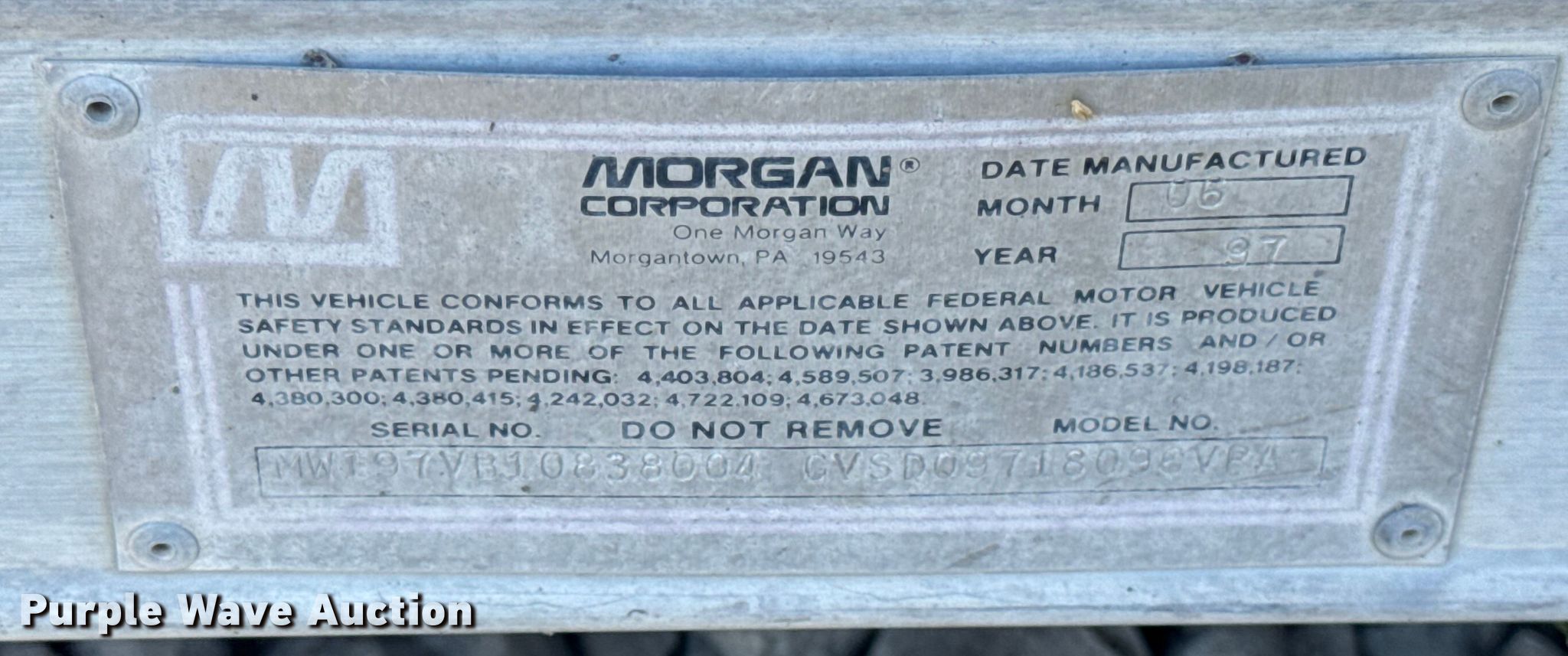 Take a look at this used 1997 Morgan GVSD09718098VP4 box bed being sold on November 19th, 2025 in the Wednesday November 19 Vehicles and Equipment Auction made by Morgan. Take a look at all of the item information below or take a look at similar auctions for Truck Parts and Acces..