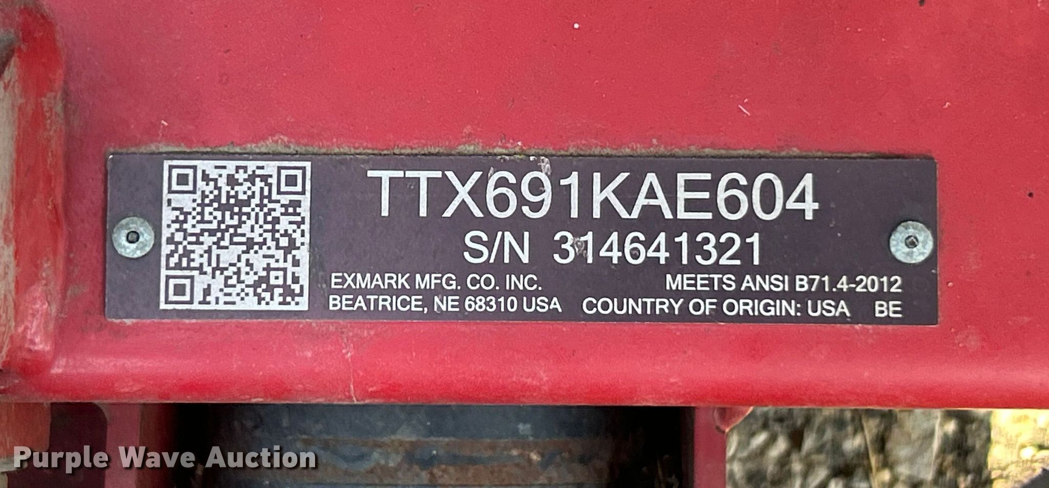Purple Wave is selling a used Commercial Turf Mower in Illinois. This item is a 2014 Exmark TTX691KAE604 lawn mower with the following: Hours: 1,397 on meter, Cutting width: 62", Serial: 314641321