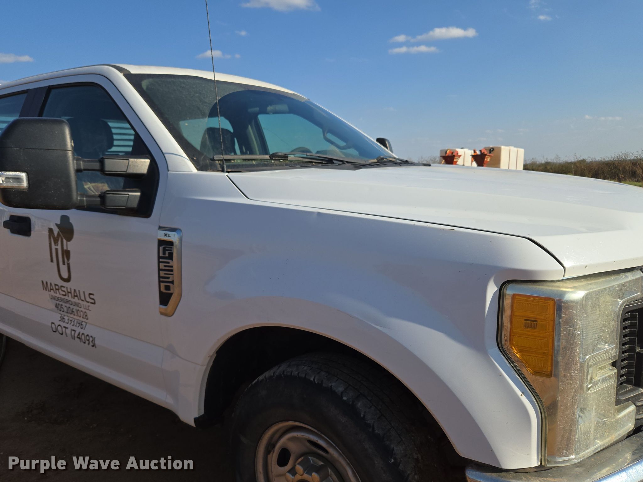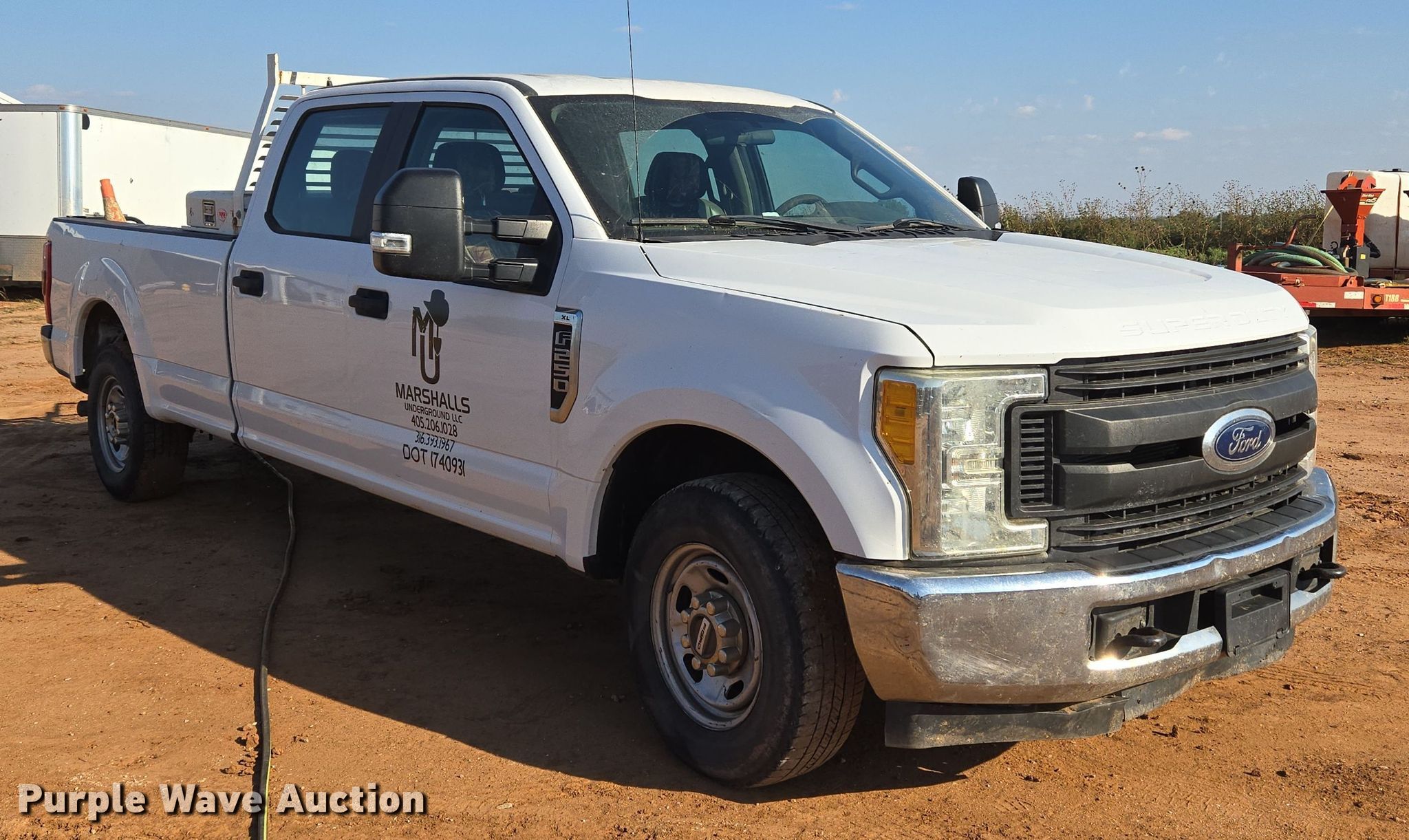 2017 Ford F250 Super Duty XL Crew Cab pickup truck. Miles: 183,250 on odometer, Miles or hours may vary, unit still in use, VIN: 1FT7W2A62HED20415. Engine Displacement: 6.2L V8 OHV, Cylinders: 8, Fuel type: Gas. Transmission Automatic. Interior AC, Heat, Heated mirrors, Power windows, Power locks, Cruise control, Auxiliary controls, Brake controller. Tires Size: LT245/75R17. Notes Climate control issues, will not blow air, Hail damage. Oklahoma title. Title distribution may be delayed up to 14 days from verification of funds. Marshalls Underground LLC. Ponca City, OK 74601