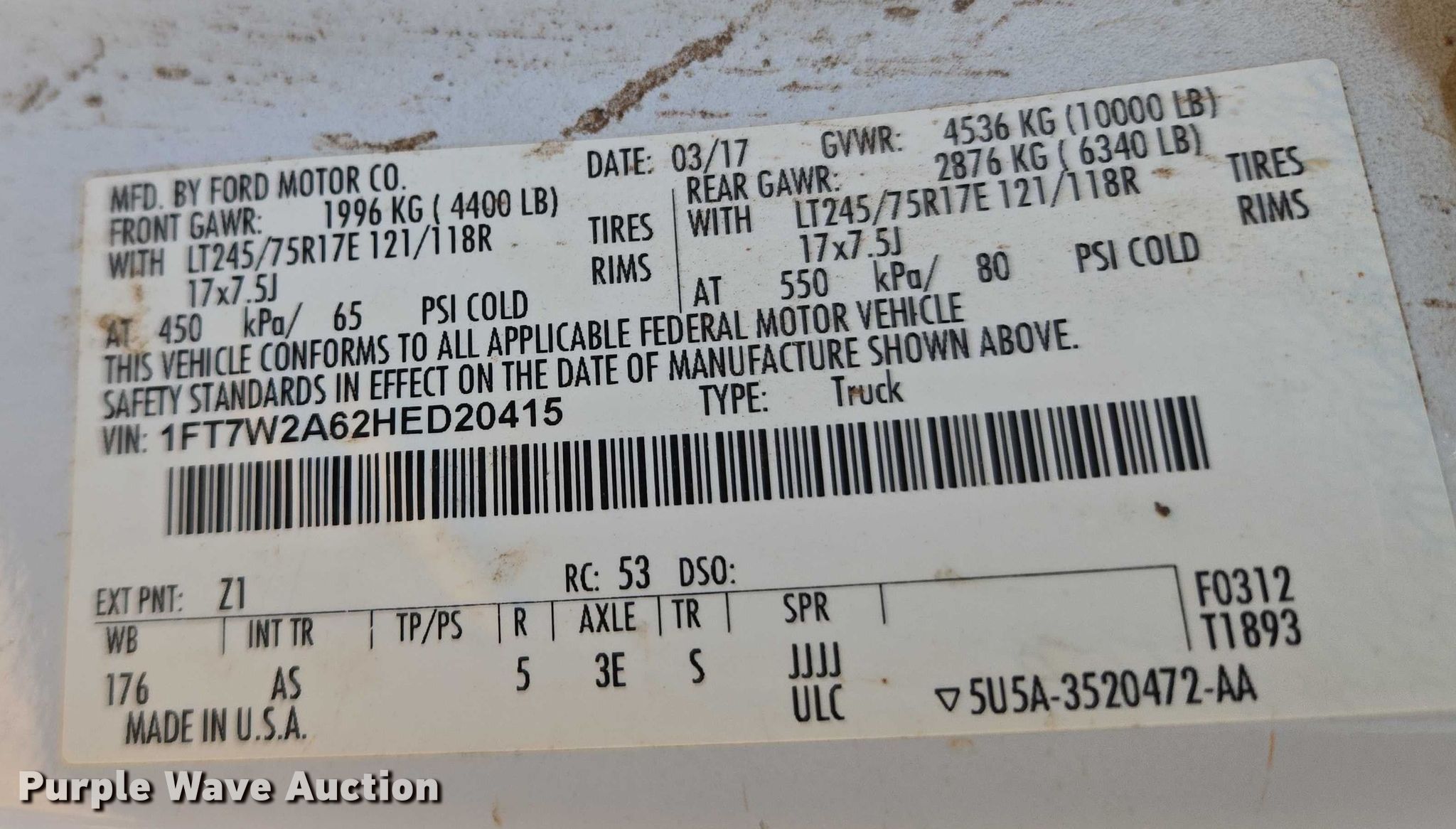 - VIN: 1FT7W2A62HED20415