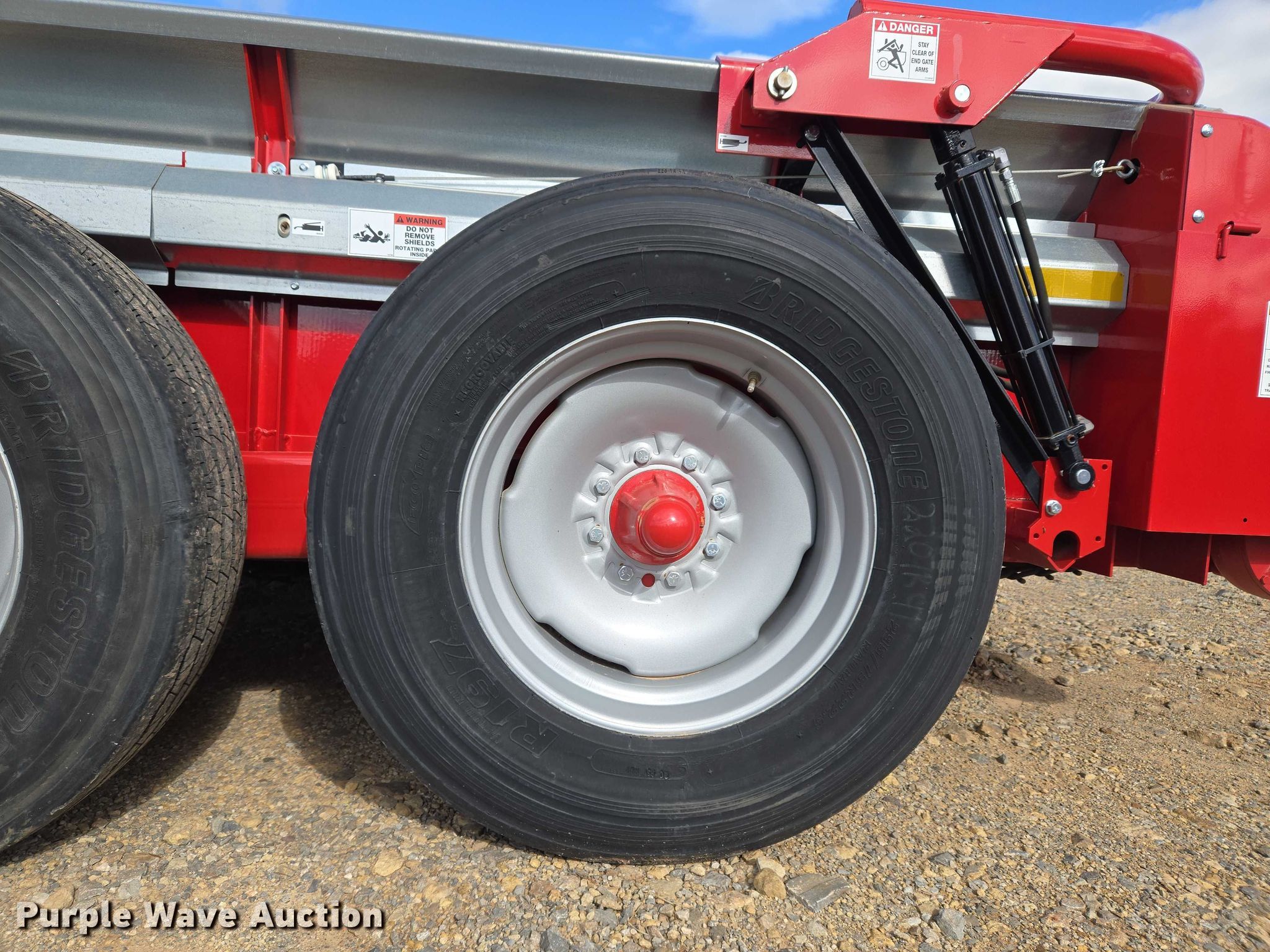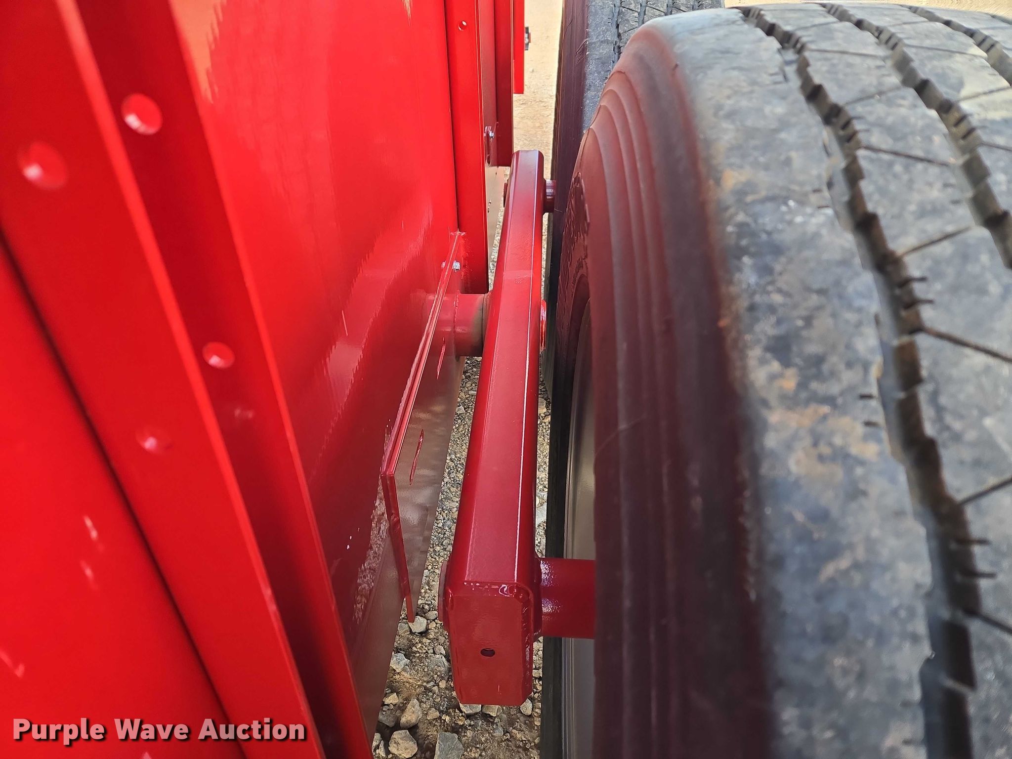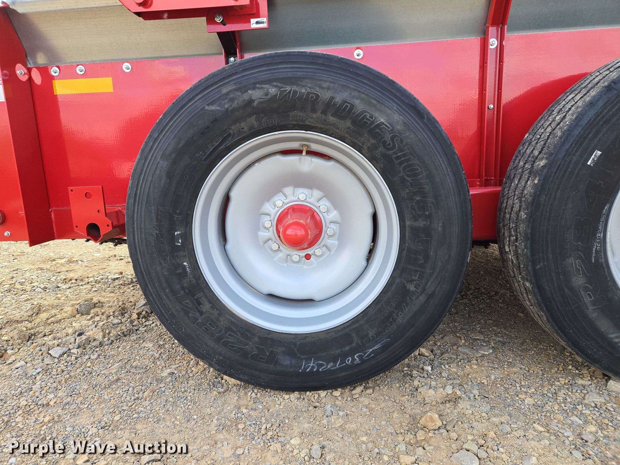 H&S MFG. CO. INC. S3231 manure spreader. Serial: 422MS31082. Features 14' 8" L x 5' W x 9" W, Side height: 2' 7", Chain driven floor, Rear beaters: Vertical Quantity: 13, PTO: 540. Chassis Suspension: Walking beam, Axles: Tandem. Tires Size: 295/75R22.5. Great Plains Kubota. Stillwater, OK 74074