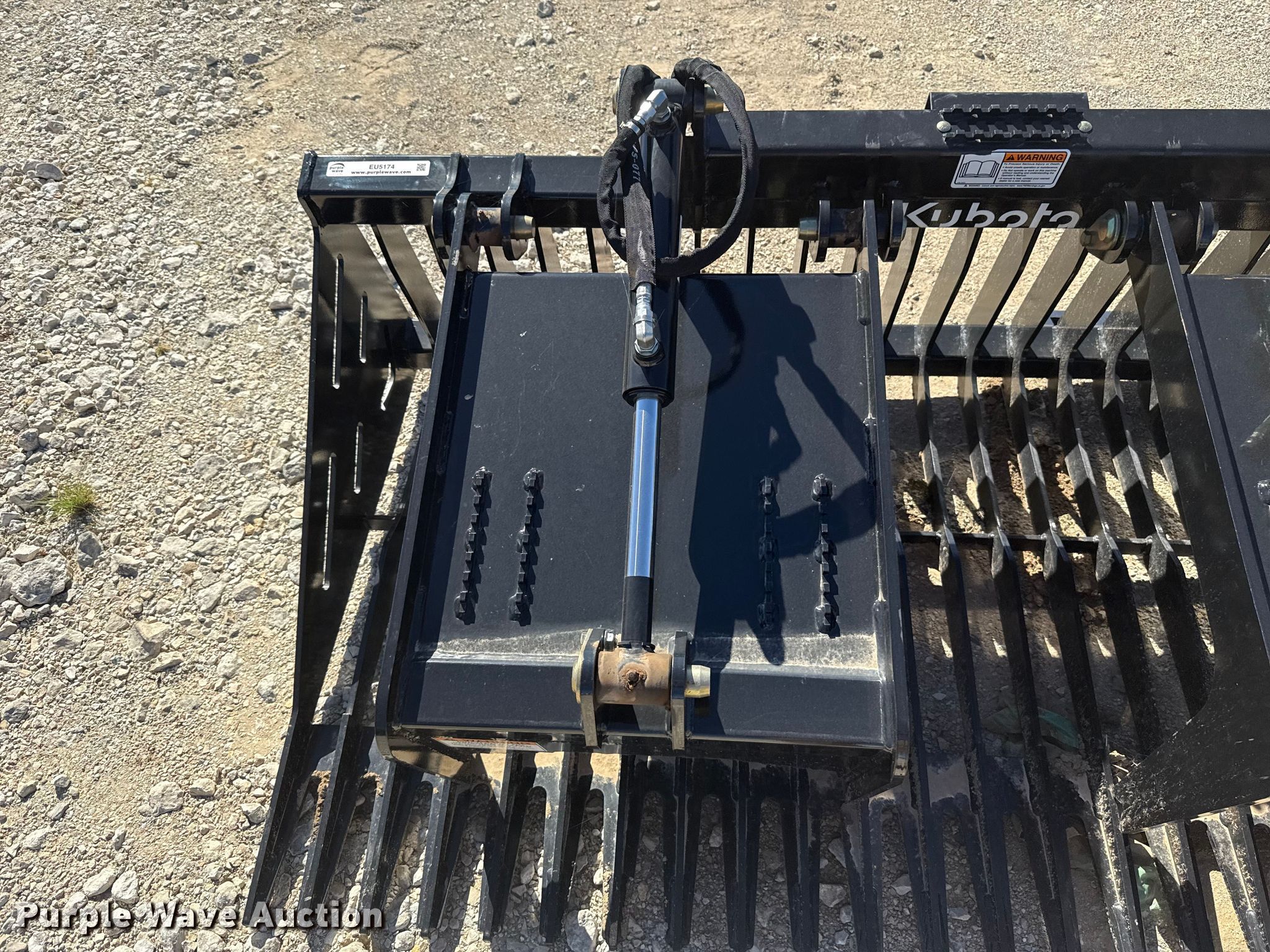 Kubota SGR1578 skid steer rock bucket for sale in Ada, Oklahoma. Item EU5174 will sell on November 19th, 2025.