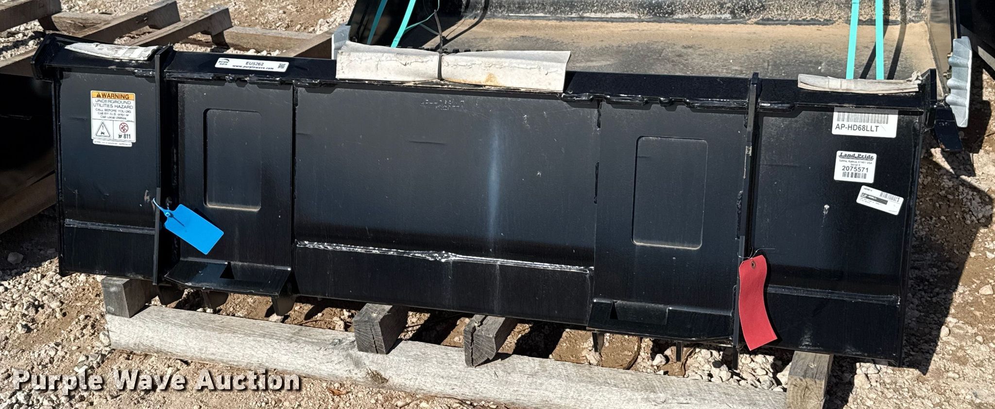 Purple Wave is selling a used Skid Steer Attach. in Oklahoma. This item is a Land Pride AP-HD68LLT skid steer bucket with the following: Serial: 2075571, Width: 68", Low profile, Teeth: Weld-on