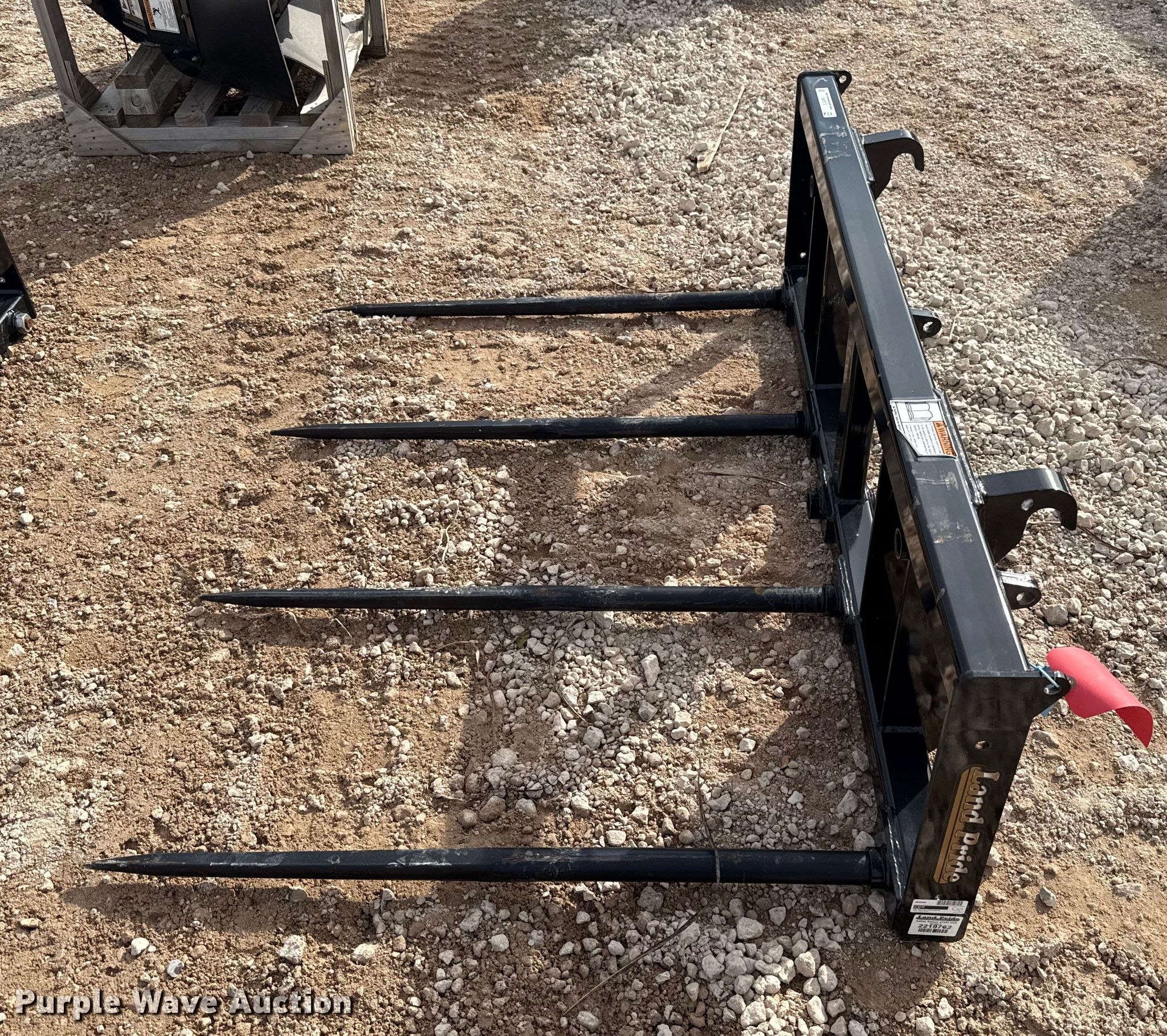 Purple Wave is selling a used Skid Steer Attach. in Oklahoma. This item is a Land Pride BSE50 skid steer bale spear with the following: Serial: 2219762, Width: 67", Spear length: 44", Spears: 4