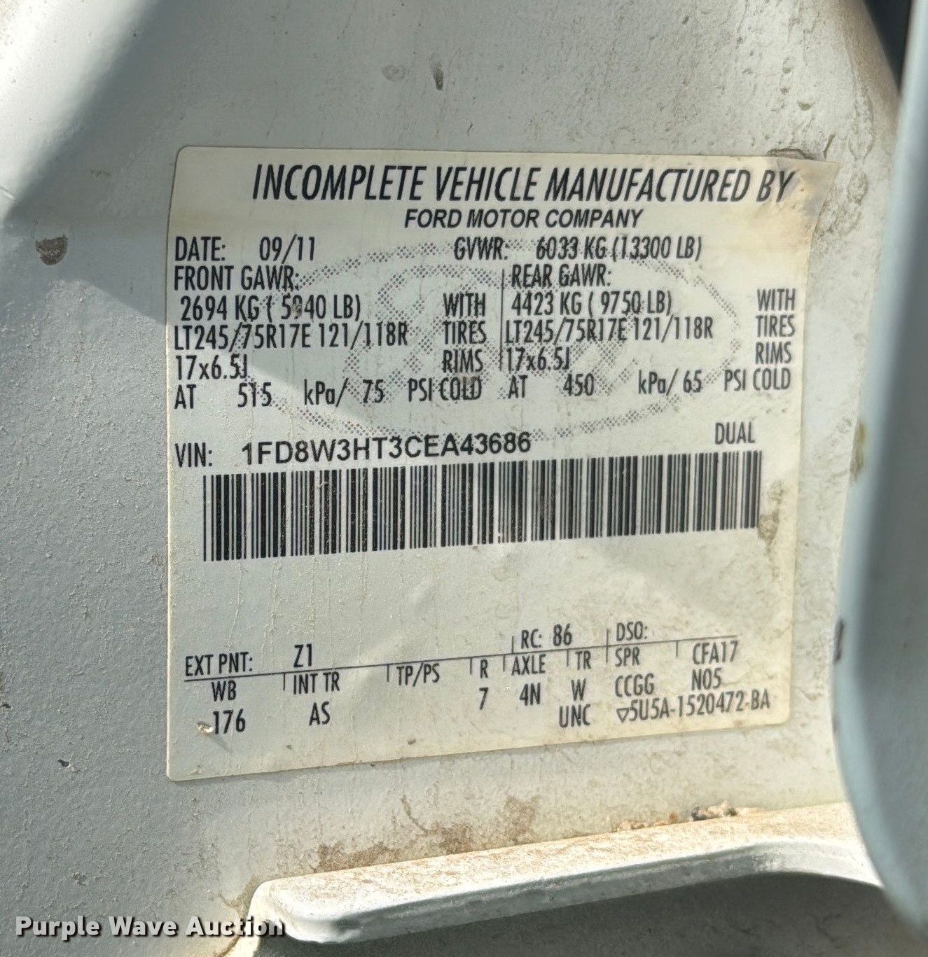 Purple Wave is selling a used 3/4 or 1 Ton Pickup or Van in Nebraska. This item is a 2012 Ford F350 Super Duty XL Crew Cab pickup truck cab and chassis with the following: Miles: 173,529 on odometer, VIN: 1FD8W3HT3CEA43686