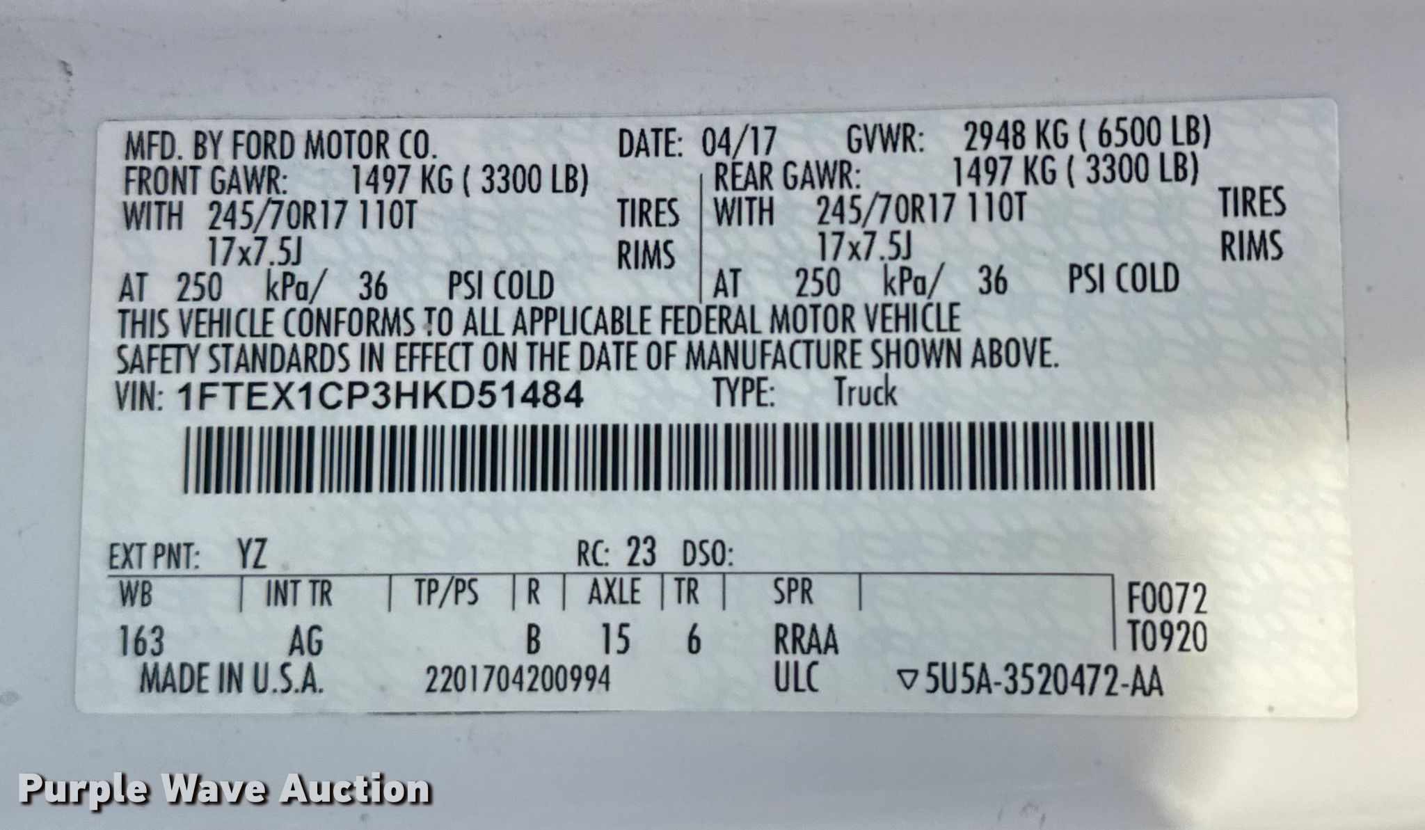 - VIN: 1FTEX1CP3HKD51484