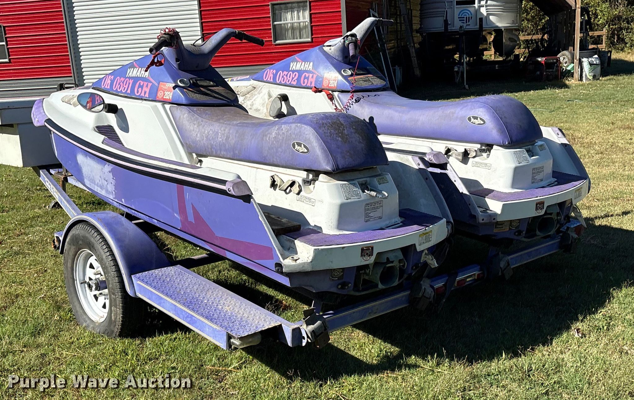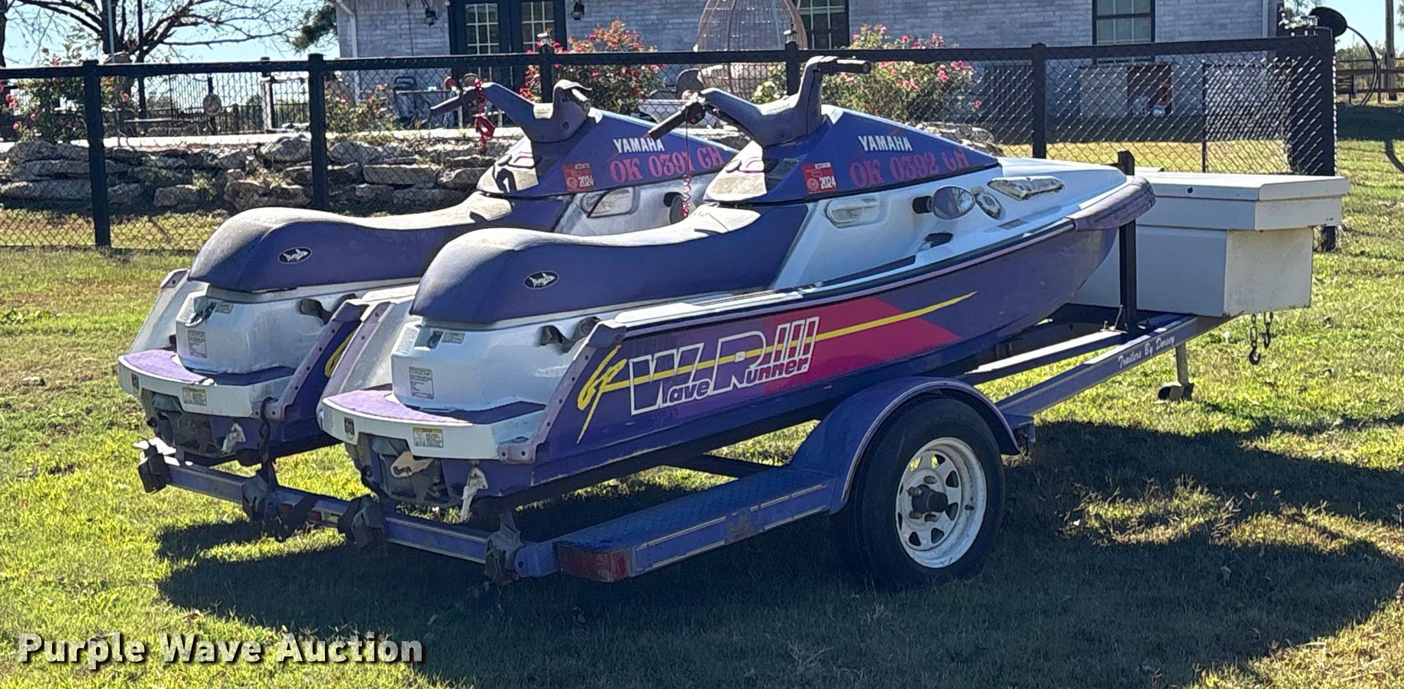 1994 Yamaha Wave Runner III personal watercraft. Hours: Unknown, Length: 10', Hull ID: YAMA3003J394. Engine Engine type: Inboard, 1994 Yamaha J700C, Displacement: 700 cc, Cylinders: 2, Fuel type: Gas, HP: 63. Operators station Capacity Person: 2. Notes Non-operational unit. 1994 Yamaha Wave Runner III personal watercraft Hours: Unknown, Length: 10', Hull ID: YAMA3222L394. Engine Engine type: Inboard, 1994 Yamaha J700C, Displacement: 700 cc, Cylinders: 2, Fuel type: Gas, HP: 63. Operators station Capacity Person: 2. Trailer 94 Trailers By Dorsey, VIN: 41BP11015RK003377, Overall length: 16', GVWR: 1,560 lbs, Ball hitch size: 2", Axles: Single, Tire size: 175/80R13. Notes Non-operational units. Personal watercraft-Cherokee Nation title. Personal watercraft- Cherokee Nation title. Trailer- transfer of ownership documentation will be a bill of sale. Distribution of ownership documentation may be delayed up to 14 days from verification of funds.. Holman Recreation LLC. Porter, OK 74454