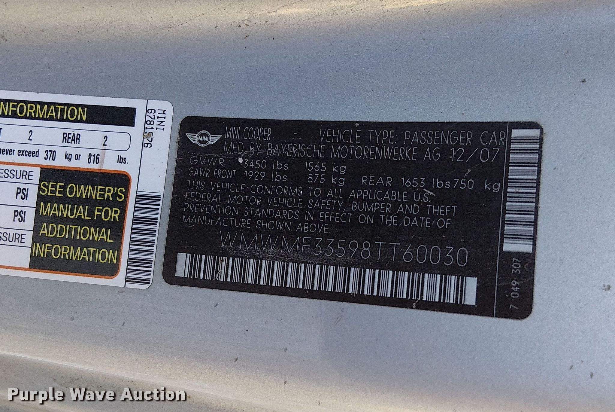Purple Wave is selling a used Passenger Vehicle in Kansas. This item is a 2008 Mini Cooper with the following: Miles: 171,220 on odometer, VIN: WMWMF33598TT60030