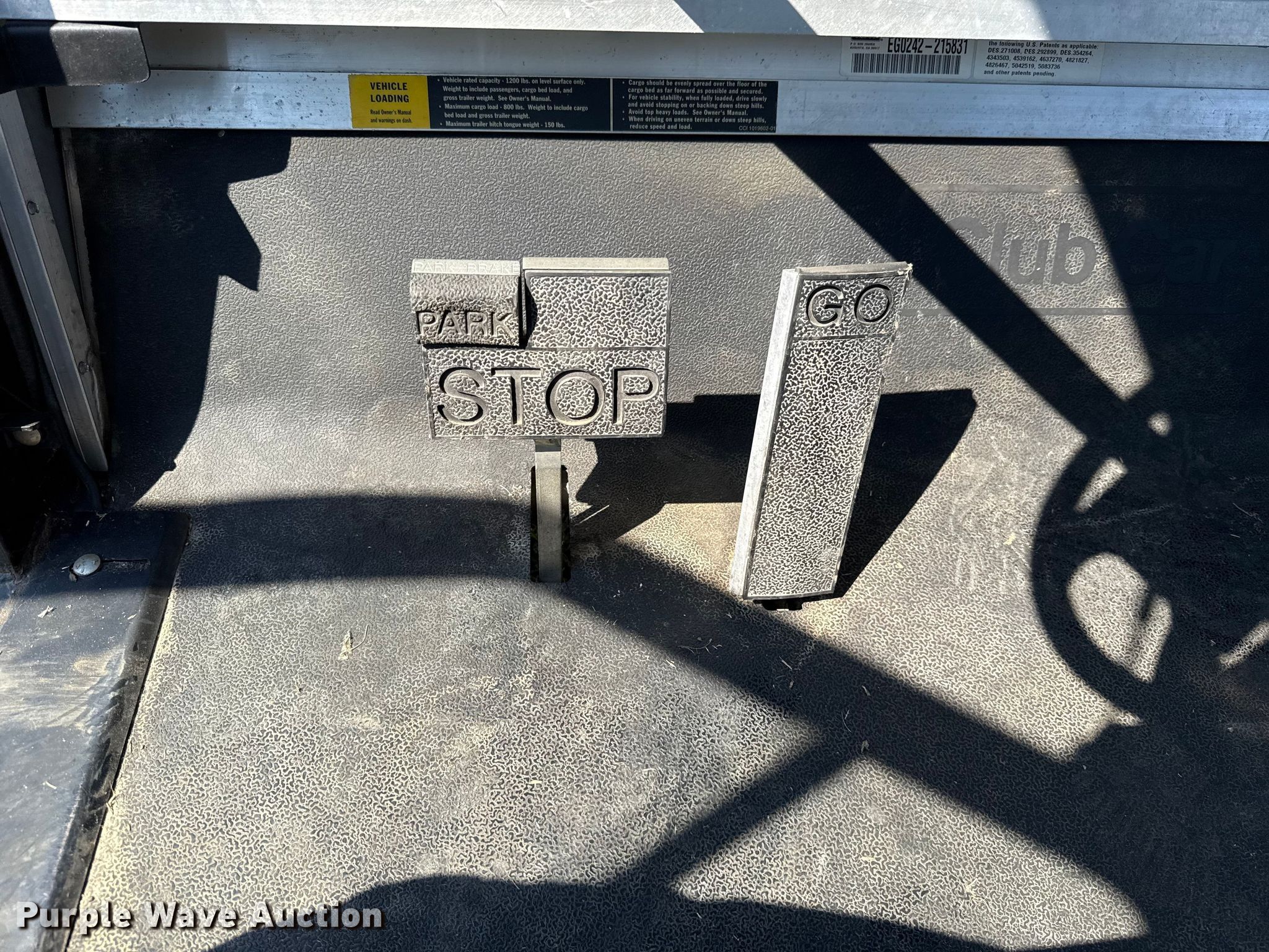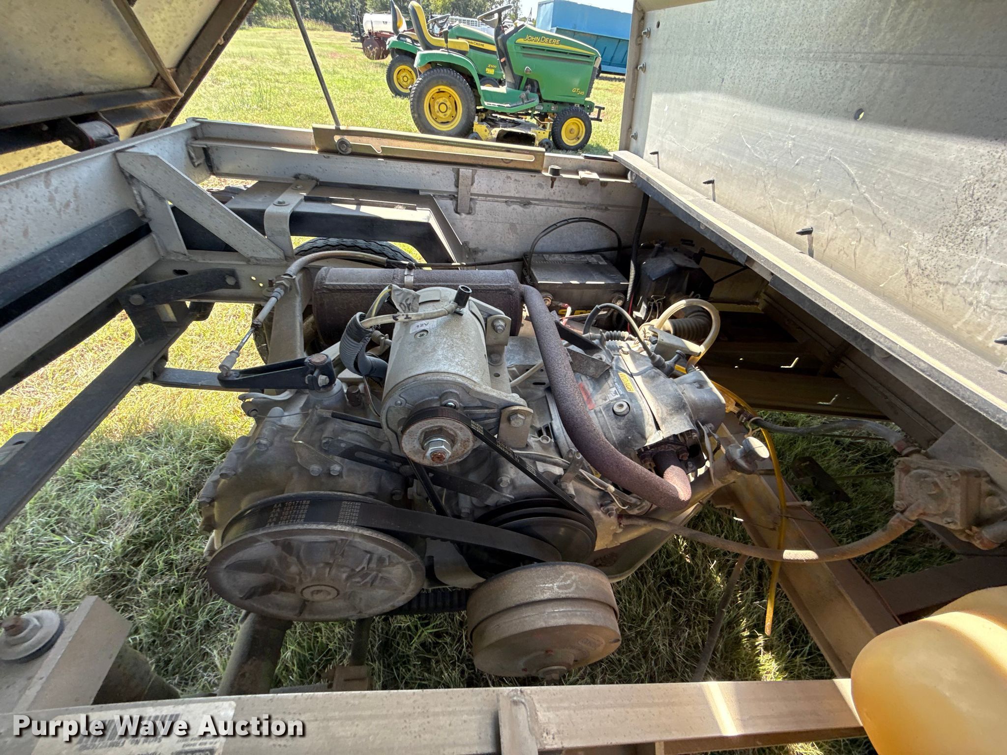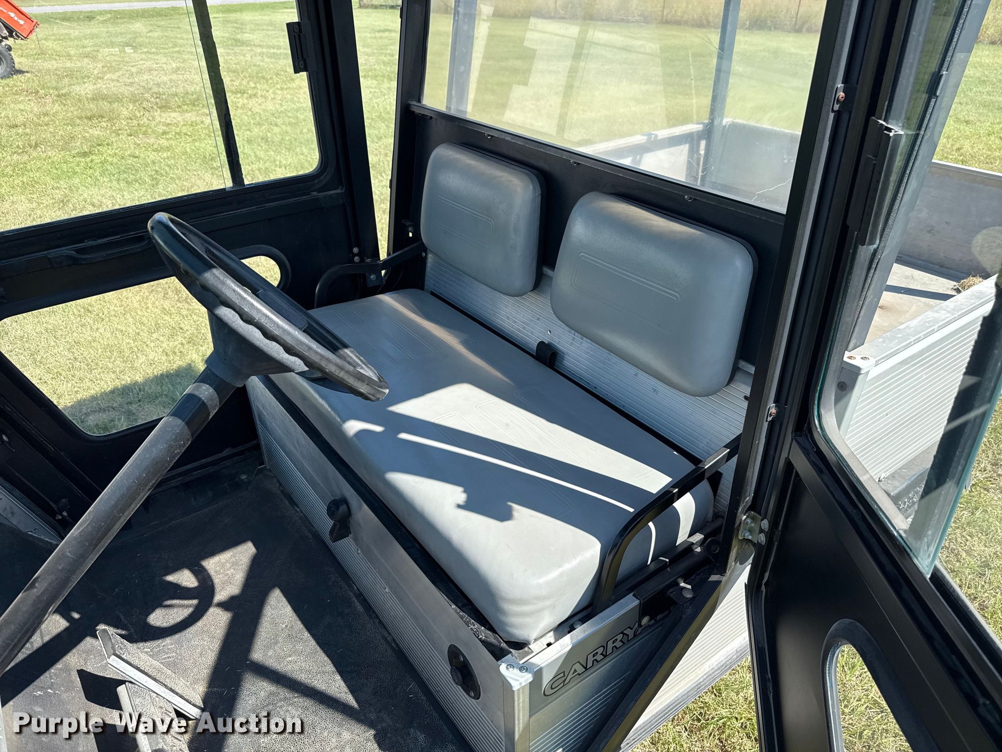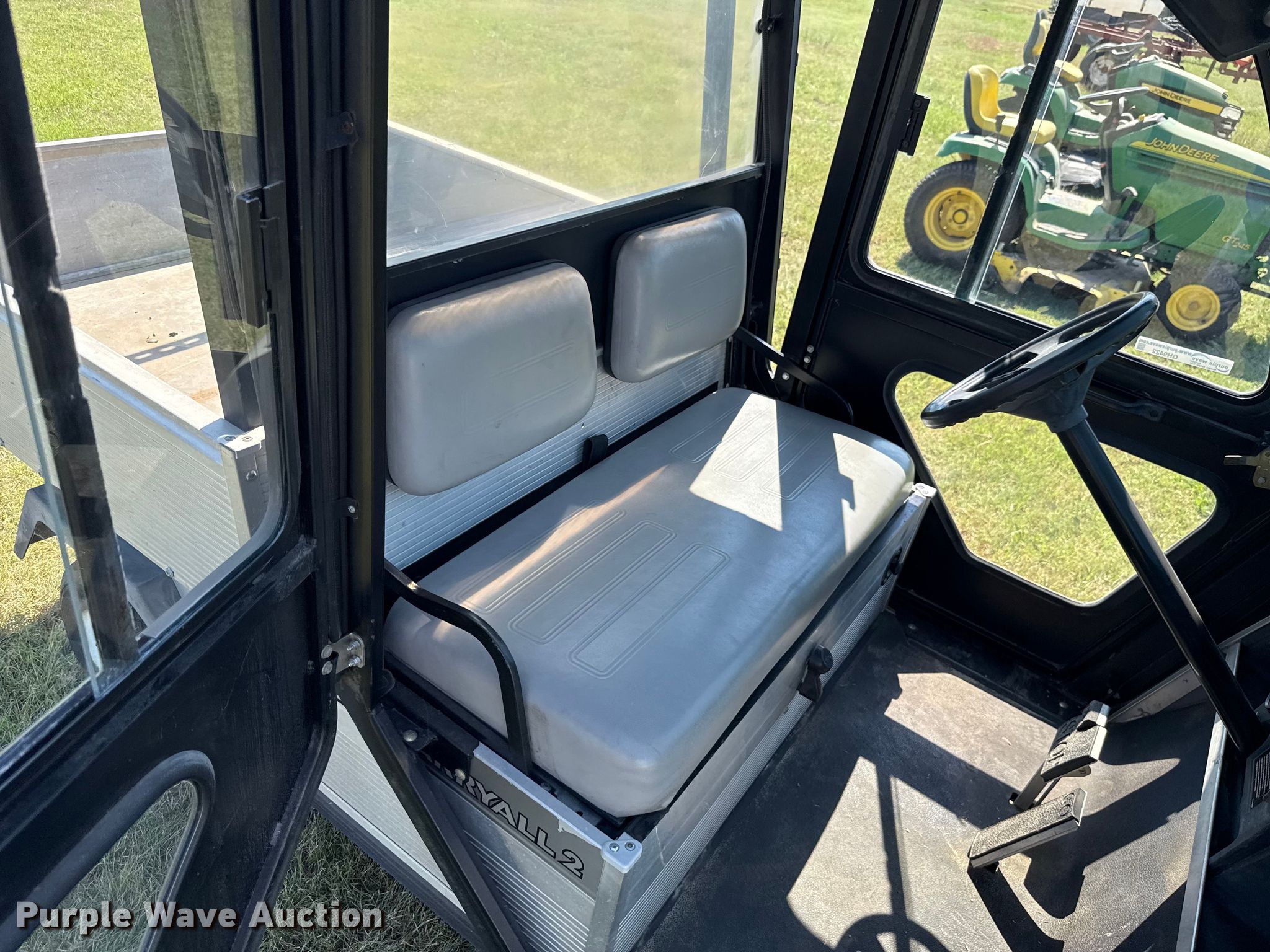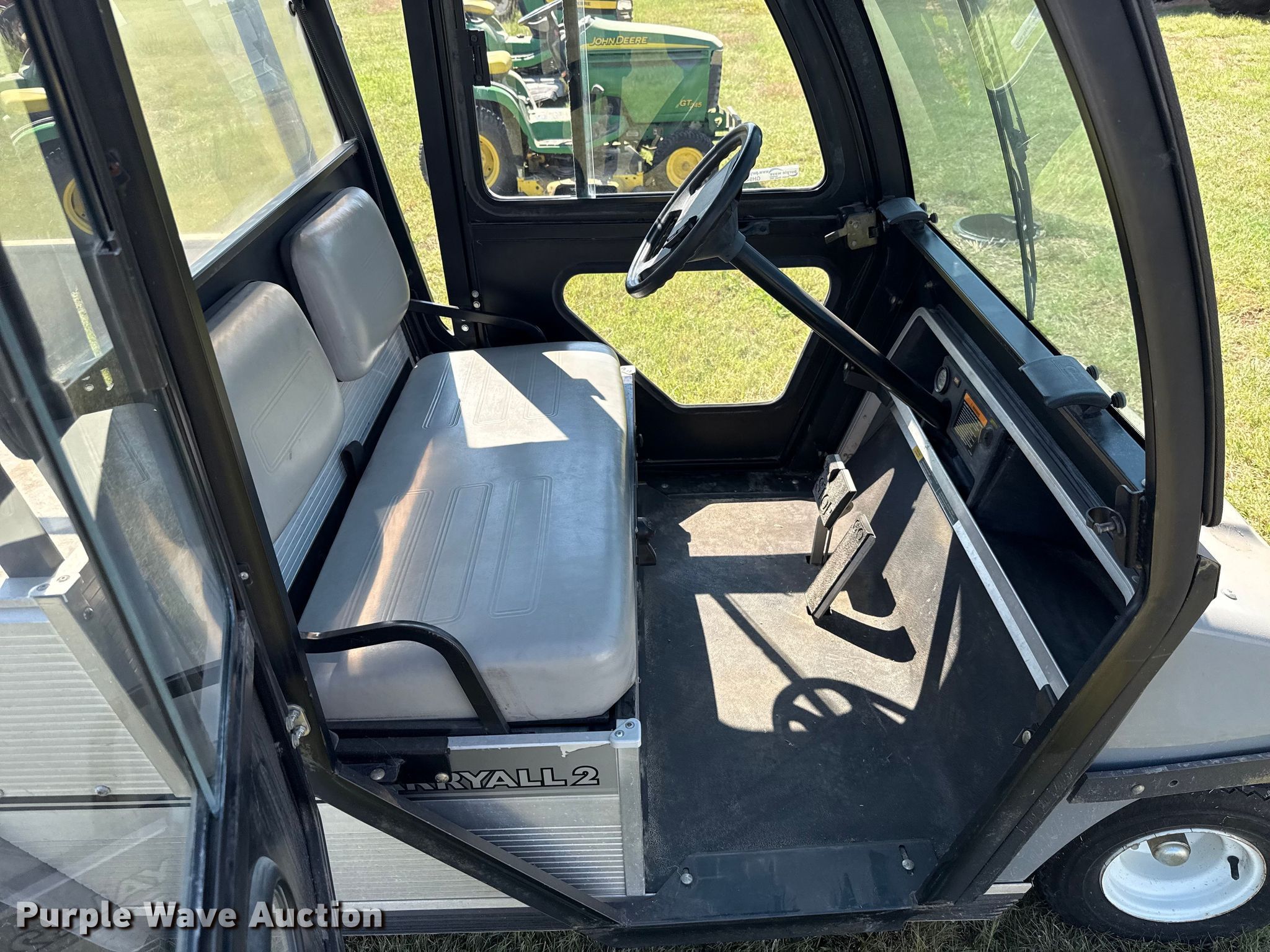 2002 Club Car Carryall 2 golf cart. Hours: 372 on meter, Serial: FRM1274298. Engine Kawasaki, Cylinders: 1, Fuel type: Gas. Transmission Automatic. Operators station Enclosed cab. Features Grille guard, Receiver hitch, Dump bed 48" L x 47" W, Dump bed type: Manual. Tires Size: 18X8.50-8. Notes Jump start required during on-site data collection. Transfer of ownership documentation will be a bill of sale. Noble Research Institute. Ardmore, OK 73401