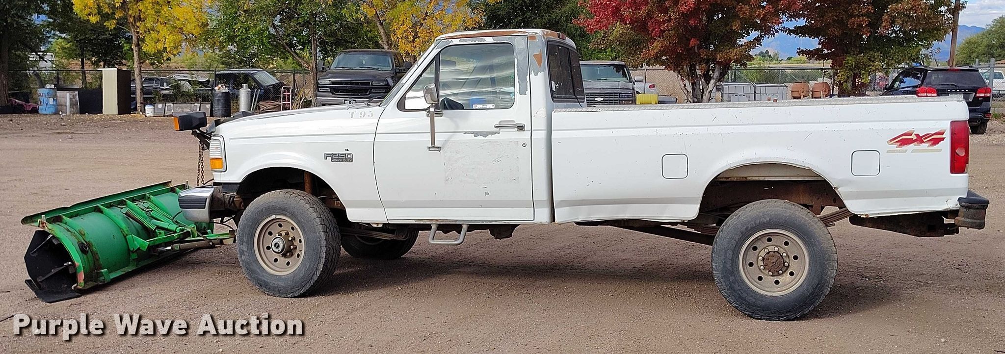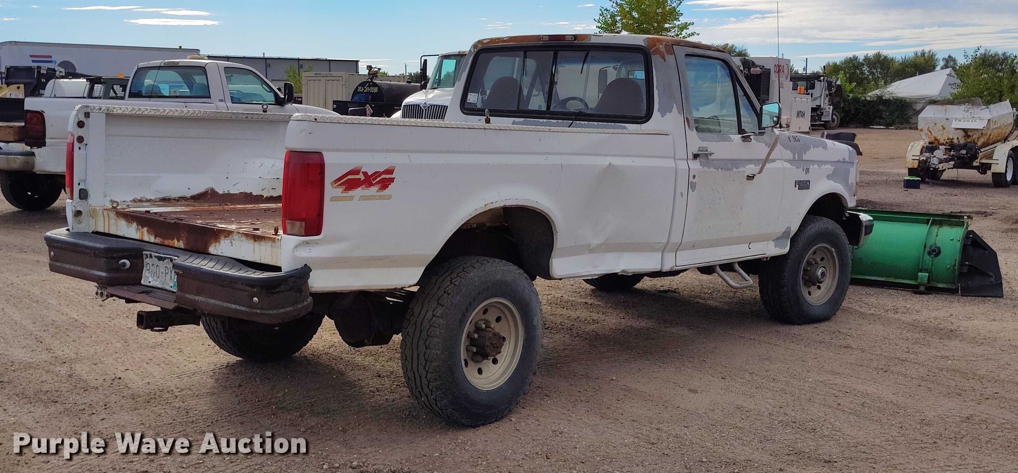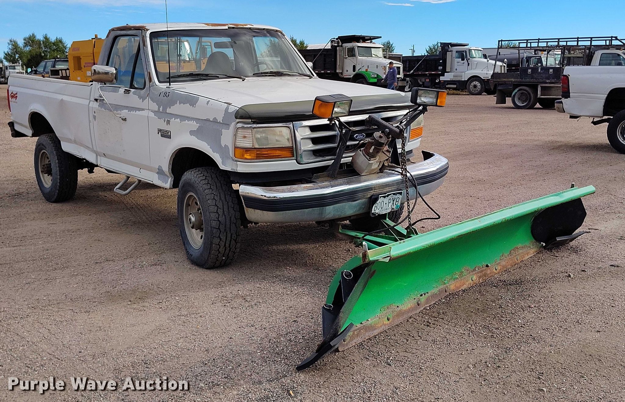 1997 Ford F250 XL pickup truck. Miles: 148,146 on odometer, VIN: 3FTHF26H6VMA54188, Unit #: T95. Engine Displacement: 5.8L V8 OHV, Cylinders: 8, Fuel type: Gas. Transmission Manual, Speed: 5, Four wheel drive. Interior AC, Heat. Features Snow plow Western, Width: 123". Tires Size: 265/75R16. Notes Jump start required during on-site data collection. Colorado title. Title distribution may be delayed up to 14 days from verification of funds. Trax Construction Inc. Colorado Springs, CO 80916