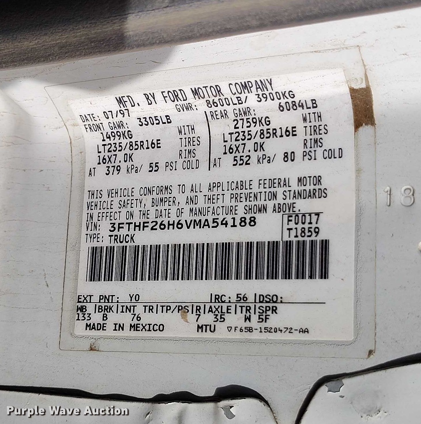 - VIN: 3FTHF26H6VMA54188