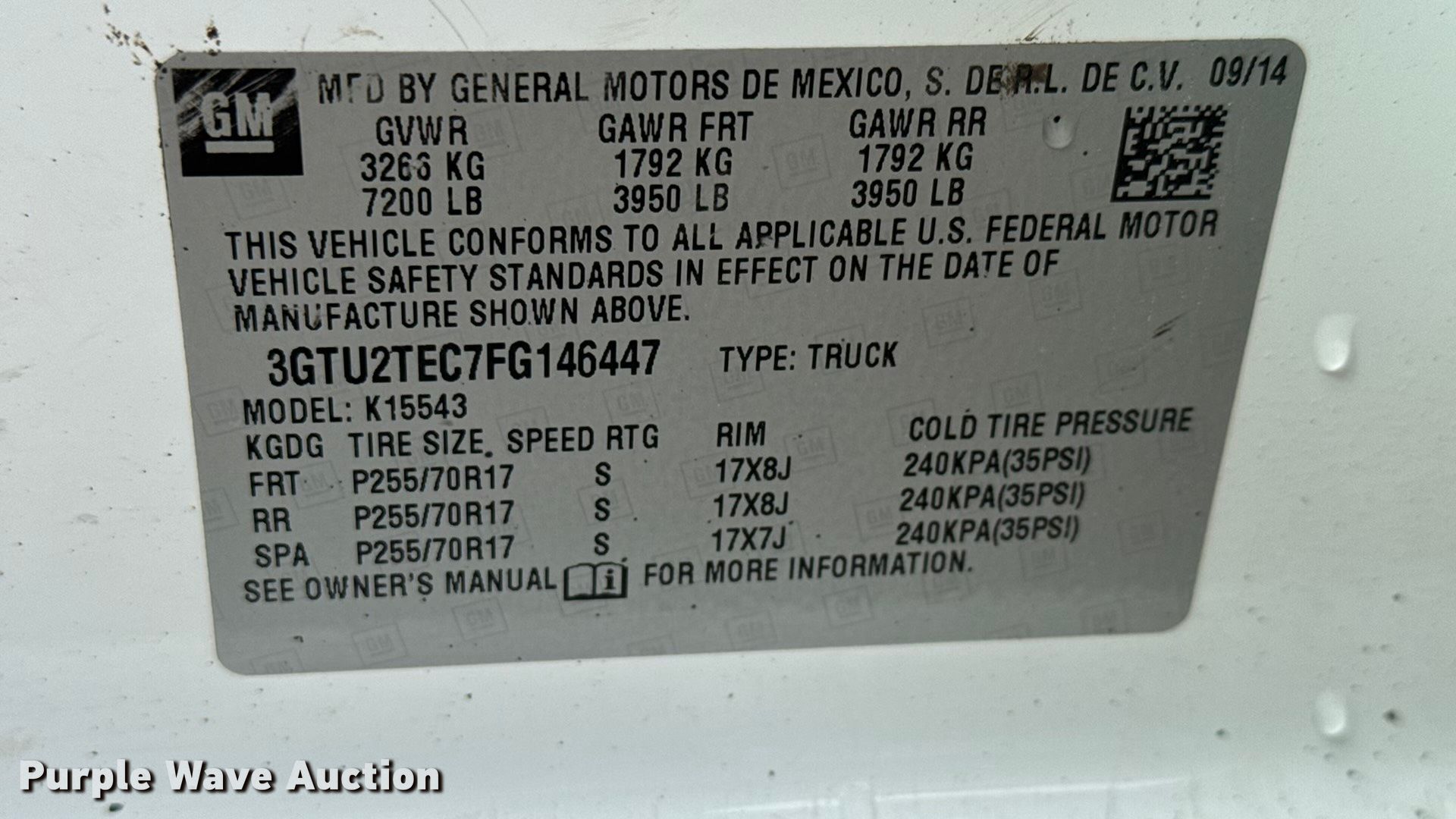 - VIN: 3GTU2TEC7FG146447