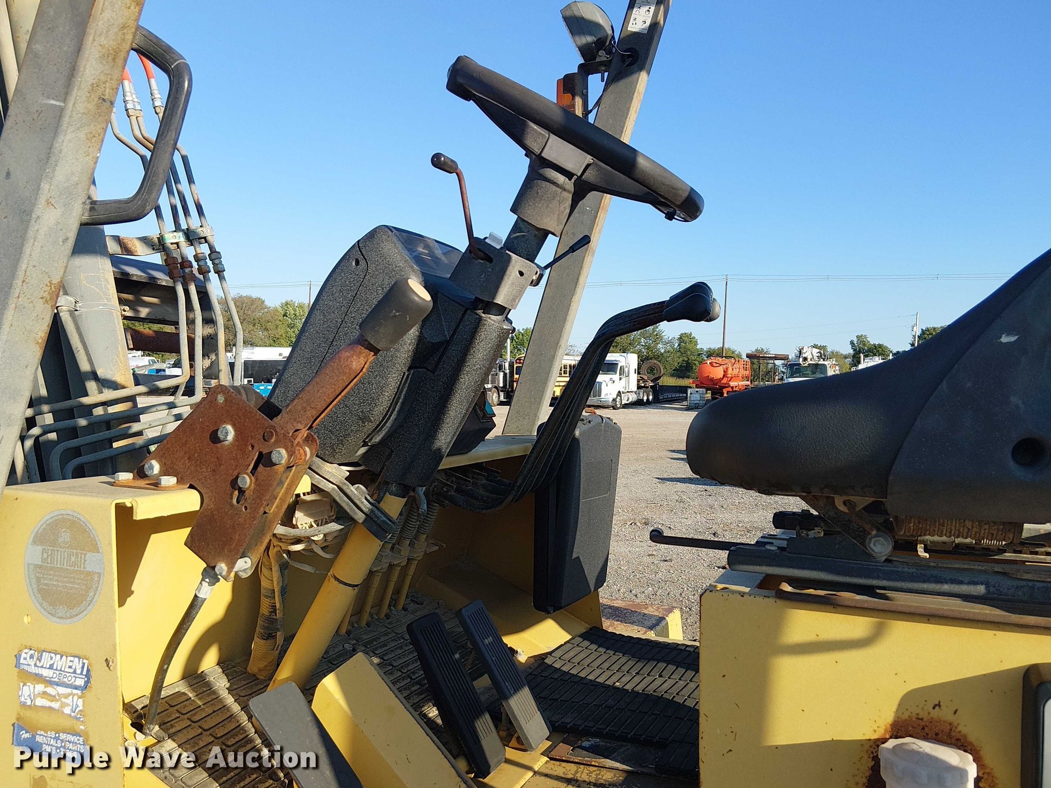 Purple Wave is selling a used Strt. Mast Rough Terr. Forklift in Oklahoma. This item is a Caterpillar DP100 forklift with the following: Hours: 5,674 on meter, Serial: 3DP00266