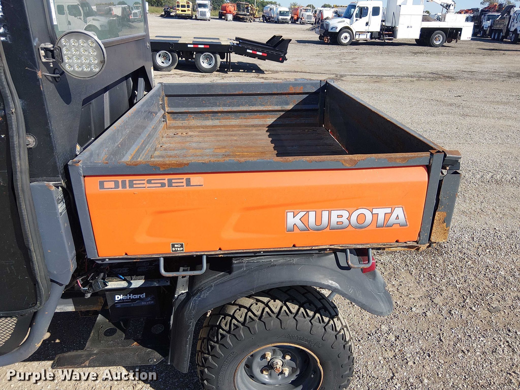 2014 Kubota RYV-X900 utility vehicle. Miles: 74,795 on odometer, VIN: A5KB2FDBCEG021034. Engine Kubota D902, Displacement:.898L, Cylinders: 3, Fuel type: Diesel, Electric start. Transmission Automatic. Chassis Four wheel drive/ All wheel drive. Operators station Enclosed cab. Features Grille guard, Dump bed 43" L x 60" W, Dump bed type: Manual. Tires Size: 25x10.00-12 NHS. Transfer of ownership documentation will be a bill of sale. Collinsville, OK 74021
