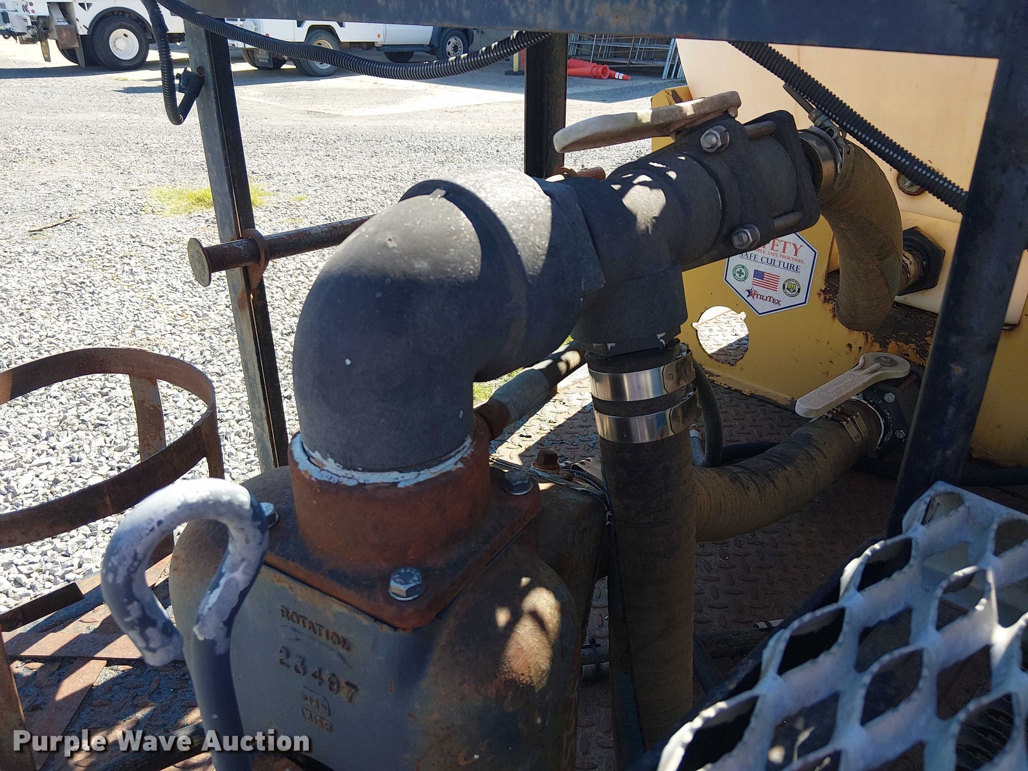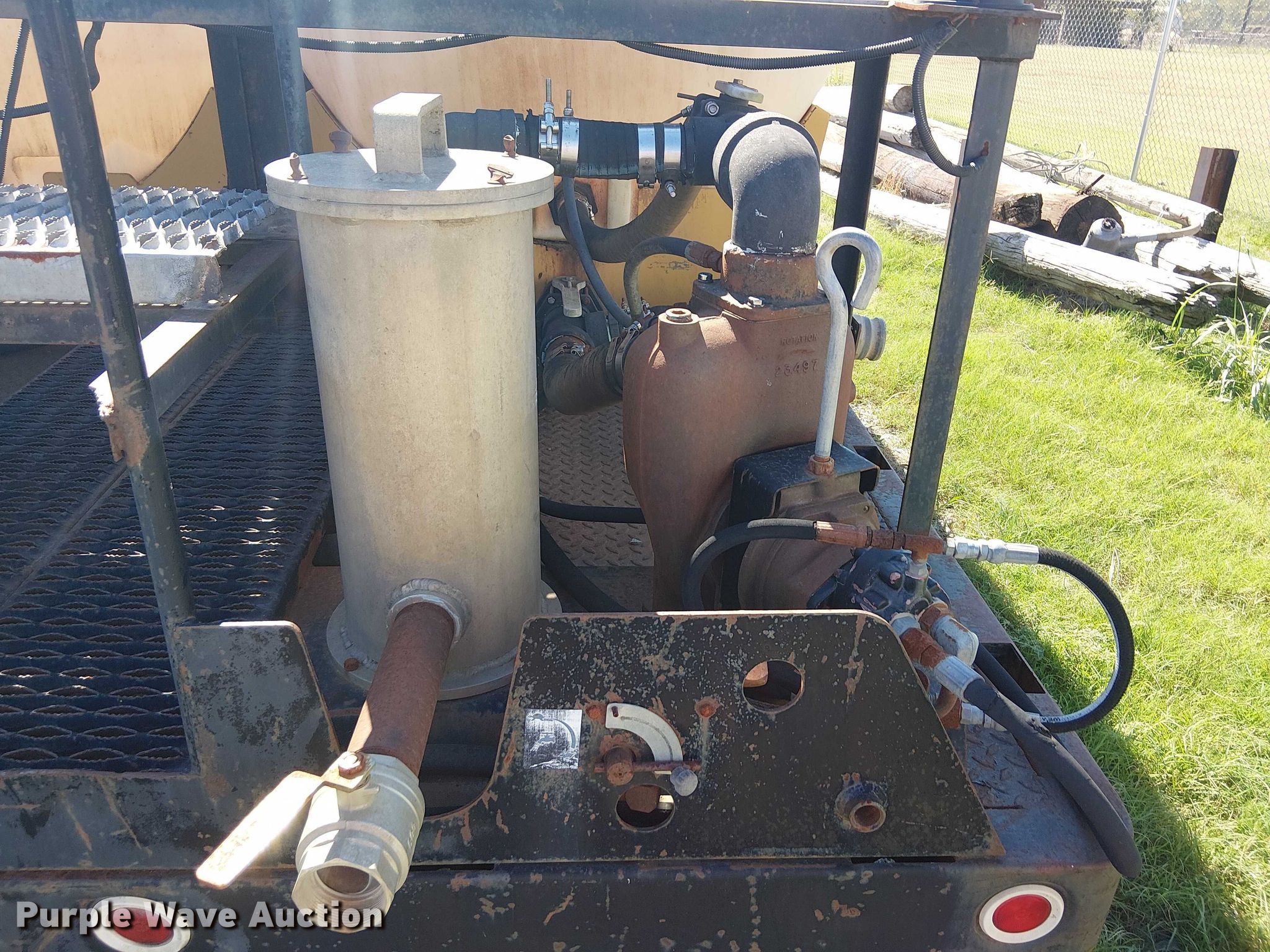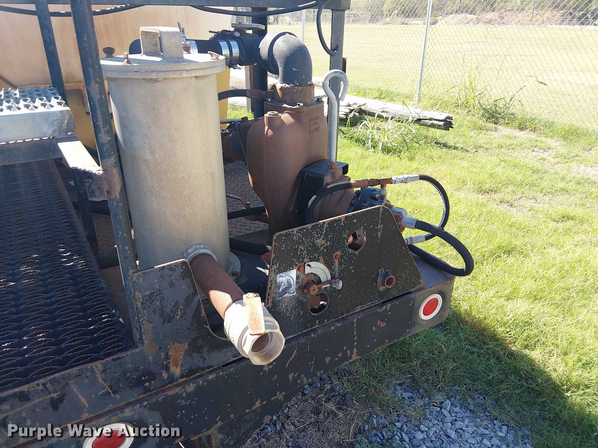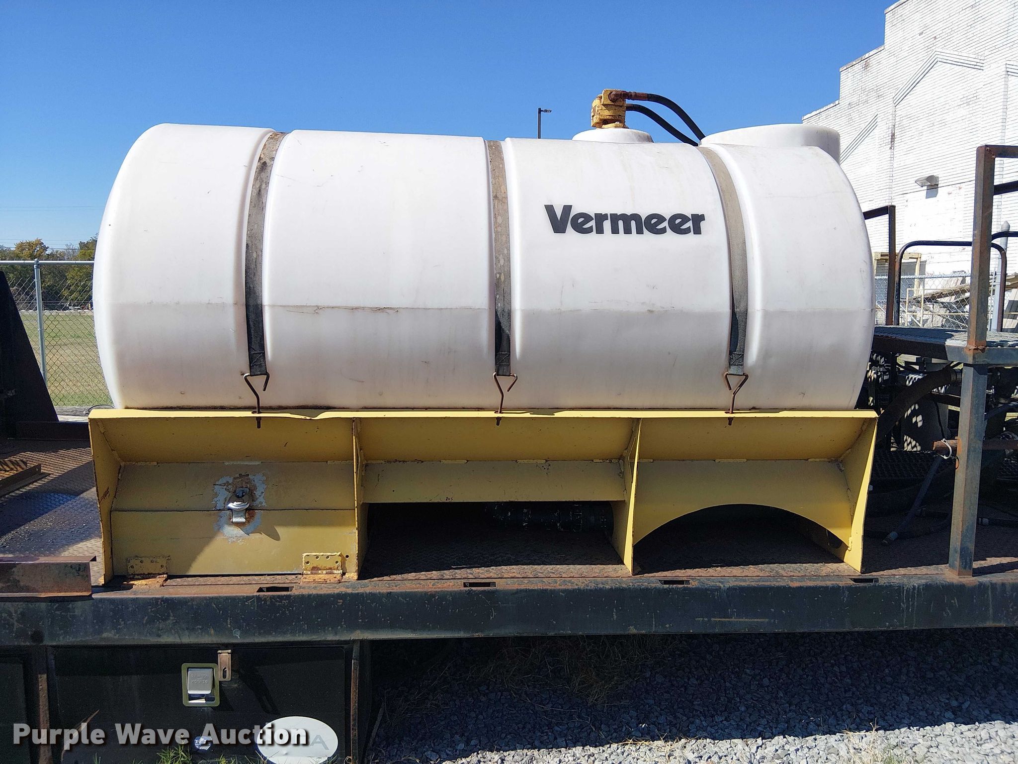 Omaha Standard flatbed. Length: 17' 10", Width: 96". Notes (2) Vermeer poly tanks, (2) pumps, Unknown operating condition of contents. REI Holdings LLC. Muskogee, OK 74403