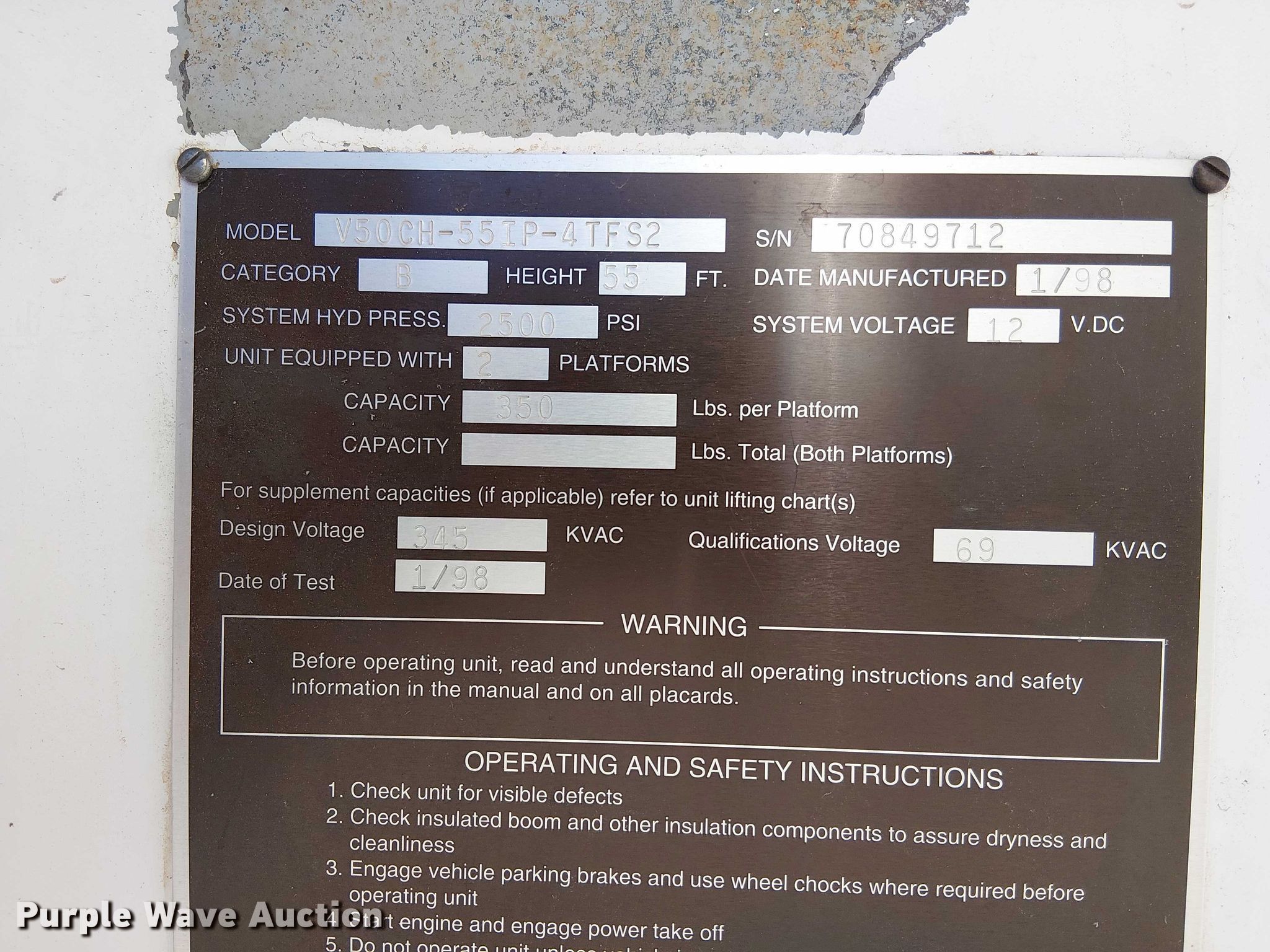 - Maximum lift height: 55'