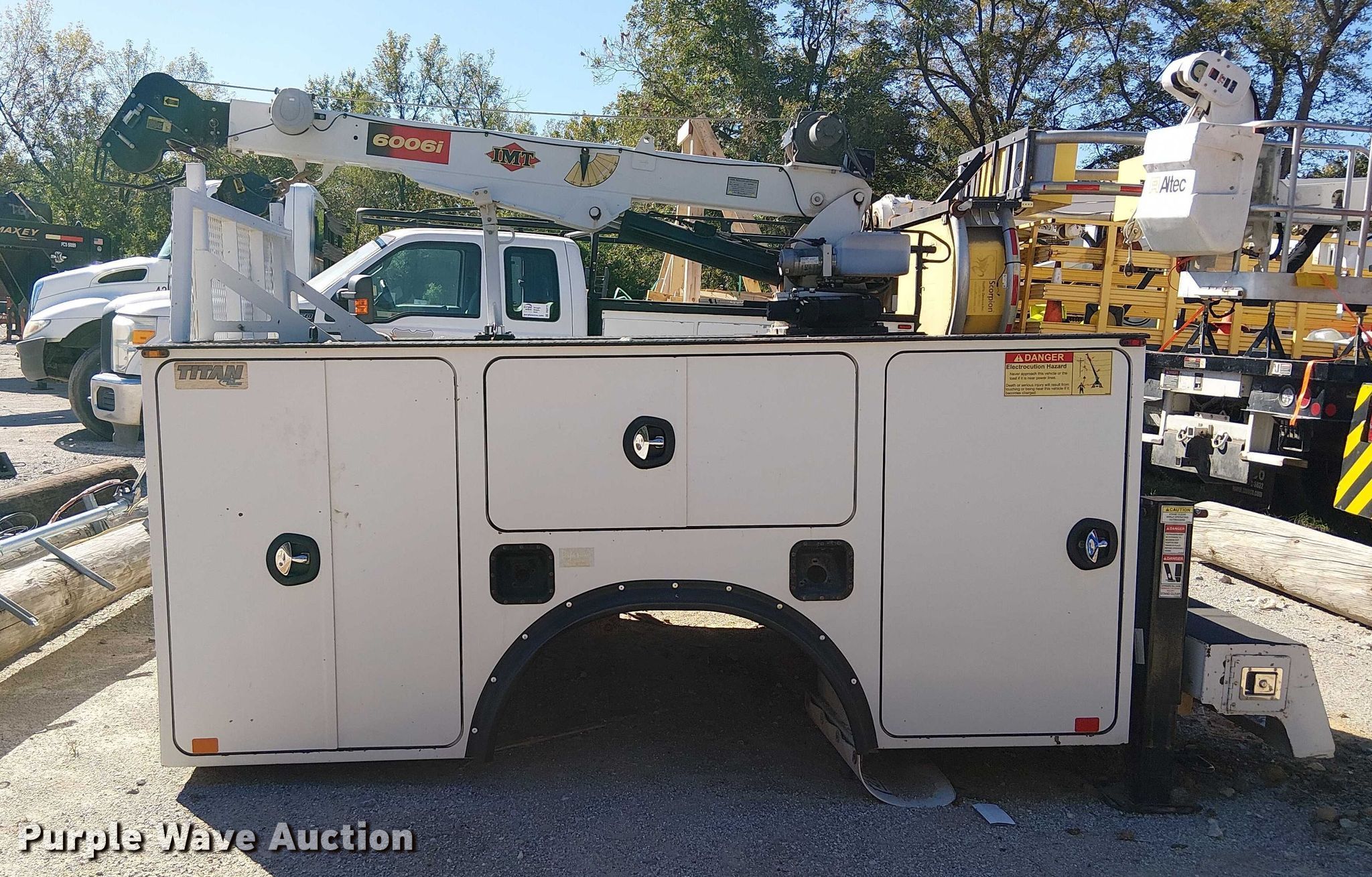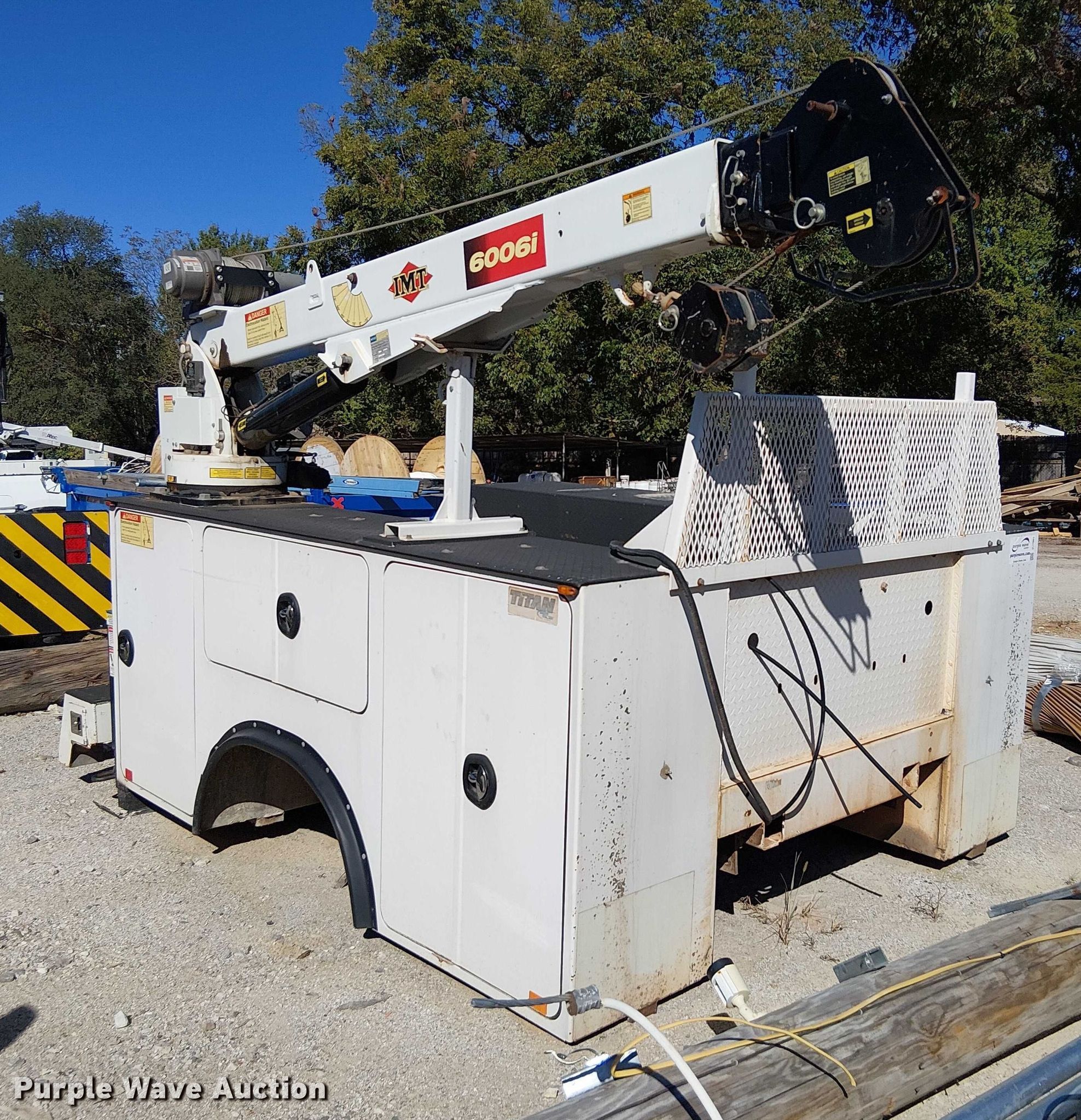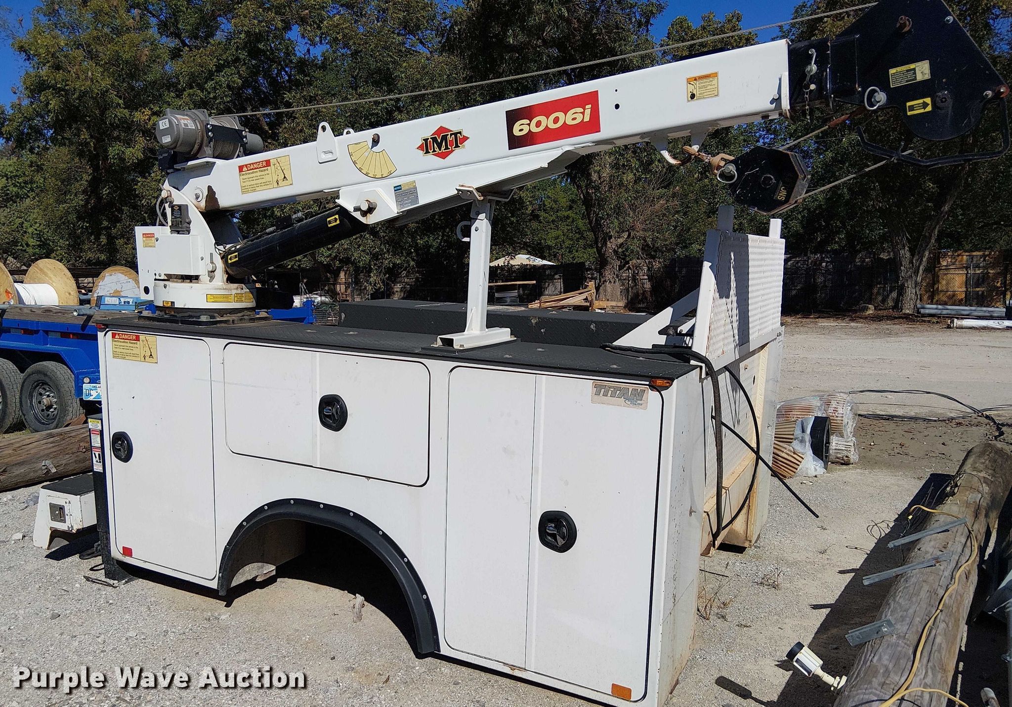 Purple Wave is selling a used Truck Part and Attach. in Oklahoma. This item is a Utility bed with the following: Bed, Utility bed, Length: 9' 1", Width: 94", Crane, IMT 6006i, Boom length: 21', Maximum lift capacity: 6,000 lbs