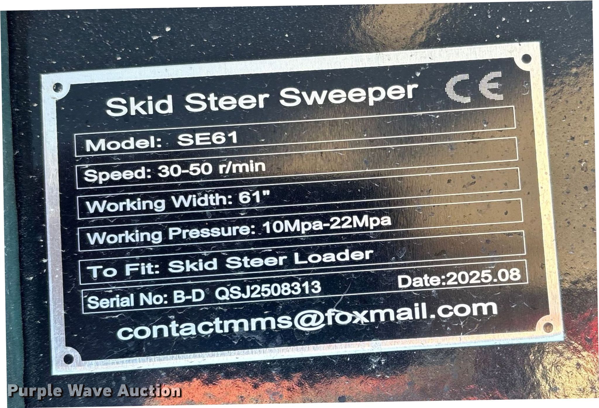 Purple Wave is selling a used Skid Steer Attach. in Nebraska. This item is a SE61 skid steer sweeper with the following: Serial: QSJ2508313, Width: 61"