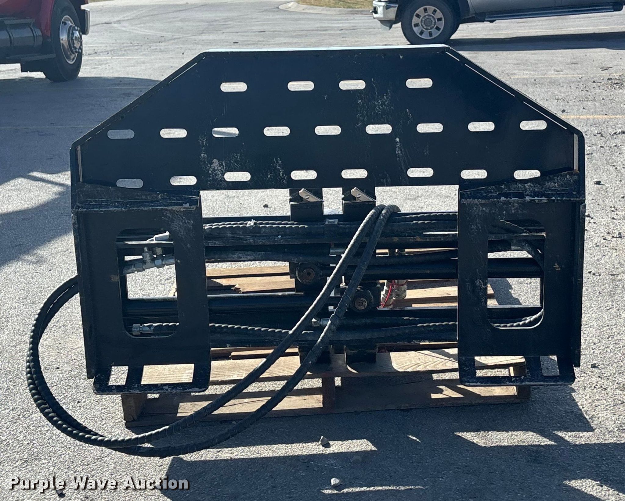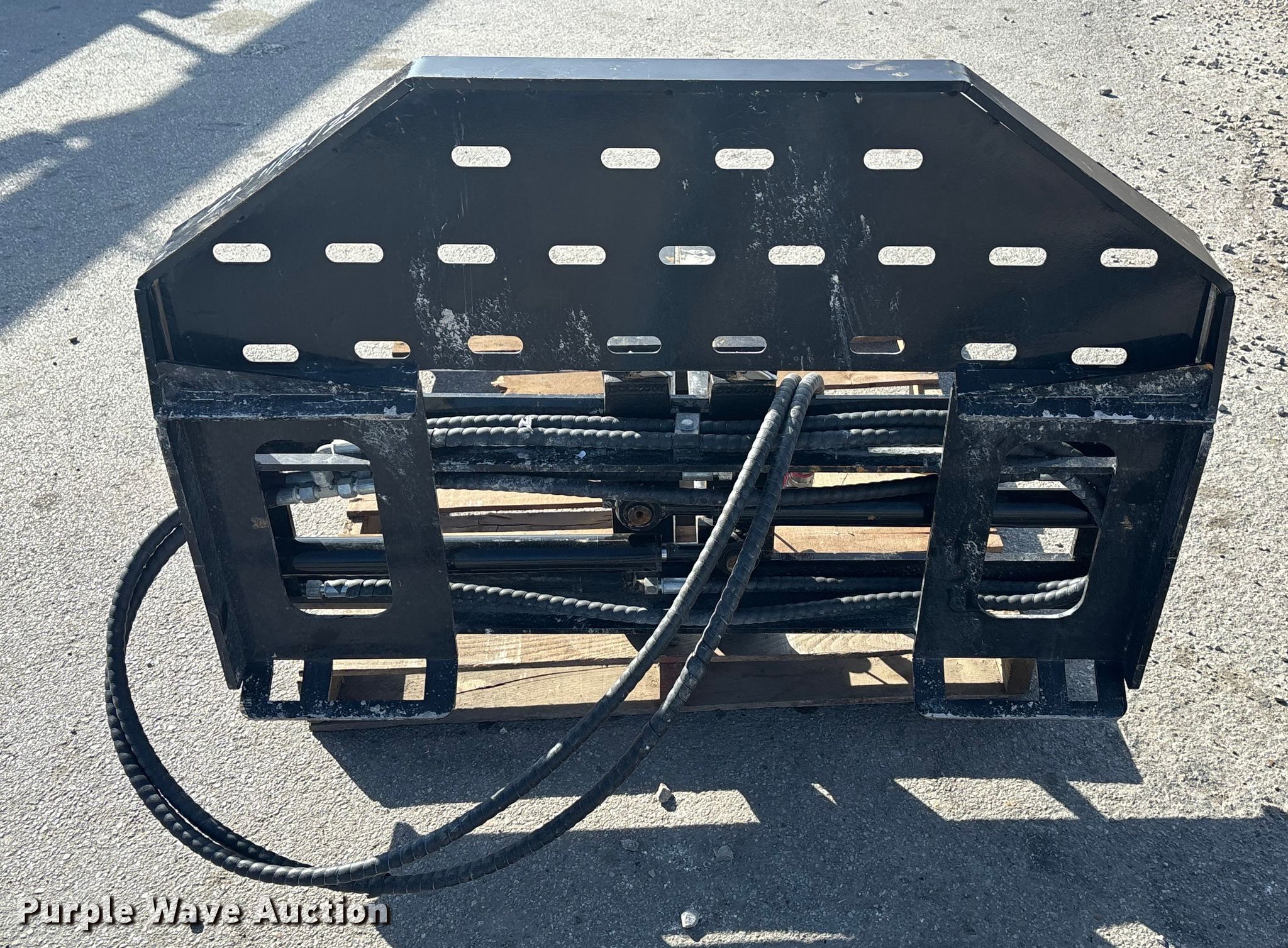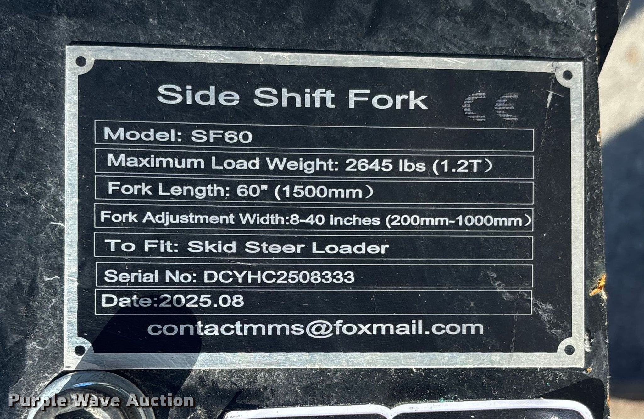 Purple Wave is selling a used Skid Steer Attach. in Nebraska. This item is a GIYI SF60 skid steer forks with the following: Serial: DCYHC2508333, Length: 5', Max spread: 45", Hydraulic fork positioner