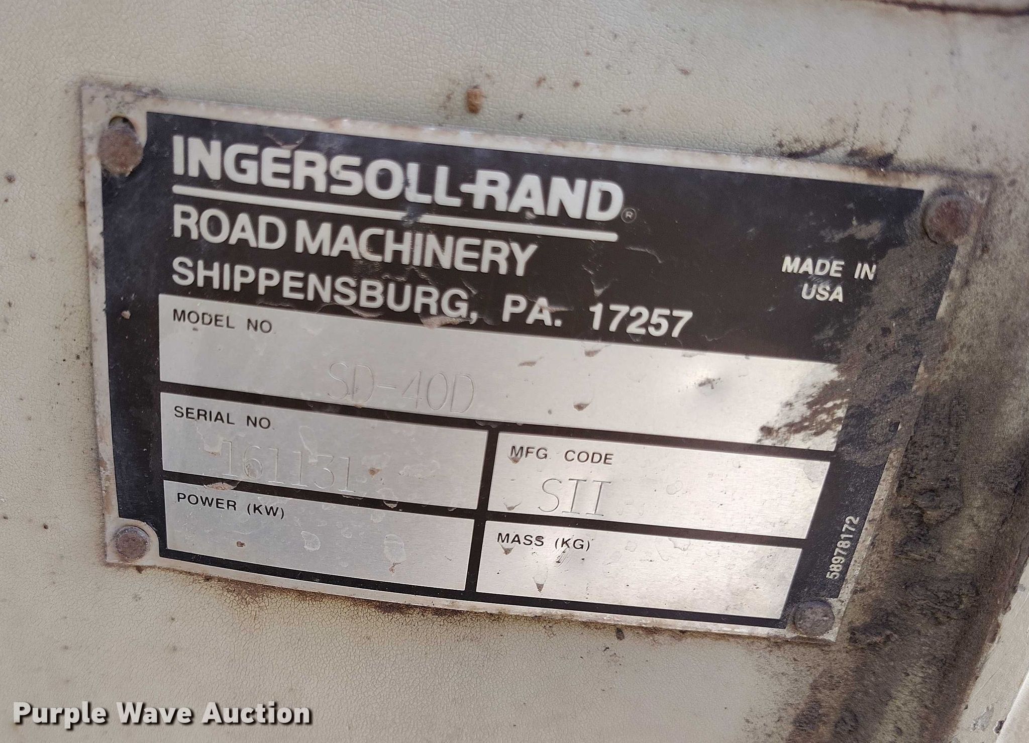Purple Wave is selling a used Single Drum Roller Compactor in Utah. This item is a 1999 Ingersoll Rand SD-40D single drum vibratory roller with the following: Hours: 711 on meter, Serial: 161131