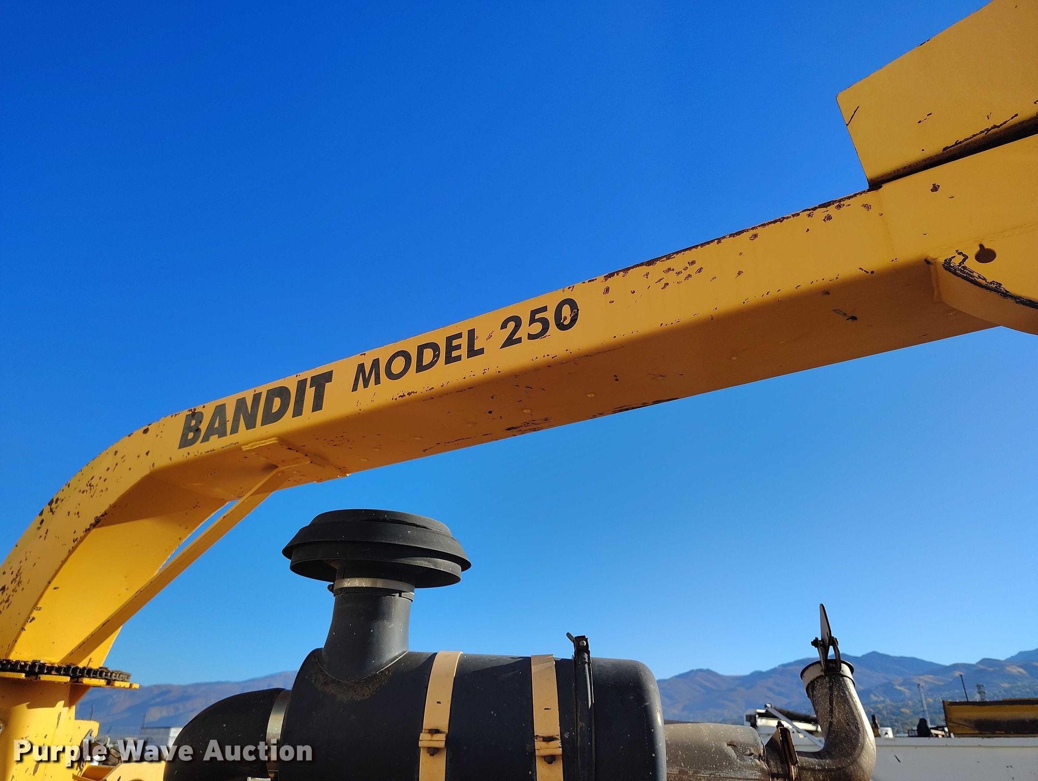 2002 Bandit 250 wood chipper. Hours: 1,035 on meter, Serial: 017645. Engine John Deere, Displacement: 4.5L, Cylinders: 4, Fuel type: Diesel. Features Throat opening: 19" x 15", Auto feed. Tires Size: 245/75R16. Trailer Ball hitch size: 2 5/16", Brakes: Electric, Axles: Single. Notes Jump start required during on-site data collection. This is worksite support equipment and will not come with a title. Transfer of ownership documentation will be a bill of sale. MC Green & Sons Inc. North Salt Lake, UT 84054