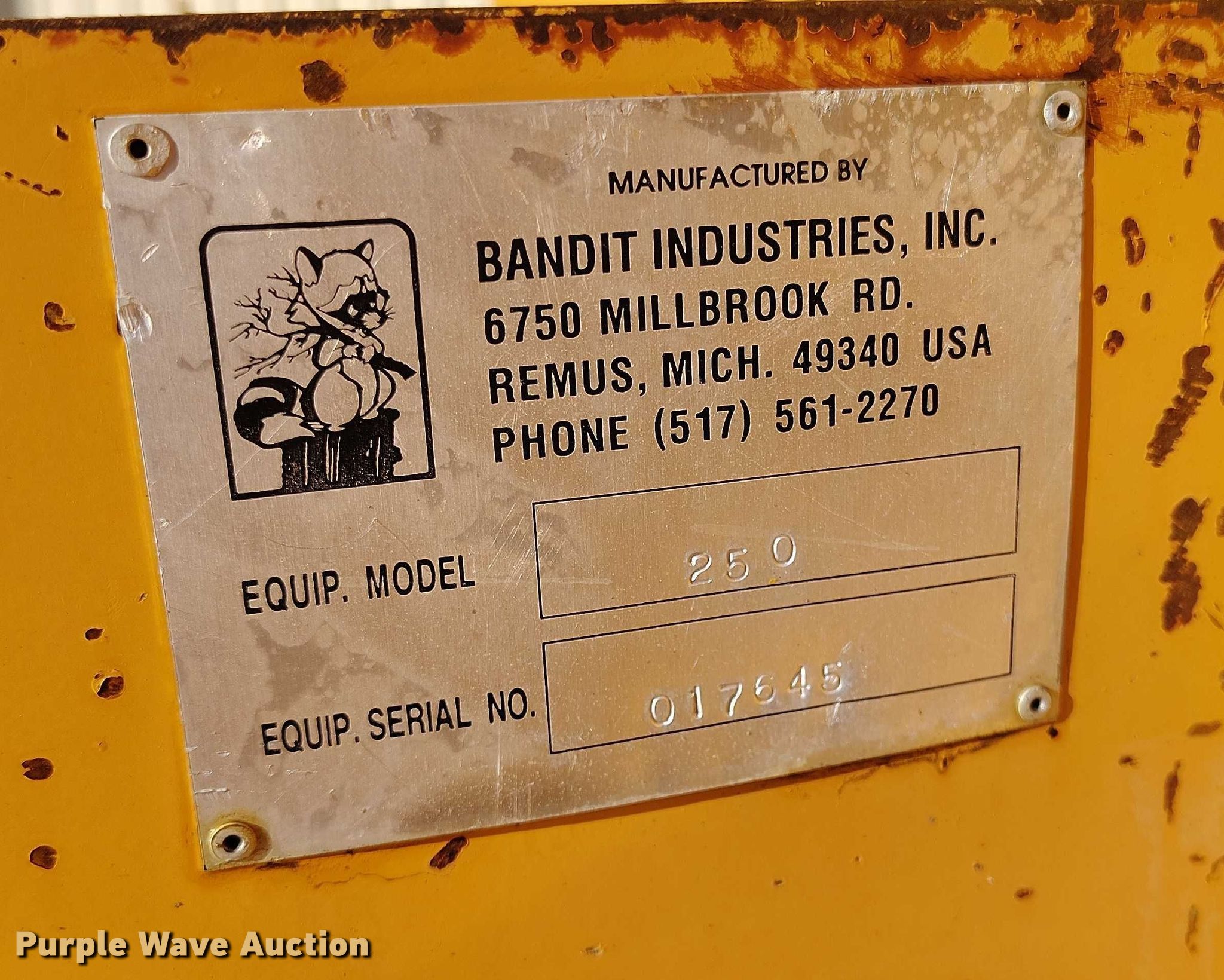 Purple Wave is selling a used Wood Chipper or Stump Grinder in Utah. This item is a 2002 Bandit 250 wood chipper with the following: Hours: 1,035 on meter, Serial: 017645