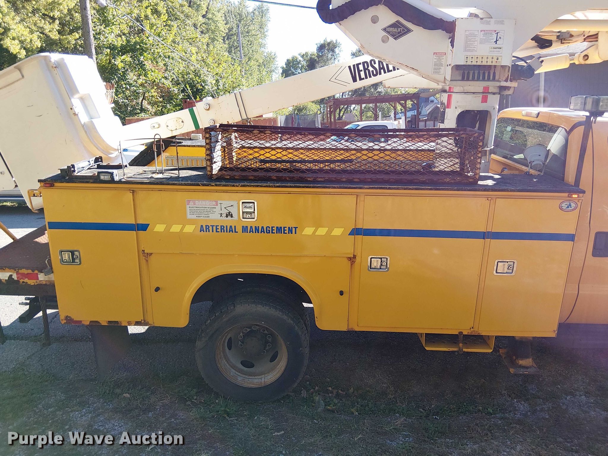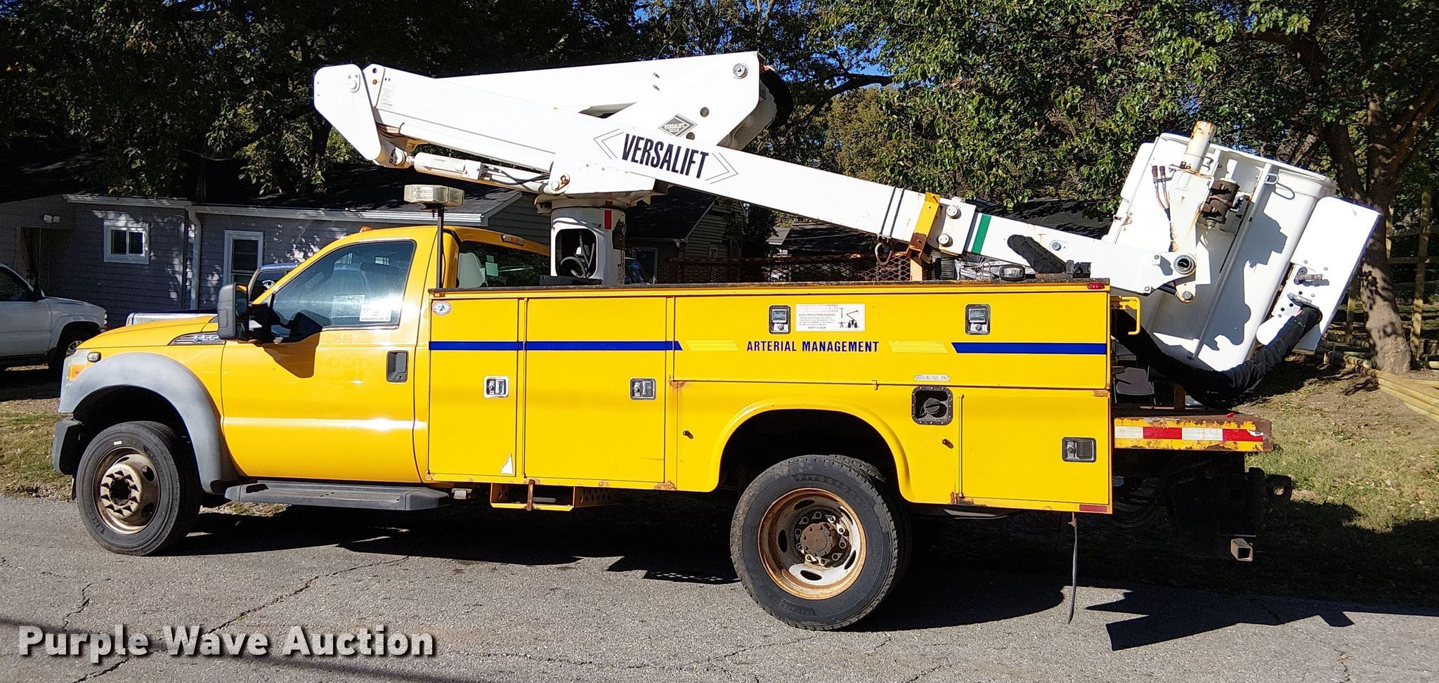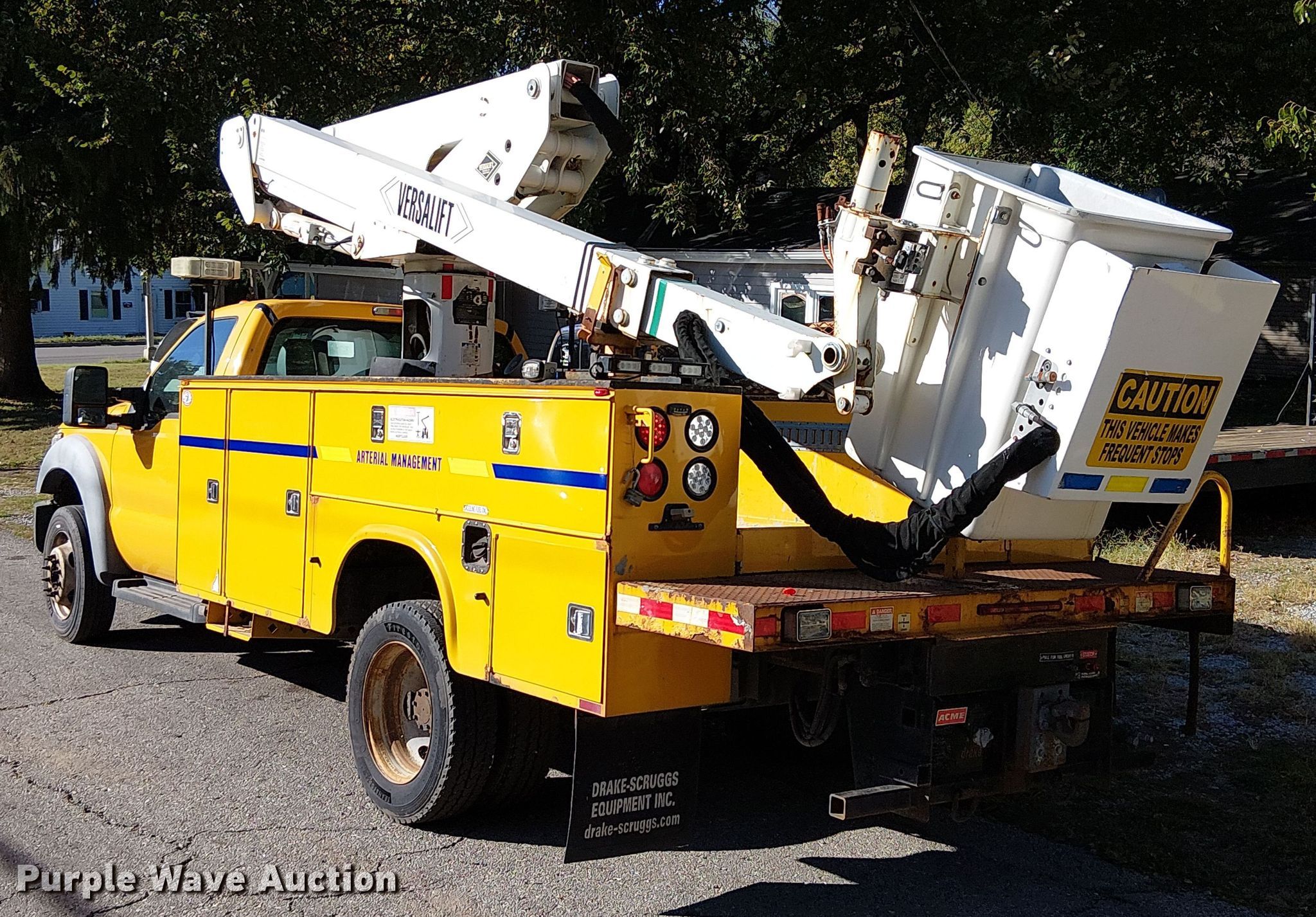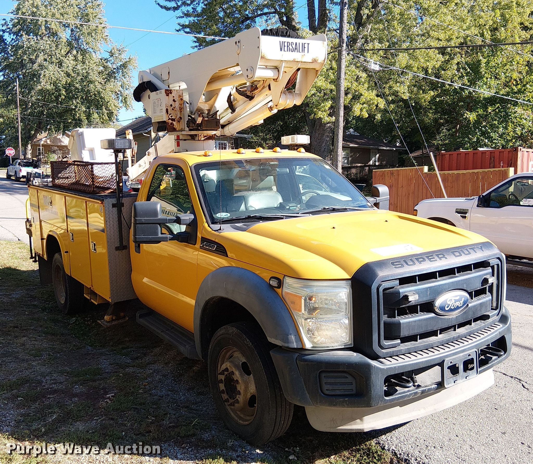 2011 Ford F550 bucket truck. Miles: 209,862 on odometer, VIN: 1FDUF5GY0BEA74769. Engine Displacement: 6.8L, Cylinders: 10, Fuel type: Gas. Transmission Automatic. Chassis Axles: Single, Suspension: Spring, Brakes: Hydraulic, PTO, GVWR: 19,500 lbs. Interior AC, Heat, Auxiliary controls, Brake controller. Features Bed Utility bed, Knapheide 7132D54RJ, Serial: 20100909-0181484, Length: 11' 1", Width: 95", Boom Versalift, Boom type: Articulating, Telescopic, Man basket, Boom controls Ground, Platform/ basket.. Tires Size: 225/70R19.5. Notes Jump start required during on-site data collection, Unknown operating condition of boom, outriggers. Missouri title. Title distribution may be delayed up to 14 days from verification of funds. Independence, MO 64055