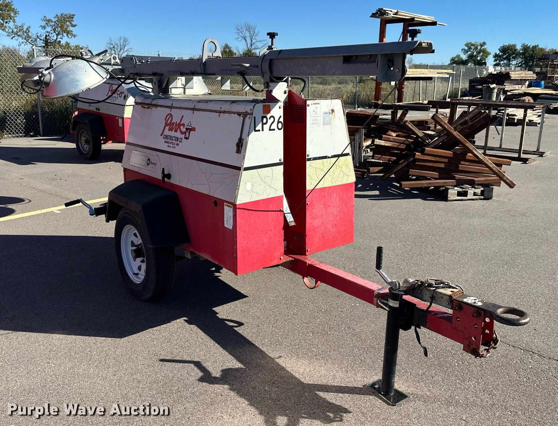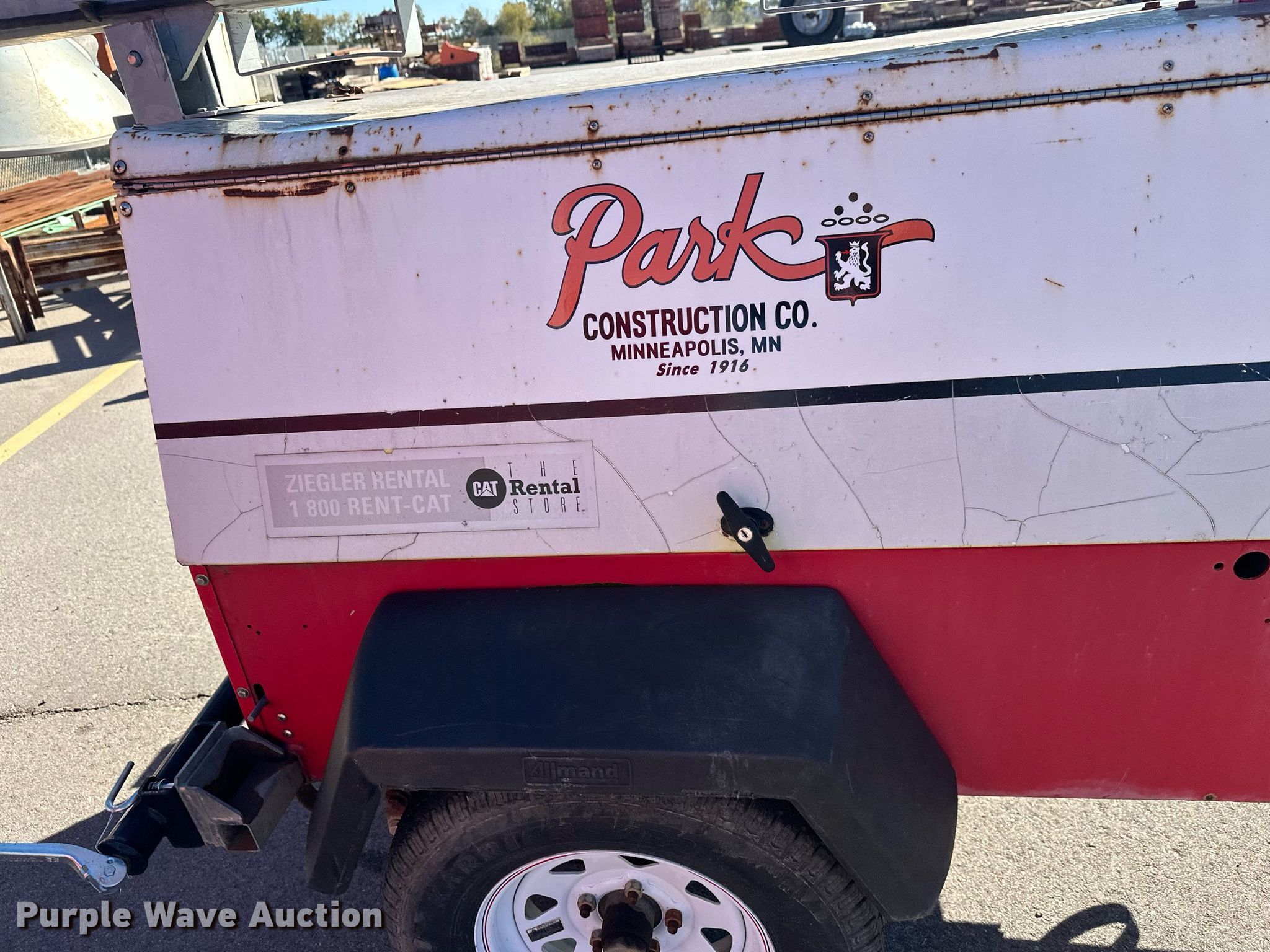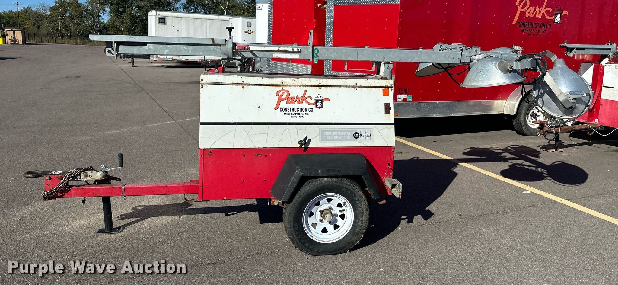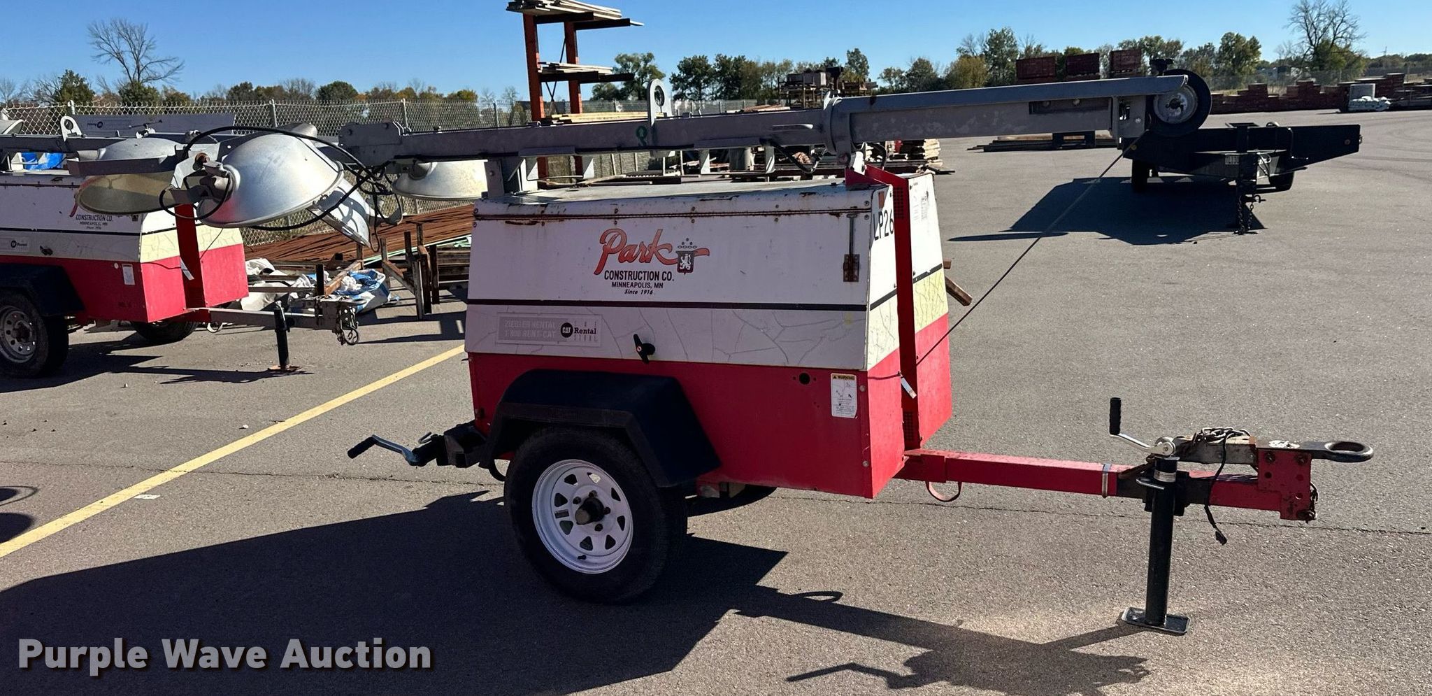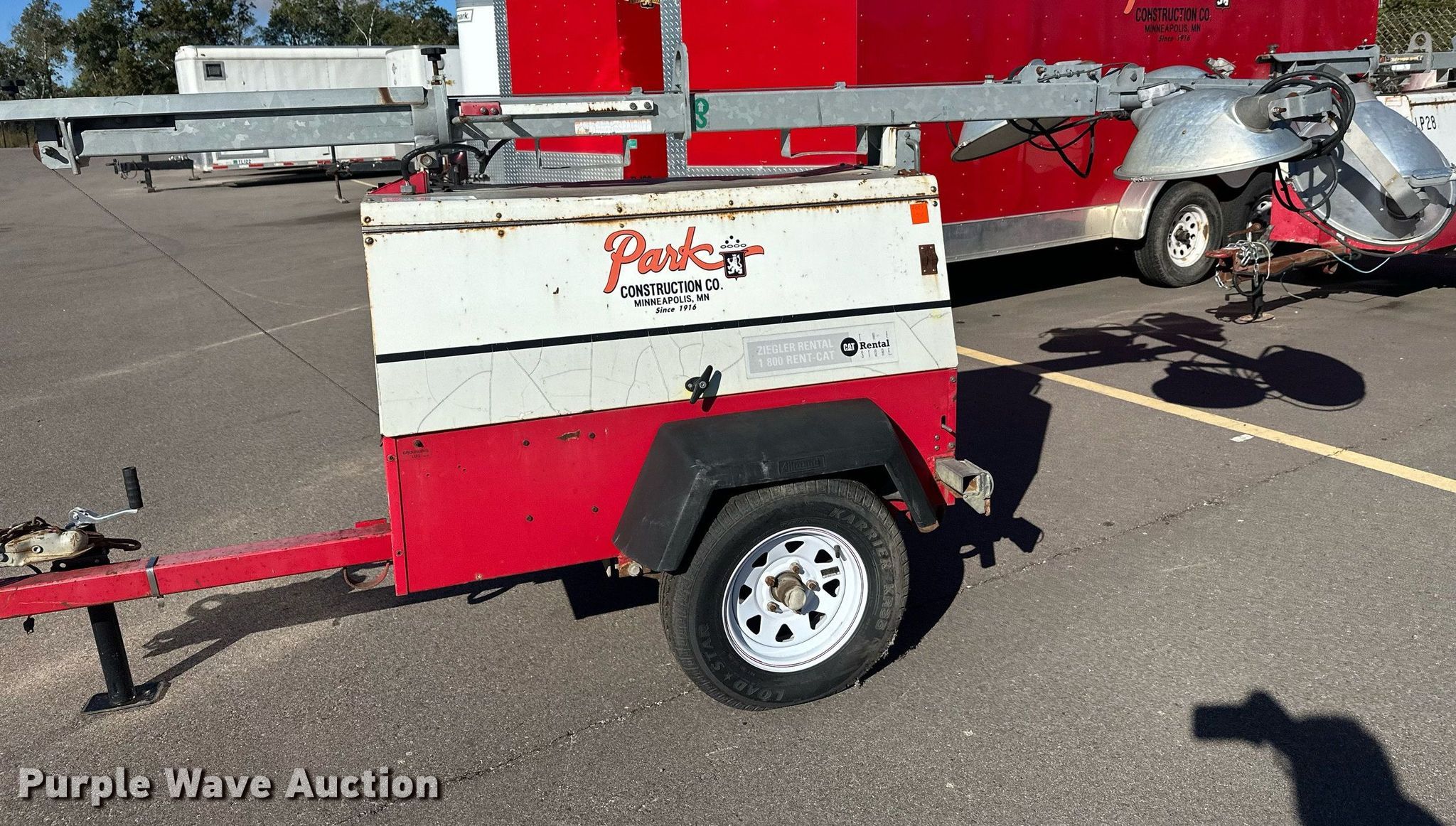 2010 Allmand Night Pro light plant. Hours: 10,873 on meter, Serial: 1384. Engine Caterpillar, Cylinders: 3, Fuel type: Diesel. Trailer 8' L x 53" W, Hitch: Pintle, Suspension: Spring, Axles: Single, Tire size: 175/80R13. This is worksite support equipment and will not come with a title. Transfer of ownership documentation will be a bill of sale. Park Construction Co. Blaine, MN 55449