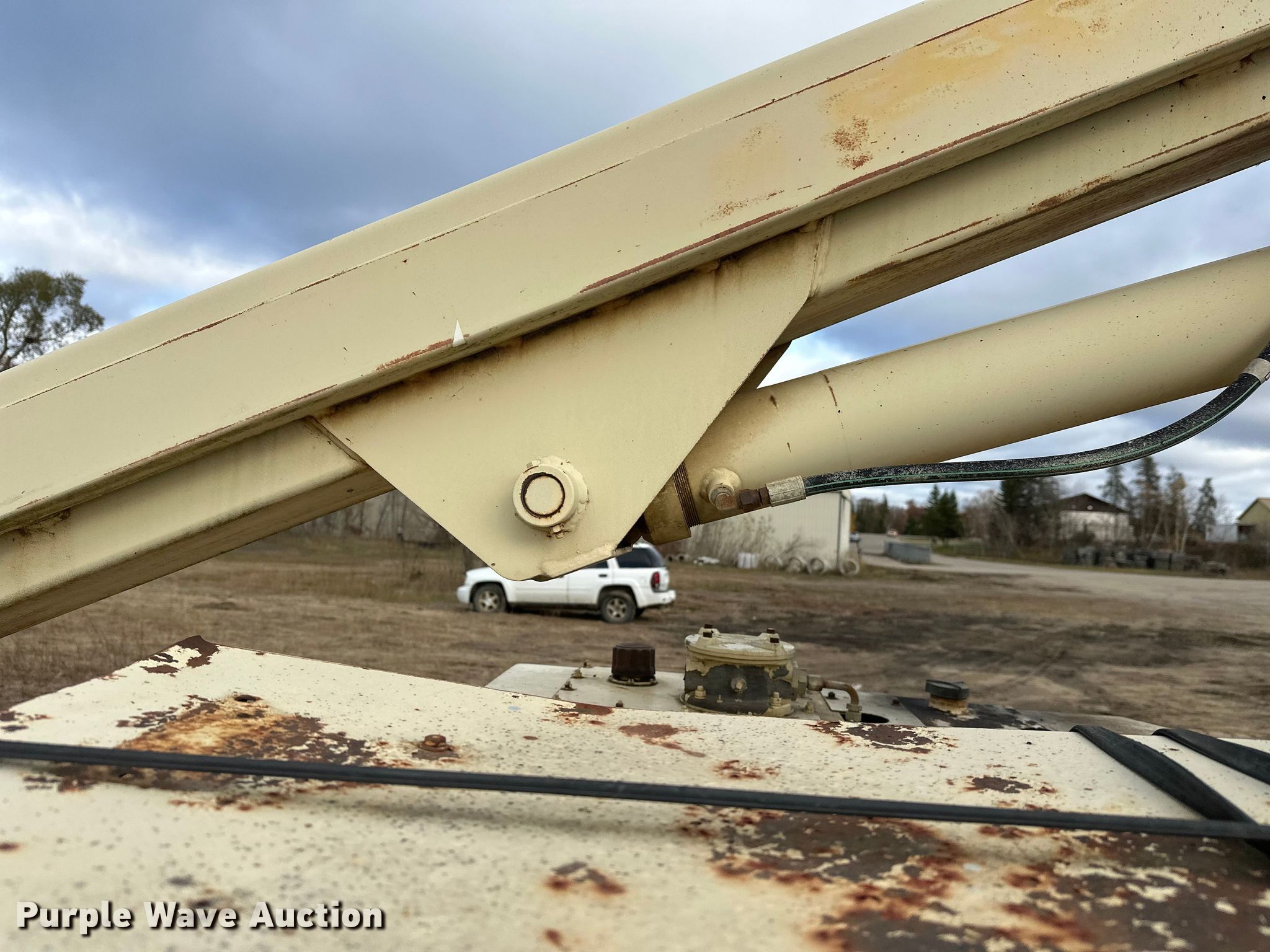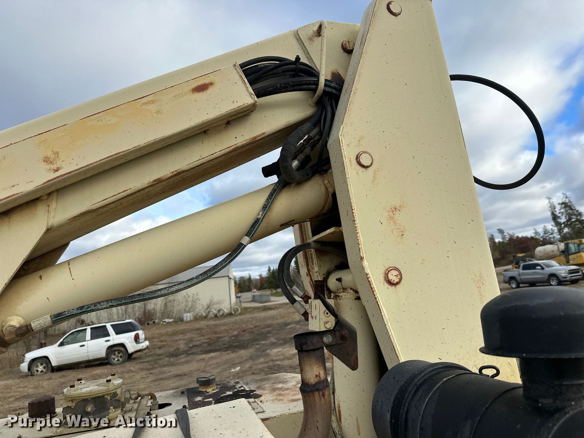 1997 JLG 40HA boom lift. Serial: 0300028581, Unit #: 82227. Engine Ford, Cylinders: 4, Fuel type: LPG LP bottle: Included. Chassis Four wheel drive. Features Rough terrain, Boom type: Articulating, Maximum lift capacity: 500 lbs, Maximum reach length: 45', Maximum lift height: 40', Platform: 30" L x 60" W, AC power outlet, Controls: Platform, Ground, Platform rotation: Hydraulic. Tires Tire size: 14-17.5. Notes Hydraulic leak. Knife River Materials. Bemidji, MN 56601